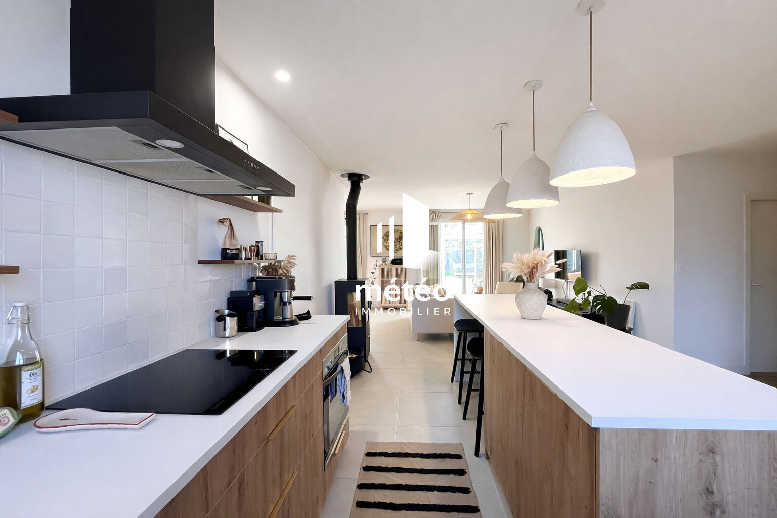 Idéalement située à la frontière de Tasdon et de Villeneuve-les-Salines, cette maison rénovée avec soin bénéficie d'un emplacement privilégié permettant de rejoindre très facilement le centre-ville de La Rochelle. Un accès piéton mène en 4 minutes à l'arrêt de bus Jean Moulin (lignes principales de bus illico et de nuit + bus direct vers l'aéroport), 8 minutes à la passerelle de la Gare et 15 minutes au vieux port de La Rochelle, ses terrasses et son animation. La maison a été entièrement rénovée avec goût et méticuleusement entretenue, tant dans sa décoration que dans son parfait état général. Elle dispose d'environ 75 m² habitables, complétés par une véranda lumineuse, véritable pièce supplémentaire portant la surface totale à près de 100 m². La pièce de vie s'organise harmonieusement autour d'une cuisine ouverte moderne avec îlot central, d'un salon, et d'un espace salle à manger. Les matériaux bruts (grege, zellige, finitions contemporaines?) et les touches « art-déco » apportent beaucoup de caractère et un esprit contemporain très agréable à vivre. La maison bénéficie également d'un excellent DPE : C. Le superbe poêle à bois, pièce maitresse du séjour, diffuse une chaleur douce et enveloppante dans toutes les pièces, créant une ambiance très cocooning et conviviale en hiver. A l'arrivée des beaux jours, et grâce à sa double exposition est-ouest, la maison se prête naturellement à une agréable vie dedans-dehors. Les nombreuses ouvertures et la véranda permettent de laisser circuler l'air du jardin et de profiter pleinement des journées printanières et estivales. L'espace extérieur, calme, ensoleillé et arboré, offre une surface parfaite pour aménager différents espaces de détente. Le bien dispose également de 2 chambres, d'une grande salle d'eau et d'un garage pratique avec arrière cuisine et buanderie. La configuration de la maison permet d'imaginer un potentiel d'évolution pour créer une ou deux chambres supplémentaires. Nous vous proposons un accompagnement sur-mesure et sur toute la ligne pour pouvoir vous projeter au mieux, notamment avec des chiffrages détaillés déjà établis et adaptables selon les projets. Une maison idéale pour celles et ceux qui recherchent un lieu de vie agréable, rénové avec goût, à proximité immédiate du centre de La Rochelle tout en bénéficiant d'un environnement calme et pratique au quotidien. Plus de renseignements et visite sur demande 7/7j Vidéo disponible : @mlle.meteo (instagram, facebook) Ce bien est proposé par votre agence Météo Immobilier de La Rochelle, contactez votre conseiller sans plus attendre à votre écoute pour votre projet d'achat d'une maison en bord de mer en Charente Maritime et en Vendée. Anouk GIBELIN (EI) Agent Commercial - Numéro RSAC : - .