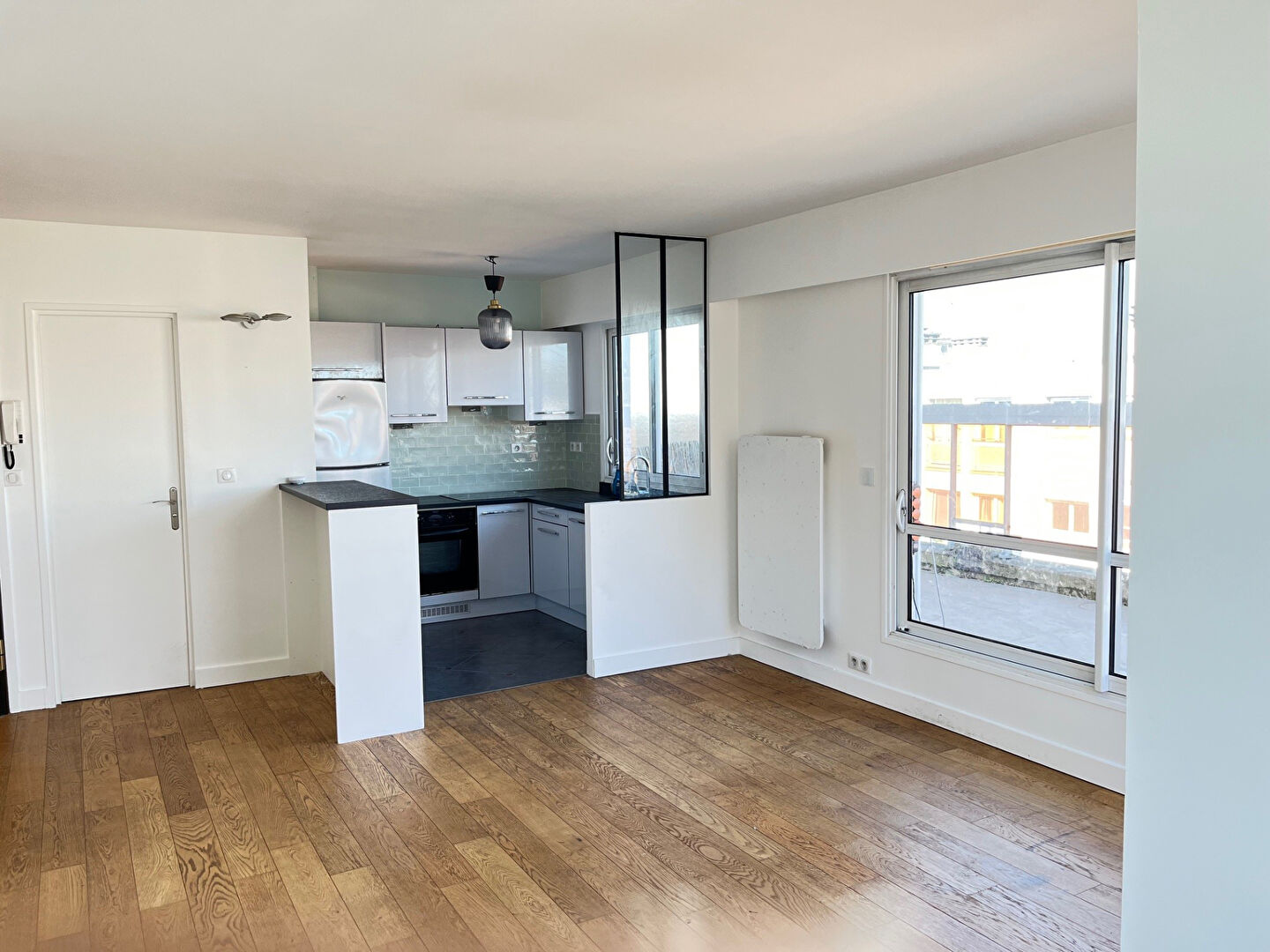 Au 4ème étage un appartement comprenant : un sejour donnant sur terrasse et cuisine ouverte, un wc, deux chambres, une salle d'eau, nombreux rangements Un box au sous-sol.
