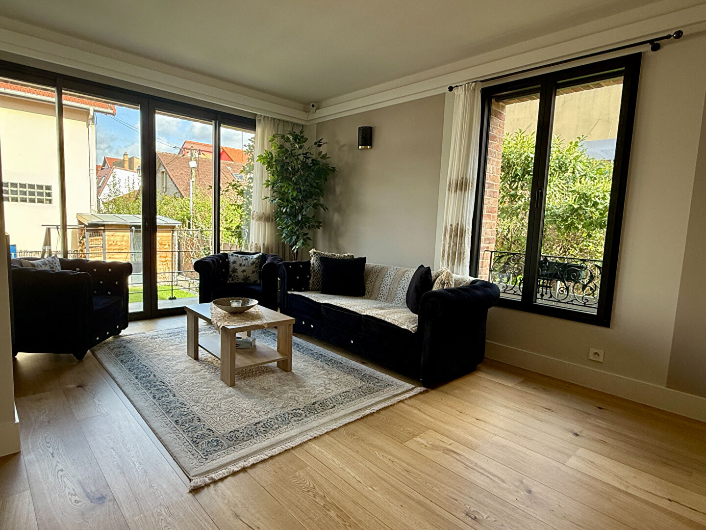Exclusivité Intérieur et Jardin Au coeur du quartier de la Petite Garenne, à 8 minutes à pieds de la gare. Cette jolie maison ancienne aux beaux volumes, profite d'une jolie rénovation de qualité. Elle proposé au rez de chaussée : une belle pièce de vie lumineuse avec cheminée, une cuisine équipée, à l'étage : 2 belles chambres dont une avec salle d'eau et une salle de bains séparée, et en entresol : une salle tv, une chambre sur cour anglaise, salle de bains, wc et dressing+ une buanderie/ chaufferie . 1 stationnement dans la cour devant et un jardin derrière accessible du séjour. Calme, lumineuse, parfait état, beaux matériaux. Sectorisation scolaire : maternelle Jules Verne, primaire Léon Bourgeois et collège Paparemborde