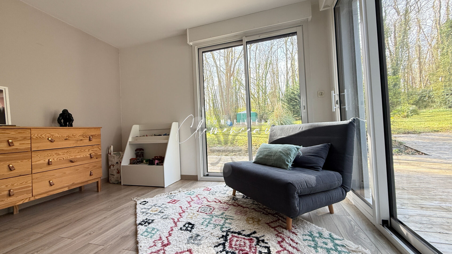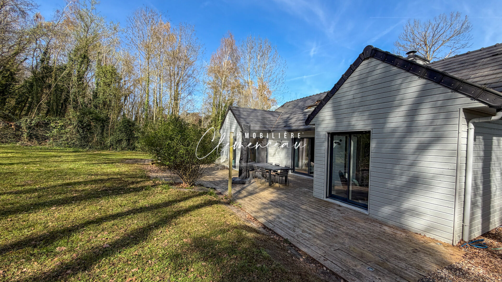 Située dans un environnement calme et verdoyant, cette maison récente de 2015, en ossature bois, vous séduira par son confort moderne, sa luminosité et son cadre naturel. D'une surface habitable d'environ 150 m² , elle se compose d'un bel espace de vie, grand séjour traversant de 53 m² avec cuisine ouverte aménagée et équipée, baies vitrées accès à la terrasse et au terrain de 1360 m². trois chambres de plain-pied, une grande buanderie, deux toilettes, une salle de bain moderne et une salle d'eau. A l'étage, les combles ont été entièrement aménagés pour accueillir une spacieuse suite parentale, comprenant : la chambre, une salle de bain avec toilette et un dressing sur mesure. Le tout sur un terrain arboré, sans vis-à-vis, au coeur de la nature, en bordure de forêt. Prestations de qualité : Isolation performante, chauffage économique, matériaux durables et récents, poêle à bois. Environnement paisible dans une commune recherchée ! Chauffage électrique -DPE: B indice 101 / GES : A indice 3 - Estimation du cout annuel en énergie pour usage standard entre 1 290 euros et 1 810 euros sur les années 2021,2022, 2023 . Les informations sur les risques auxquels ce bien est exposé sont disponibles sur le site Géorisques https://www.georisques.gouv.fr. Honoraire charge vendeur.