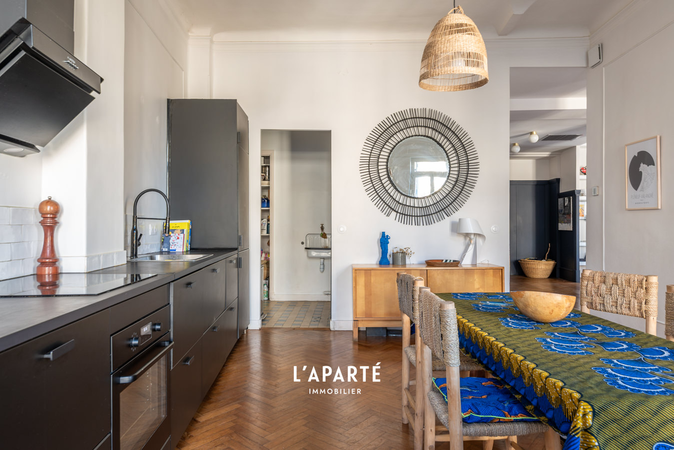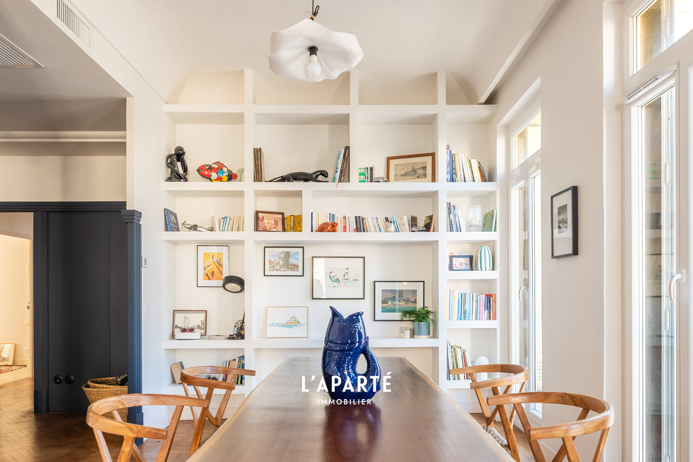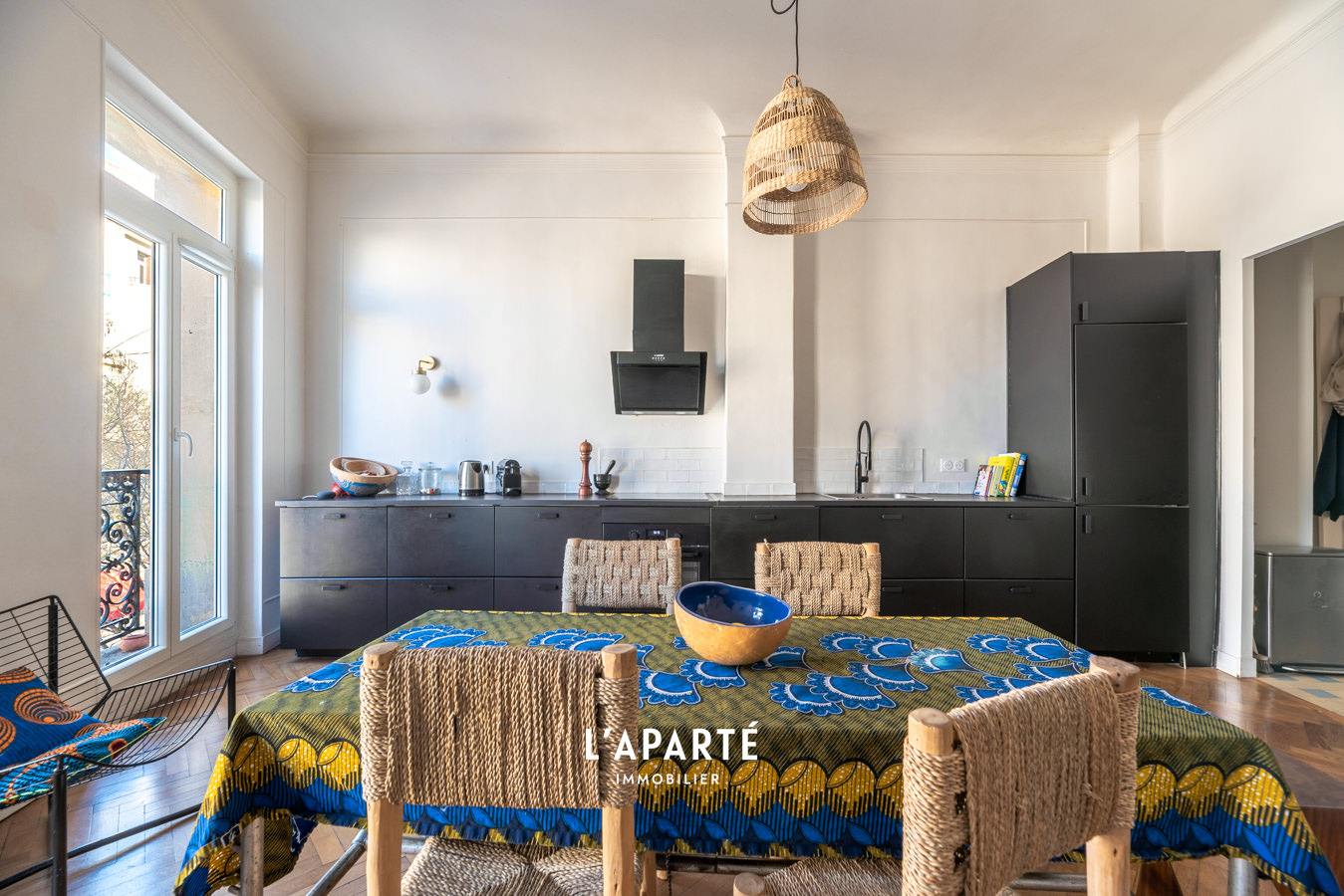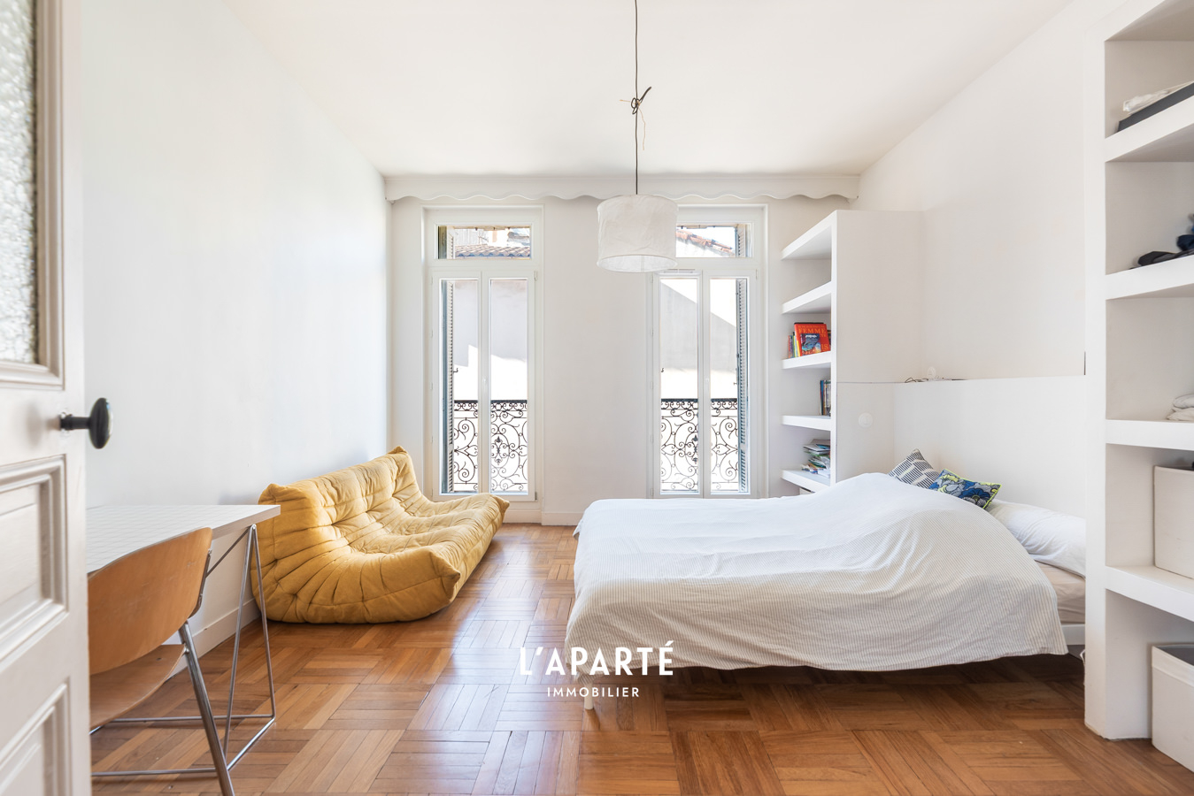 Au coeur de Notre-Dame-du-Mont, l'un des quartiers les plus recherchés de Marseille, l'aparté vous propose aujourd'hui cet appartement T5 de 158 m², entièrement rénové en 2020, alliant le charme bourgeois d'un immeuble du début du XXe siècle et le confort moderne de qualité. Dès l'entrée, vous serez séduit par les volumes généreux et les hauteurs sous plafond qui confèrent à cet appartement une atmosphère noble et spacieuse. La pièce de vie composée d'une belle entrée, d'un salon séjour et d'une cuisine séparée s'étend sur une surface de plus de 60m2 m², et capte la lumière à travers de nombreuses portes-fenêtres. C'est un espace convivial et élégant, parfait pour recevoir.La cuisine séparée, entièrement équipée, est à la fois fonctionnelle et esthétique. Le parquet massif , présent dans tout l'appartement, apporte une touche de chaleur et de raffinement à chaque pièce. Côté nuit, vous retrouverez 4 chambres dont une équipée de sa propre salle d'eau. Une deuxième salle de bains avec baignoire et douche complètent cet espace .Cette configuration offre un confort optimal pour une famille. Au sous sol enfin, une grande cave offre un espace non négligeable de rangement supplémentaire. Un bien d'exception, idéal pour une famille en quête d'espace et de confort. Situé à deux pas des commerces, des écoles ( cours Bastide et autres ) et du métro, cet appartement bénéficie d'un emplacement central et stratégique. Le quartier de Notre-Dame-du-Mont, connu pour son ambiance villageoise et sa proximité avec le centre-ville, offre un cadre de vie idéal pour ceux qui recherchent à la fois praticité et dynamisme. L'appartement a été rénové entièrement et présente des prestations de qualité. En effet la climatisation gainable distribue chaque pièce de l'appartement, le double vitrage est de qualité, l'électricité et la plomberie sont aux normes. Cet appartement se situe dans un immeuble de caractère, témoin de l'architecture marseillaise du début du XXe siècle. Les marqueurs du cachet de cet époque ont été préservés, conférant à ce bien une âme unique. N'hésitez pas à nous contacter pour des informations complémentaires. Honoraires à la charge du vendeur. Foncier : 2500 euros Performance énergétique : B Emissions GES : A Charges de copropriété : 170 euros / mois