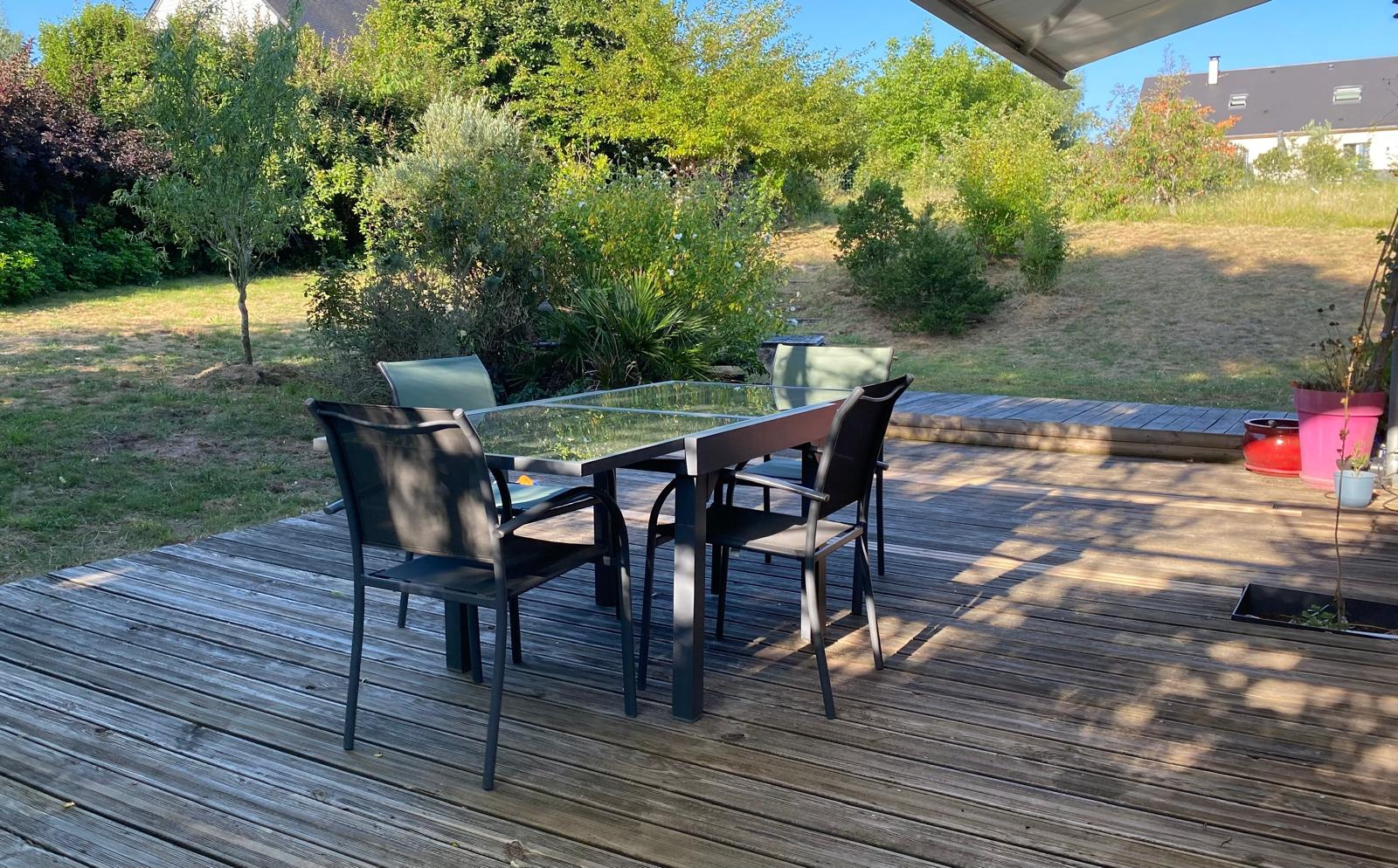 a vendre Maison récente en ossature bois, (fibre de bois, ouate de cellulose insufflée, fermacell, chauffe eau thermodynamique, Vmc double flux, ardoises naturelles) dans une environnement calme, sur 1000 m2 de terrain environ. Composée de 3 chambres dont une suite parentale au rdc, cuisine aménagée et équipée ouverte sur le séjour (45 m2), salle d'eau et salle de bain, poele a bois, bureau, garage. (5.04 % honoraires TTC à la charge de l'acquéreur.)