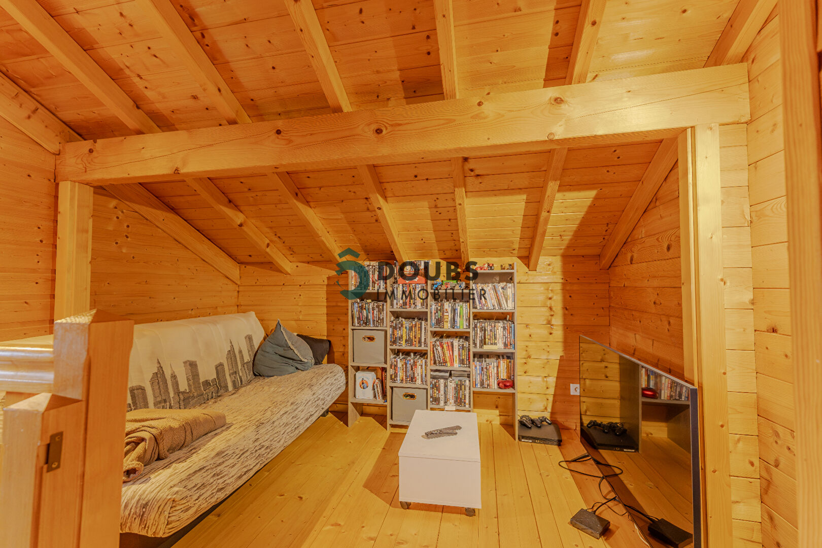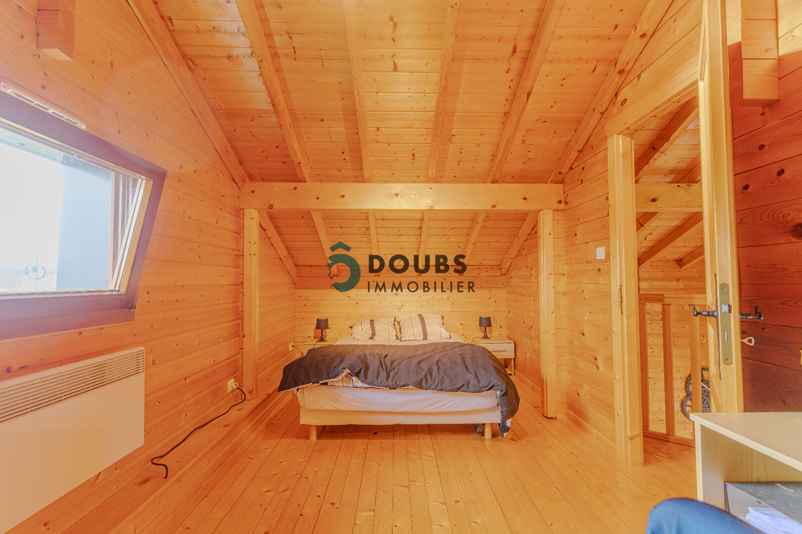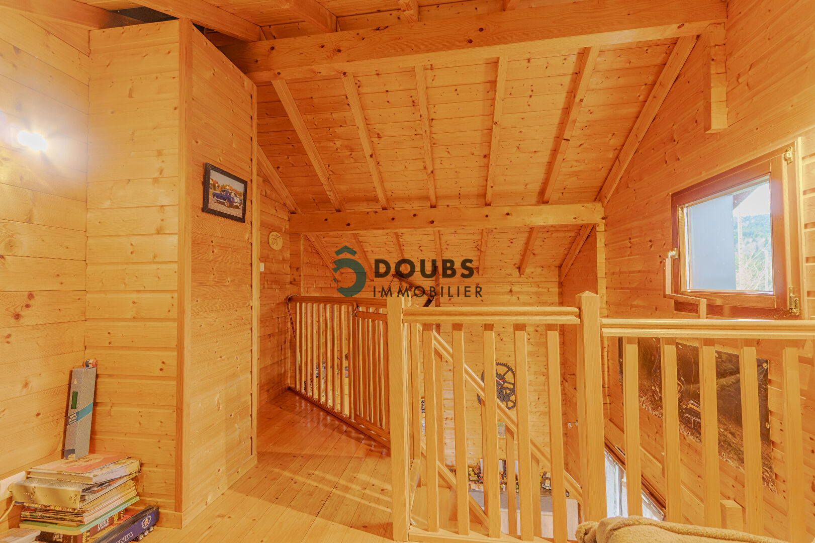 Découvrez ce joli chalet d'une surface de 68 m², implanté sur un terrain de 498 m², offrant un cadre de vie paisible et chaleureux. Au rez-de-jardin, vous serez séduit par une agréable pièce à vivre comprenant une cuisine aménagée et équipée ouverte sur le salon, créant un espace convivial et lumineux, idéal pour recevoir. Un salon cosy, véritable coin détente, complète ce niveau et donne accès à une terrasse couverte bénéficiant d'une superbe vue dégagée, parfaite pour profiter des beaux jours comme des soirées plus fraîches. Vous trouverez également une salle d'eau avec douche et vasque, ainsi qu'un WC séparé. A l'étage, une mezzanine aménagée en espace TV ou bureau offre un volume supplémentaire modulable selon vos besoins, et dessert une grande chambre permettant aisément d'y installer un grand lit ainsi qu'un espace bureau, avec en complément des placards de rangement. A l'extérieur, un petit chalet indépendant vient compléter ce bien, idéal pour du stockage, un atelier ou un espace annexe. Le chauffage est assuré par un poêle à granulés de bois, complété par un système électrique. Ce chalet plein de charme est idéal en résidence principale comme en résidence secondaire.