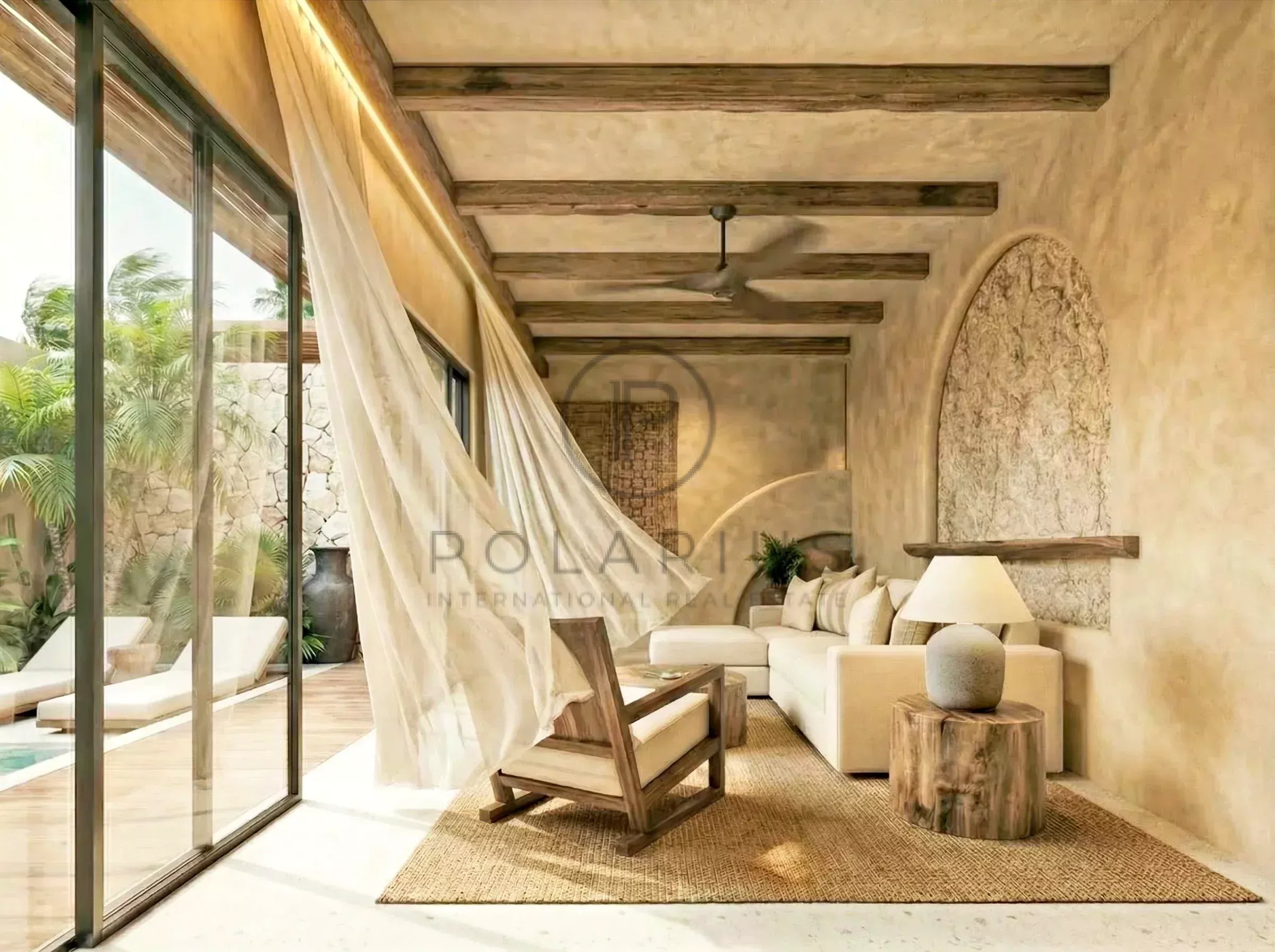 Ogni villa offre un'esperienza abitativa armoniosa, combinando curve morbide, texture calde e ventilazione naturale per creare un'atmosfera tranquilla e lussuosa.