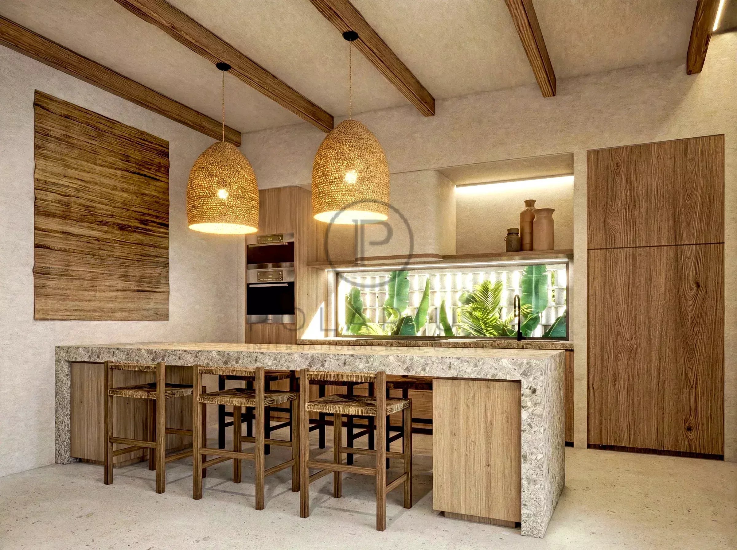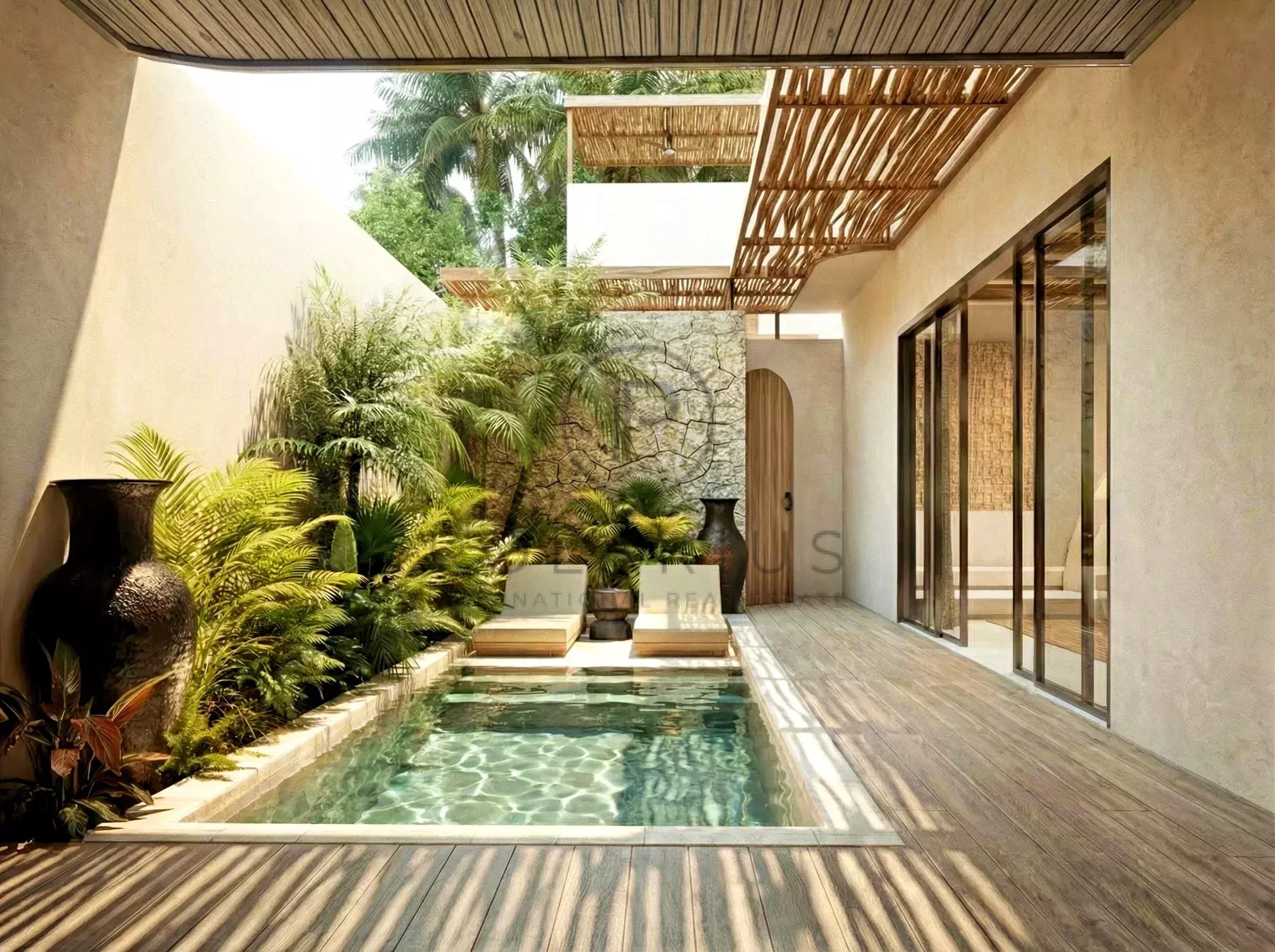 Architettura tropicale moderna con materiali naturali di alta qualità