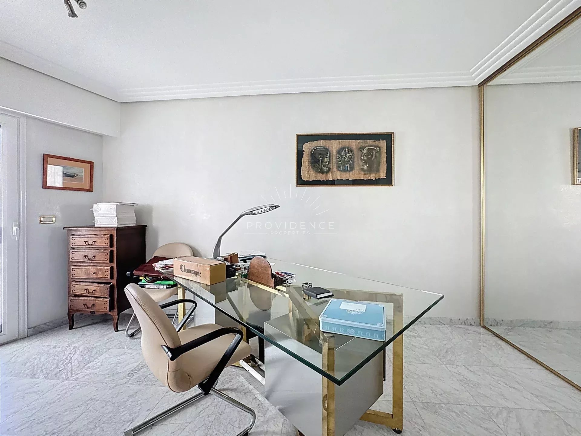 Situato in una delle zone più ricercate di Cannes, nel cuore del quartiere Palm Beach / Moure Rouge, sul prestigioso boulevard Eugène Gazagnaire, questo raro appartamento gode di una posizione eccezionale fronte mare, a pochi metri dalle spiagge. Al 4° piano di una residenza recente e riservata, con un solo appartamento per piano, questo appartamento passante di 118 m² offre una spettacolare vista panoramica sul mare e una luminosità straordinaria. L’ampio soggiorno si apre su una splendida terrazza di 28 m² esposta a est, di fronte al mare, con una vista unica sul Mediterraneo e sulle isole di Lérins. L’appartamento è composto da: – un ingresso spazioso – un luminoso soggiorno con accesso diretto alla terrazza – una cucina indipendente anch’essa orientata verso il mare – una suite padronale con bagno – due ulteriori camere da letto – un bagno con doccia – un toilette per gli ospiti Sebbene da modernizzare, questo appartamento presenta un potenziale eccezionale di valorizzazione in uno dei settori più prestigiosi di Cannes. Annessi particolarmente rari: – ampio garage chiuso – secondo garage profondo – posto auto privato Una proprietà rara, ideale come residenza principale o pied-à-terre, in uno degli indirizzi più emblematici della Costa Azzurra. Gli appartamenti con vista mare frontale sul boulevard Gazagnaire con un solo appartamento per piano sono estremamente rari sul mercato.