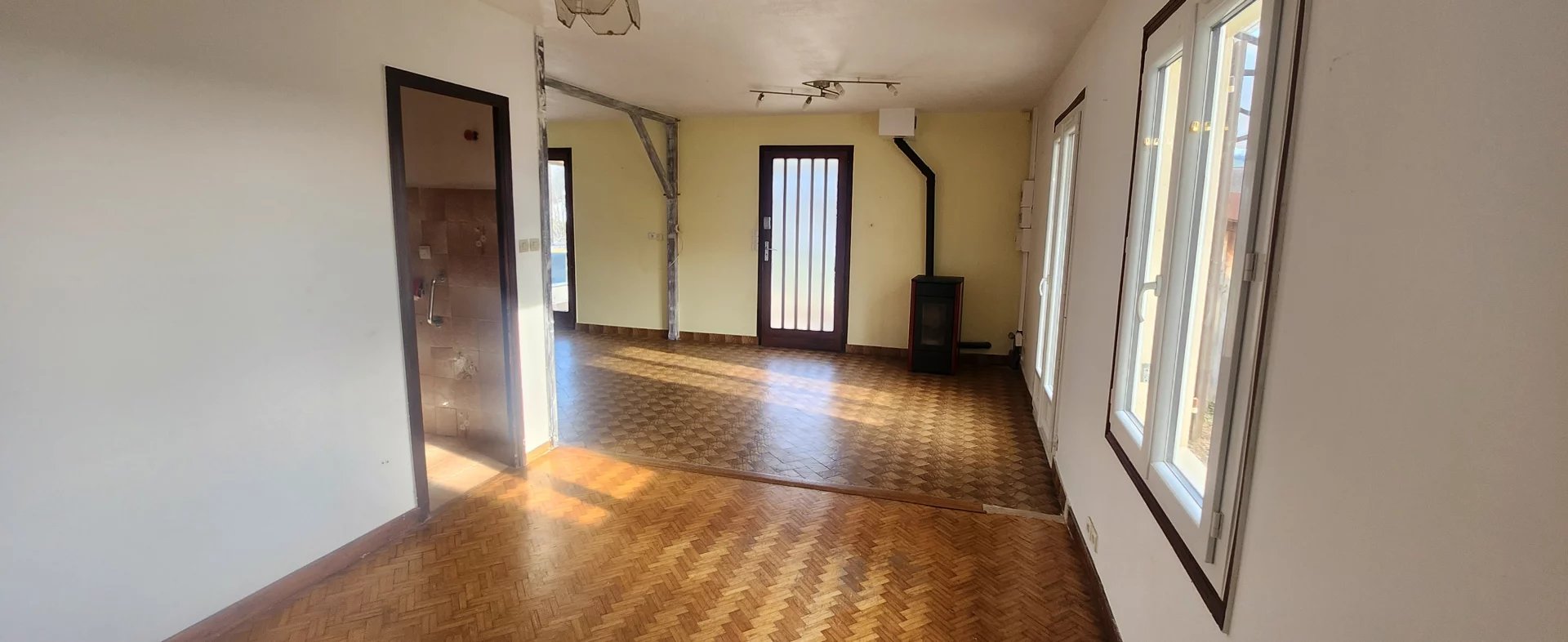 Maison individuelle de type T3 d'une superficie de 75 m², située 300 chemin de Tanche à Chélieu, disponible immédiatement. Le logement se compose d'un vaste séjour de 33 m², lumineux et agréable à vivre, ainsi que d'une véranda de 18 m² offrant un espace supplémentaire idéal pour profiter de la lumière naturelle tout au long de l'année. La maison comprend deux chambres et bénéficie d'un chauffage économique par poêle à granulés. À l'extérieur, un grand terrain complète ce bien, parfait pour profiter des beaux jours. Un garage complète le bien. Surface : 75 m² Loyer : 810 € Disponibilité : immédiatement Chauffage : poêle à granulés Dépôt de garantie : 810 € Honoraires locataire TTC : 810 € dont 210 € de frais d'état des lieux