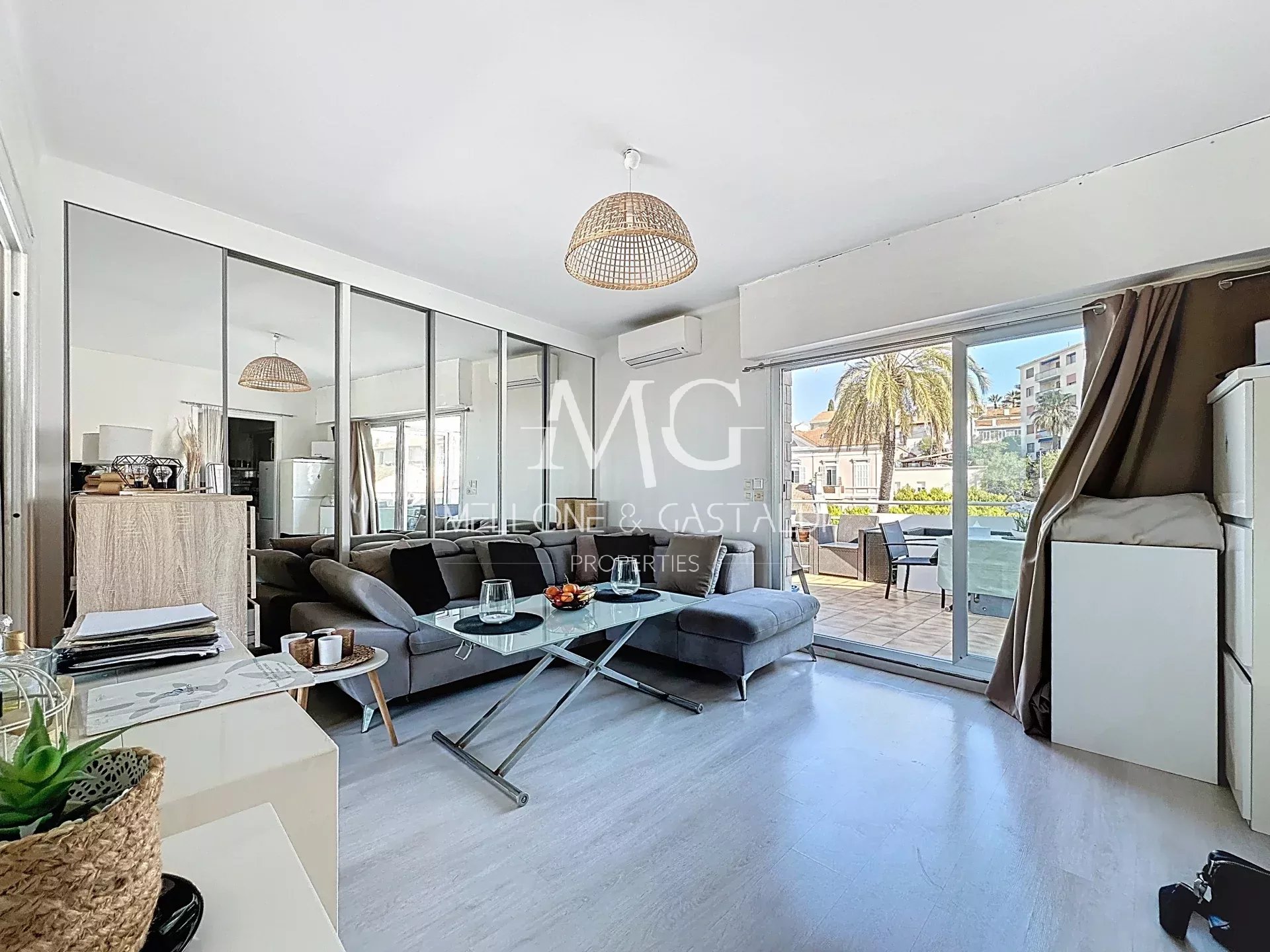 Exclusivité Dans le secteur recherché de Stanislas à Cannes. au sein d’une résidence avec ascenseur. découvrez ce 2/3 pièces traversant d’environ 55m². situé au 4ème étage sans voisins au dessus !! bénéficiant d’une belle luminosité et d’une vue mer dégagée. L’appartement se compose d’un séjour ouvrant sur une spacieuse terrasse d’environ 20 m² offrant une agréable vue avec verdure. d’une chambre avec vue mer. d’une cuisine indépendante. ainsi que d’une salle de douche à l’italienne récemment rénovée et d'un WC séparé. Un grand dressing sur mesure dans l'entrée finira de vous séduire. Une véranda d’environ 8 m² aménagée en chambre complète l’espace de vie et peut également être utilisée en jardin d’hiver ou bureau. offrant une belle flexibilité d’aménagement. Grâce à sa double exposition Sud-ouest / Nord-Est. le bien bénéficie d’une luminosité optimale tout au long de la journée. Appartement offrant un fort potentiel. idéal en résidence principale. pied-à-terre ou investissement locatif. Charges : 550 € / trimestre Taxe foncière : 930 €
