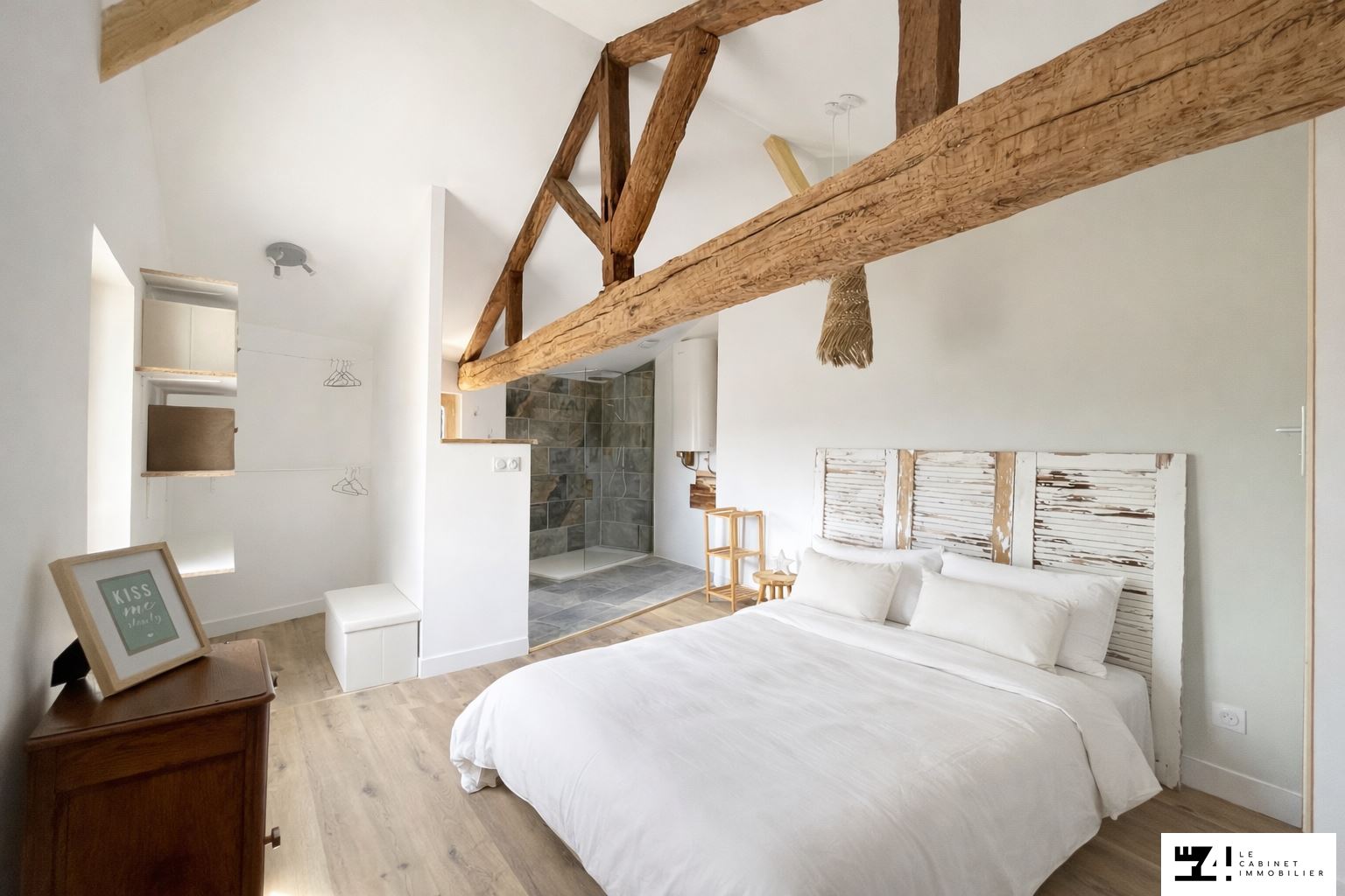 Au dernier niveau, une spacieuse suite parentale comprenant un coin dressing, une belle douche à litalienne et un second WC indépendant.