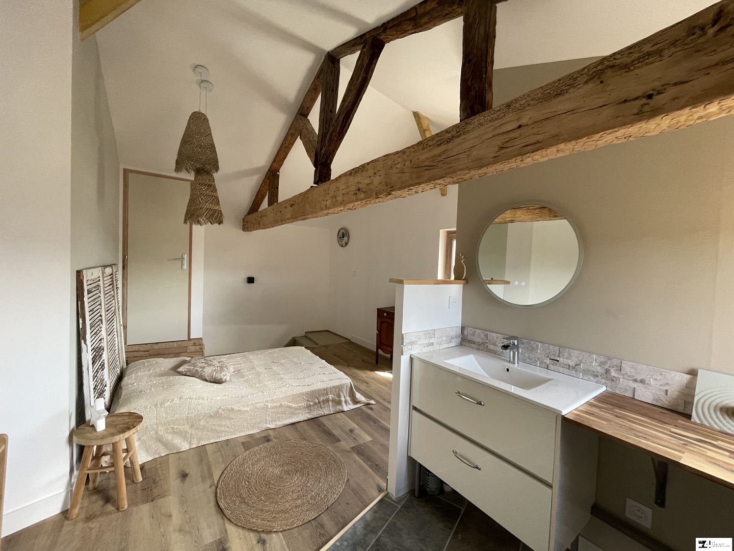 Au premier étage, une chambre lumineuse.
