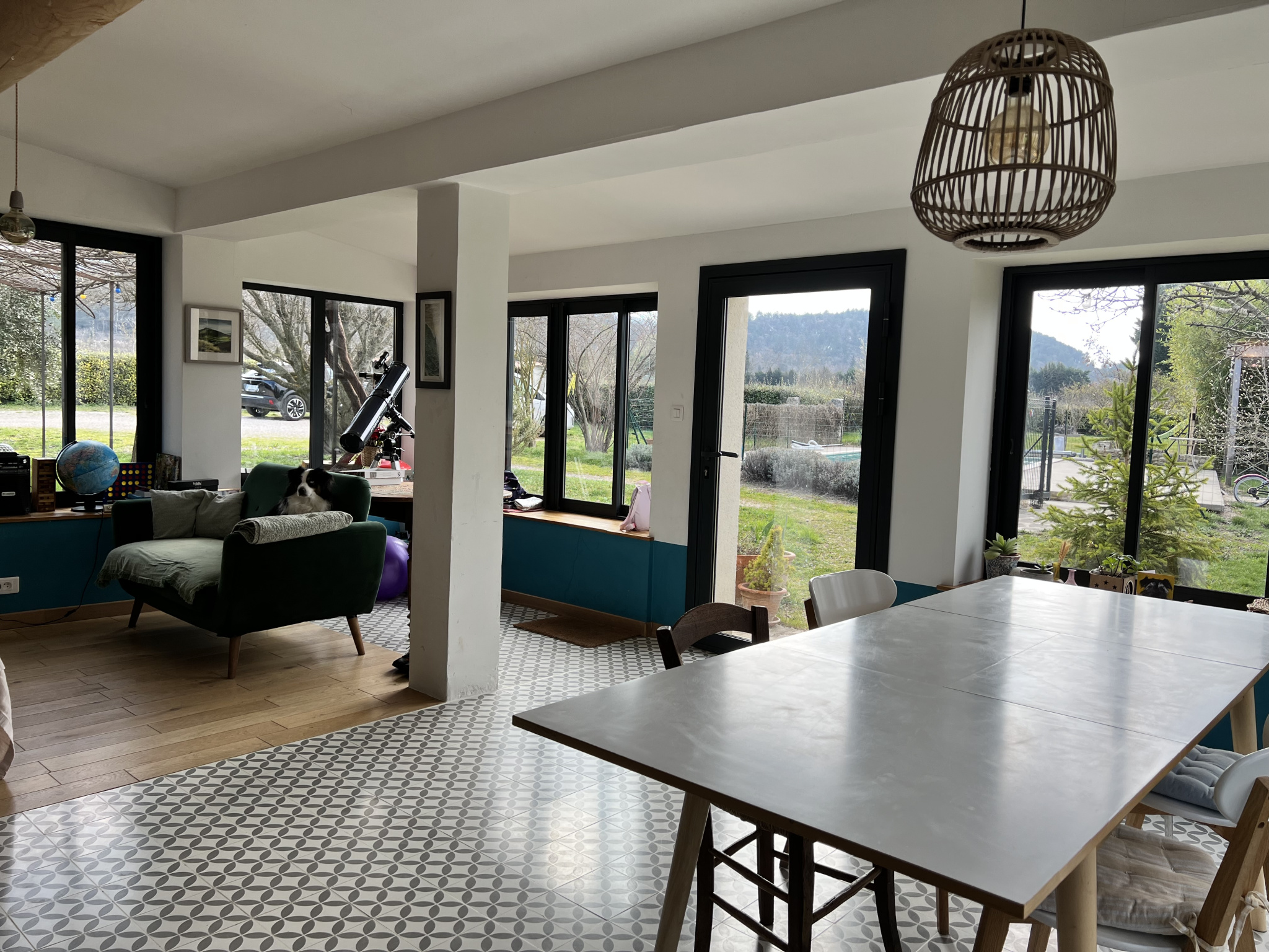 Pour les amoureux de nature et d'espace, jolie maison en pierre pleine de charme, située dans un environnement calme et préservé à seulement quelques minutes de Vaison-la-Romaine. À l'origine ancien cabanon en pierre, la bâtisse a été agrandie par une extension plus récente, offrant aujourd'hui environ 110 m2 habitables tout en conservant le cachet de l'ancien. La maison se compose d'un séjour lumineux d'environ 30 m2, d'un espace cuisine, et d'un coin nuit avec trois chambres, idéal pour recevoir. Une salle de bains séparée et une salle deau privative à une chambre complètent l'ensemble. A l'extérieur, la propriété bénéficie d'un terrain d'environ 1.4 hectares, véritable havre de paix en pleine nature. Cet espace offre de nombreuses possibilités : chevaux, grand jardin, verger... Vous apprécierez également la piscine et les espaces extérieurs, parfaits pour profiter des beaux jours en Provence. Cette propriété constitue une résidence principale agréable ou une résidence secondaire idéale. LG Immobilier se tient à votre disposition.