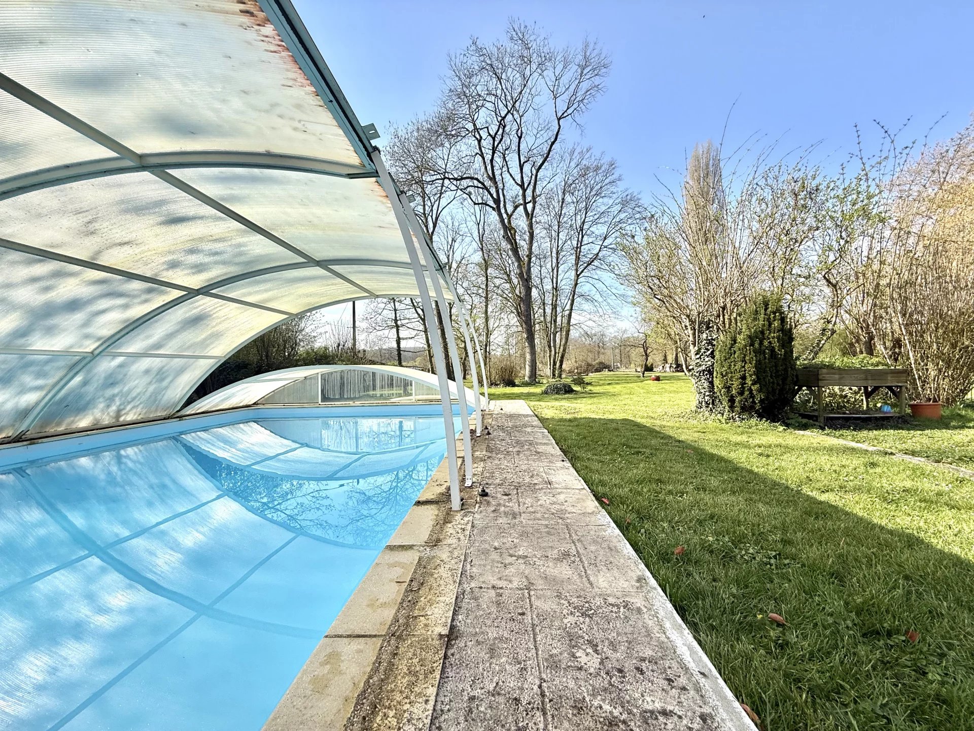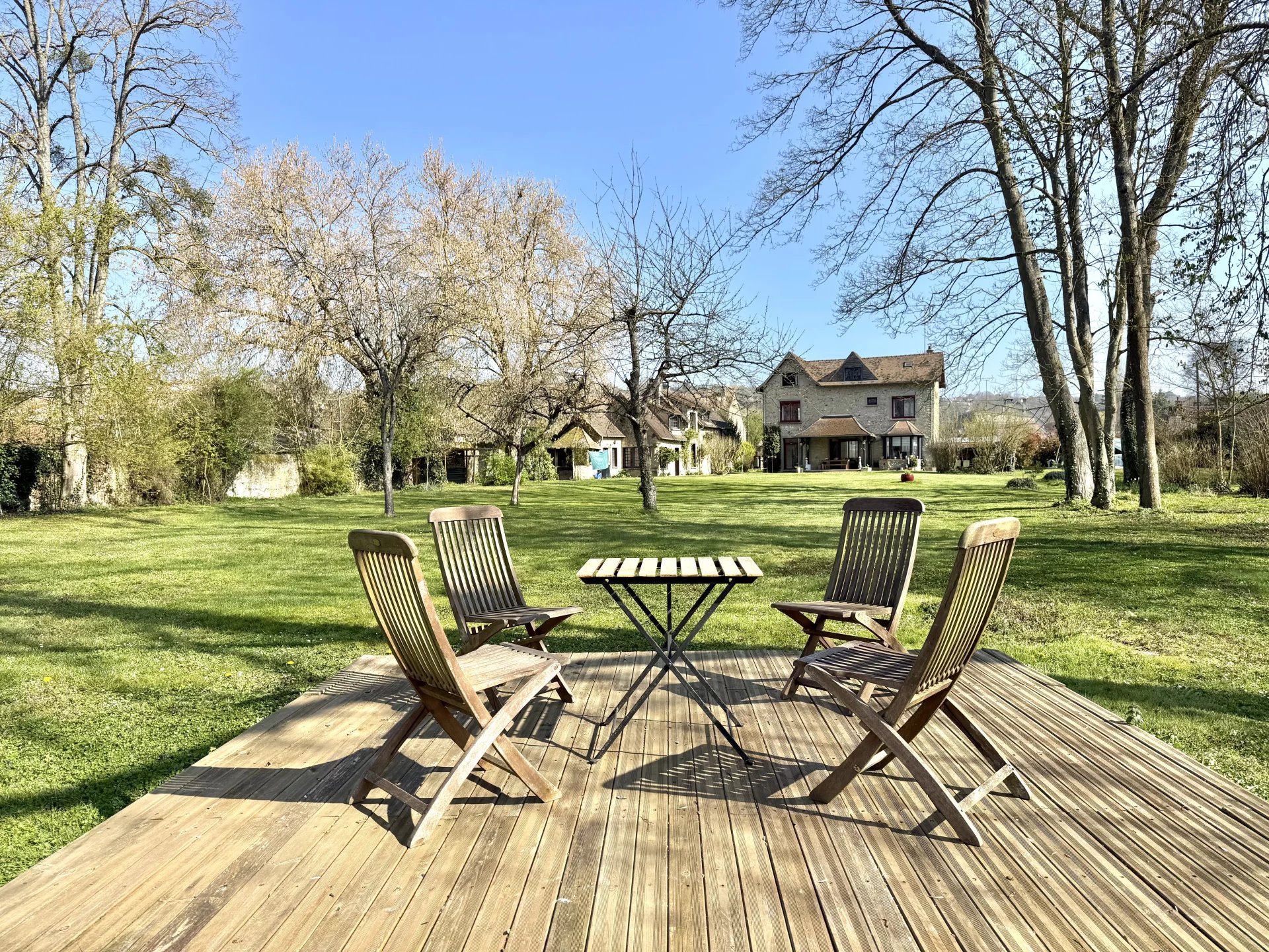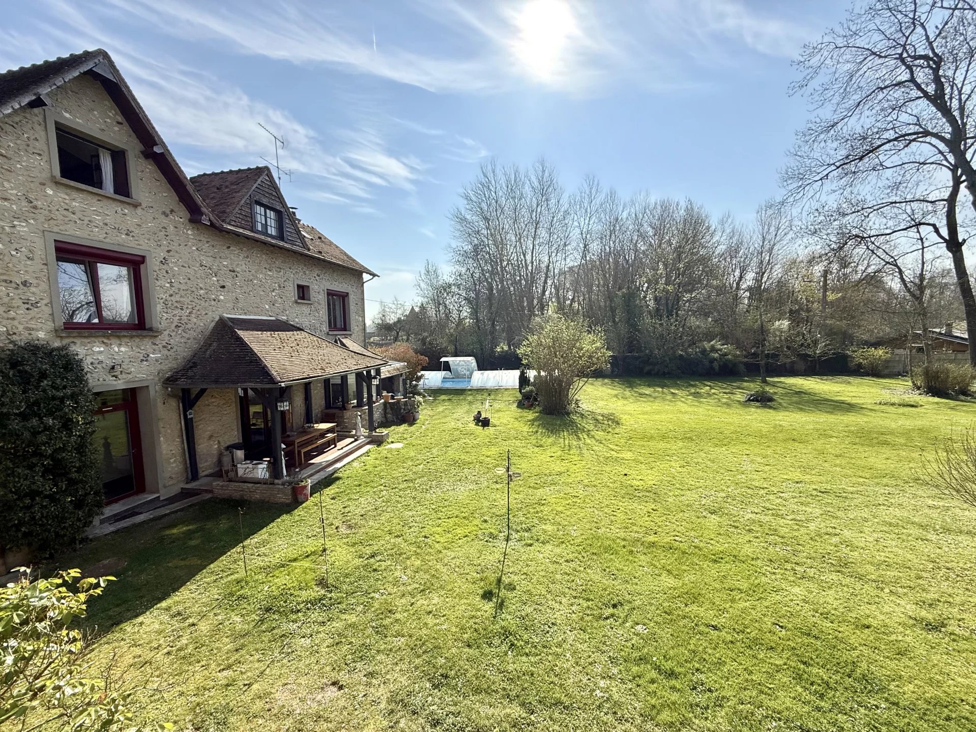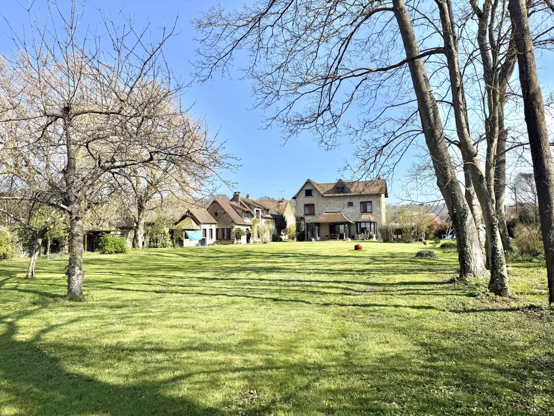NOUVEAUTÉ ! Située à Ménilles, dans un environnement calme et verdoyant en bord de l’Eure, cette propriété de charme est édifiée sur un terrain clos de plus de 4 000 m². Elle se compose de deux habitations indépendantes, offrant de nombreuses possibilités pour un projet familial, une résidence secondaire ou une activité de gîte. À l’extérieur, vous profiterez d’un jardin paysager, d’une piscine 10 x 5 m, deux garages. - La maison principale (env. 142 m²) se compose : Au rez-de-chaussée : une vaste pièce de vie lumineuse avec poêle à bois, une cuisine indépendante avec accès direct au jardin ainsi qu’un WC. Au premier étage : deux chambres, une salle de bains avec douche et un WC indépendant. Au second étage : un bgarnd pallier desservant deux chambres, idéales pour accueillir famille et amis. - La maison annexe (env. 104 m²) comprend : Au rez-de-chaussée : une pièce de vie avec cheminée, une cuisine indépendante, un salon avec cheminée ainsi qu’une salle d’eau avec WC et placard. En demi-niveau : une chambre. À l’étage : une suite parentale et une chambre en enfilade. Un bien rare offrant calme, espace et de nombreuses possibilités d’aménagement, à proximité des commodités. Prix de vente : 599 000 € honoraires d'agence inclus à la charge du vendeur
