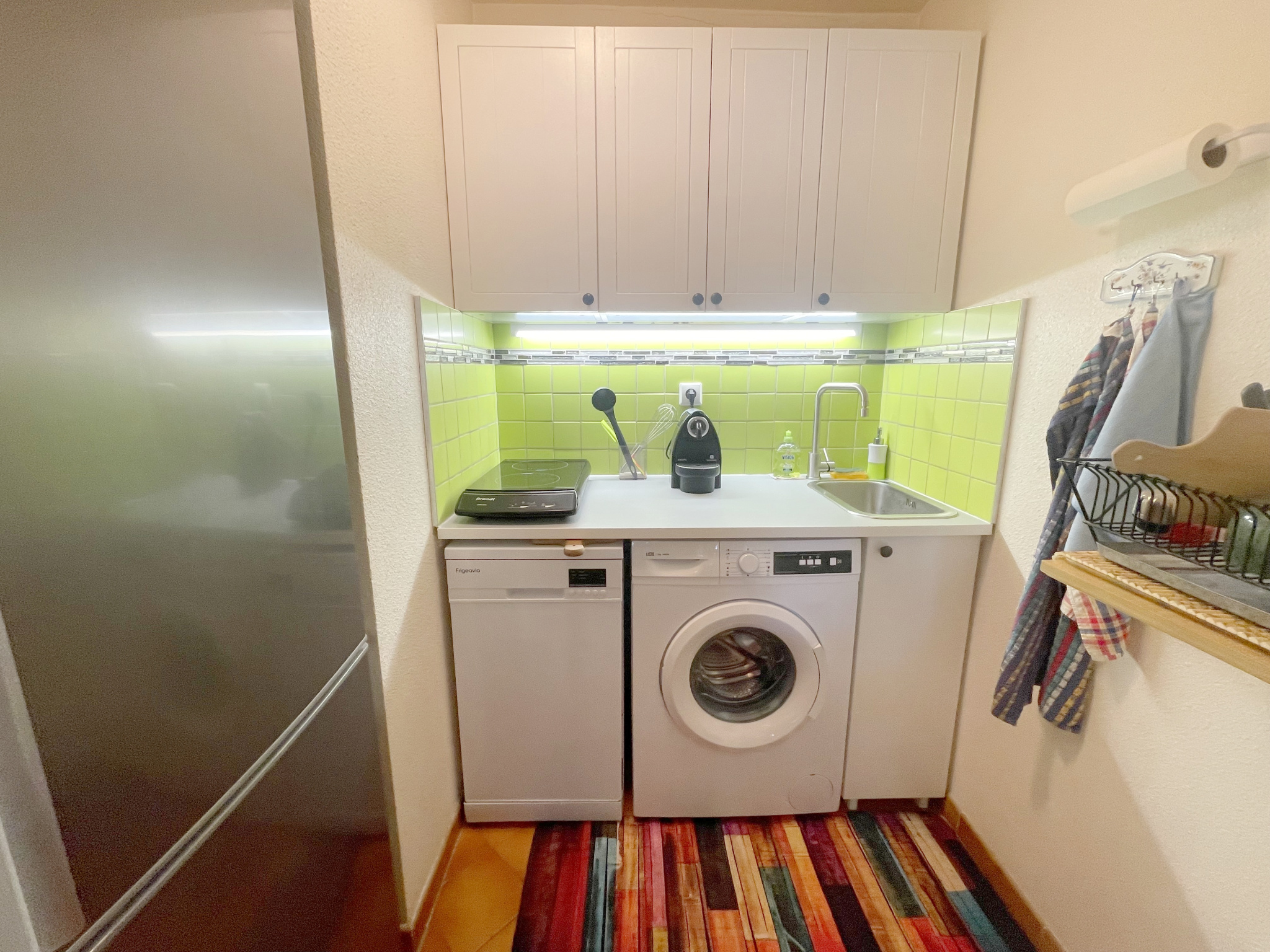 Comprenant un hall d'entrée avec emplacement pour 2 lits couchettes , un wc séparé , une salle d'eau à l'italienne , une spacieuse et lumineuse pièce de vie avec lit intégré ainsi qu'une cuisine aménagée et équipée .