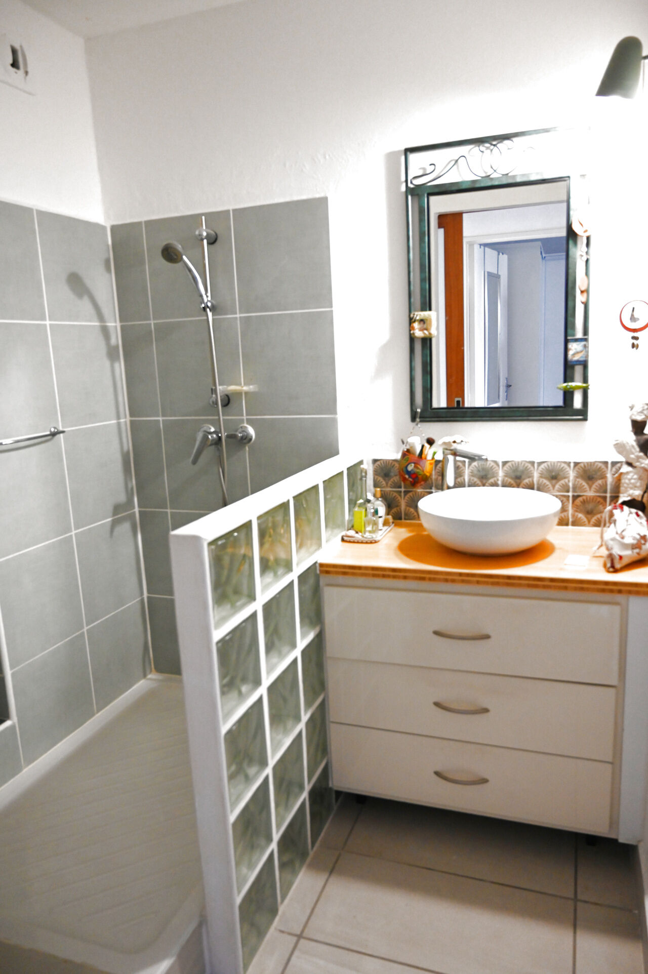 Il est composé d'une entrée, un séjour donnant sur la terrasse, une cuisine aménagée et semi équipée avec un coin salle à manger, deux chambres de plus de 11 m² dont une avec placard encastré, une salle d'eau et wc séparé.