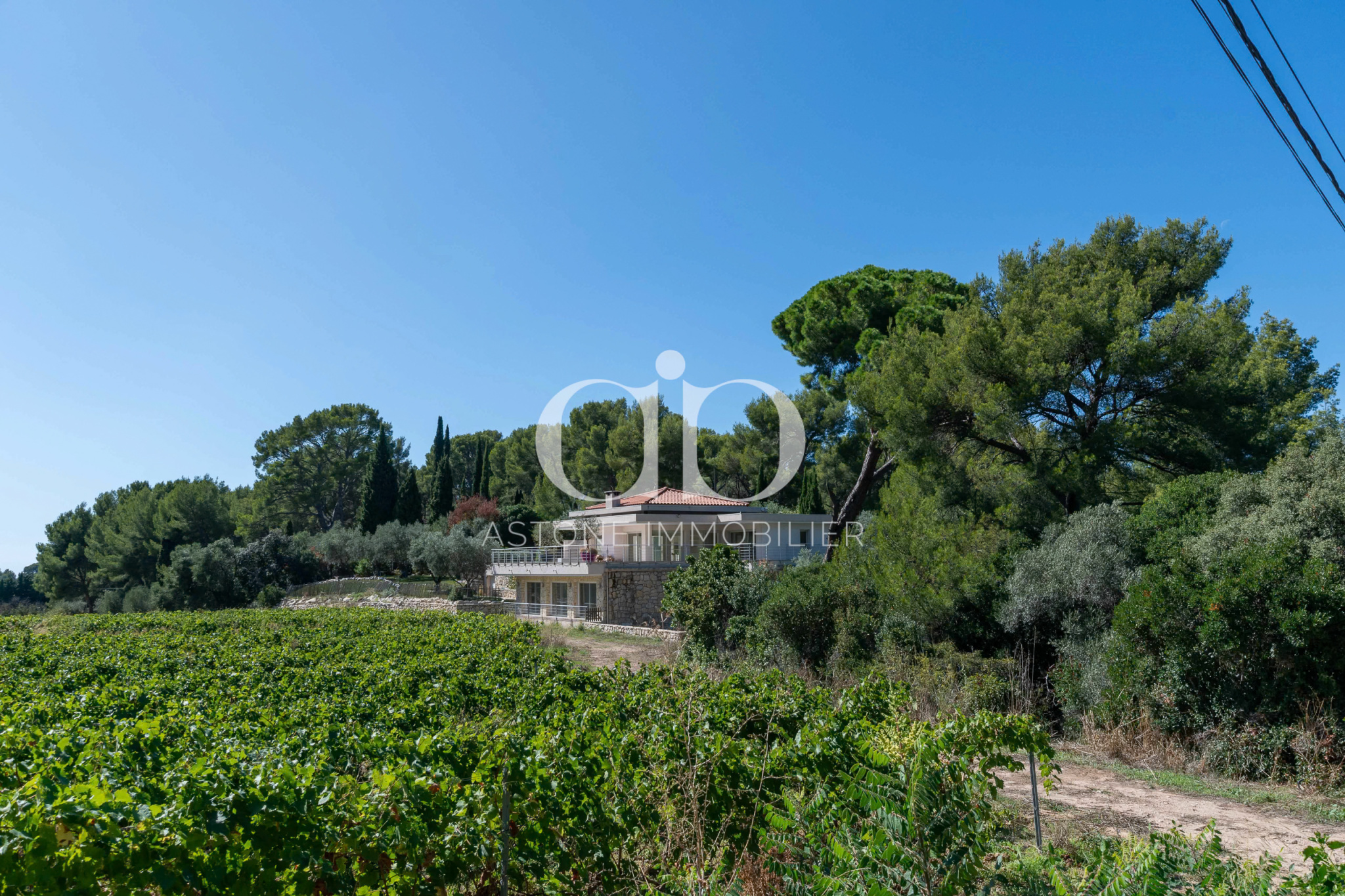 Au coeur du vignoble cassidain, entourée de domaines viticoles de renom, cette villa contemporaine de 245 m2 s'ouvre sur un panorama exceptionnel : les rangs de vigne à perte de vue, la silhouette emblématique de la Couronne de Charlemagne et la campagne provençale préservée. Un cadre rare, à quelques minutes du village de Cassis.