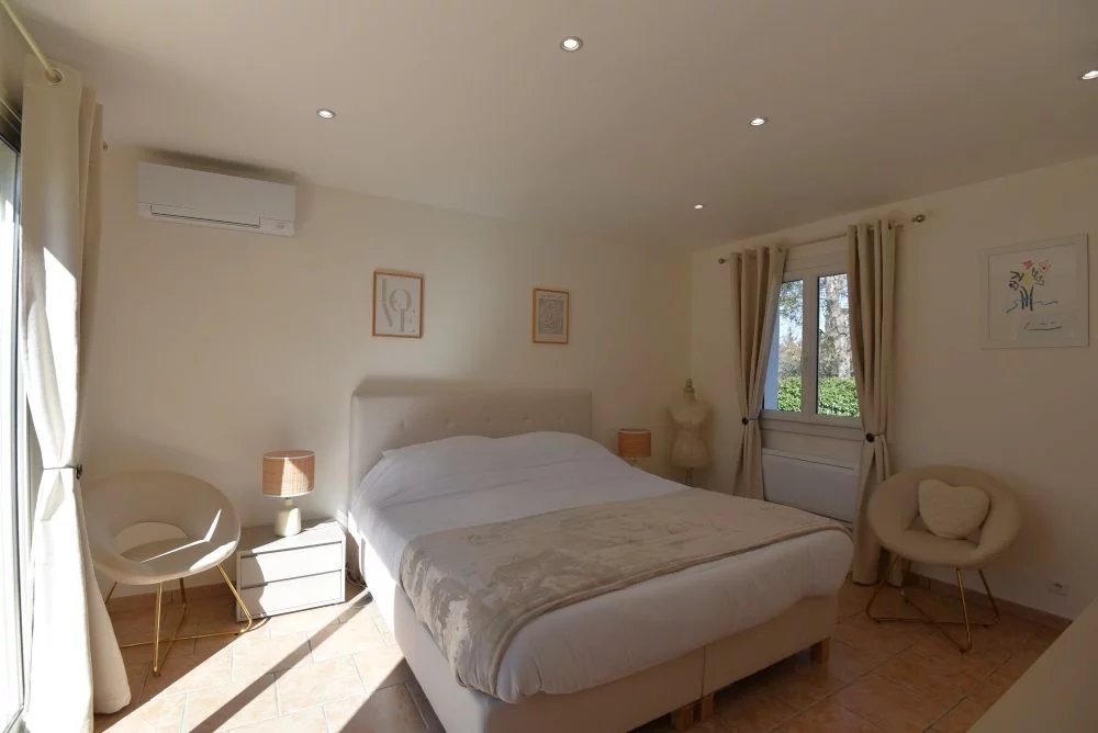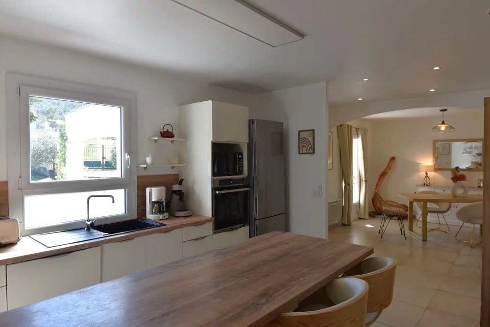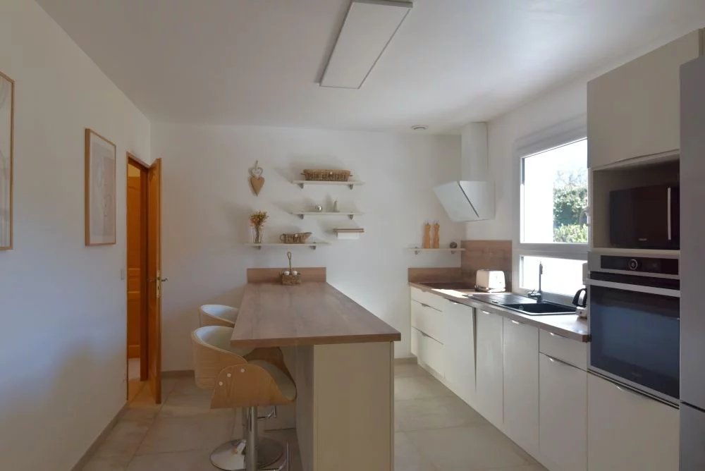 Située au fond d’une impasse, cette villa offre un cadre de vie paisible et verdoyant, idéal pour se ressourcer toute l’année. Son séjour lumineux avec cheminée s’ouvre sur une terrasse couverte, véritable prolongement de la maison, parfaite pour profiter des beaux jours. Le jardin de 2000 m², agrémenté d’une piscine et d’une cuisine d’été, invite à des moments conviviaux en famille ou entre amis. Au rez-de-chaussée : Séjour avec cheminée Cuisine ouverte équipée Accès terrasse couverte 3 chambres Dressing Salle de bains + salle d’eau À l’étage : 1 chambre (bureau, suite ou espace indépendant) ANNEXES & CONFORT Garage avec mezzanine, second garage, buanderie, abris extérieurs, nombreux rangements. EXTÉRIEURS Terrain plat et arboré de 2000 m² Piscine Cuisine d’été Espaces détente et ombragés Aucun vis-à-vis Imaginez vos journées entre baignades, repas sous la terrasse et soirées au calme… Une maison idéale en résidence principale comme secondaire. Bien recherché sur le secteur, contactez nous rapidement pour une visite.