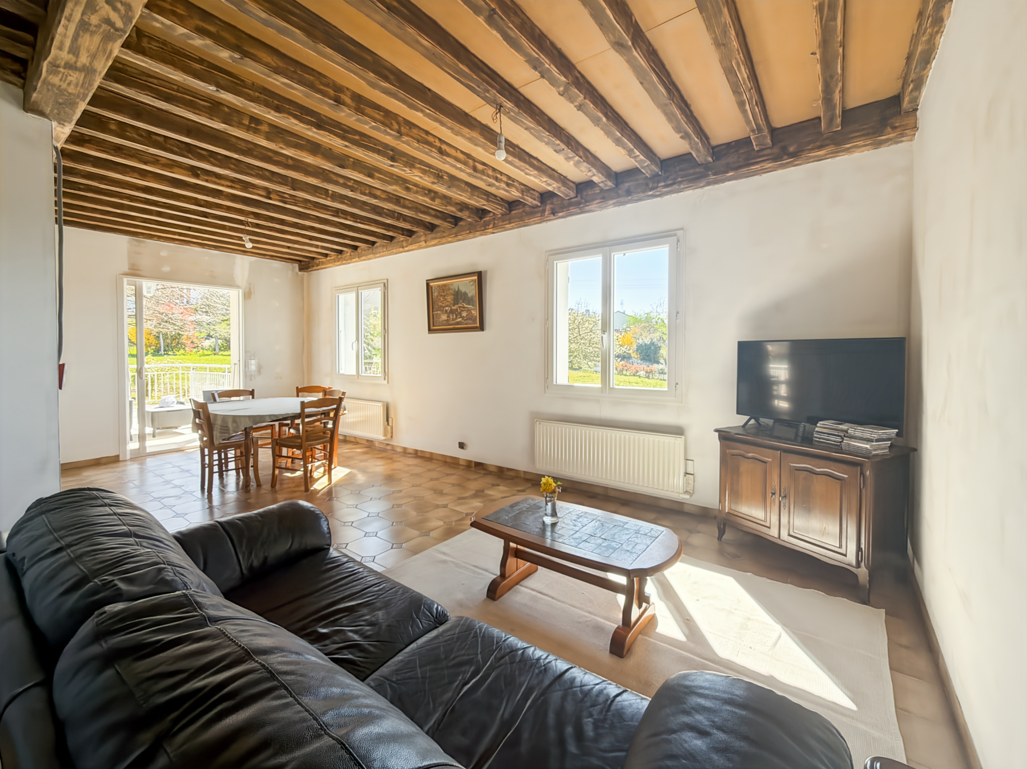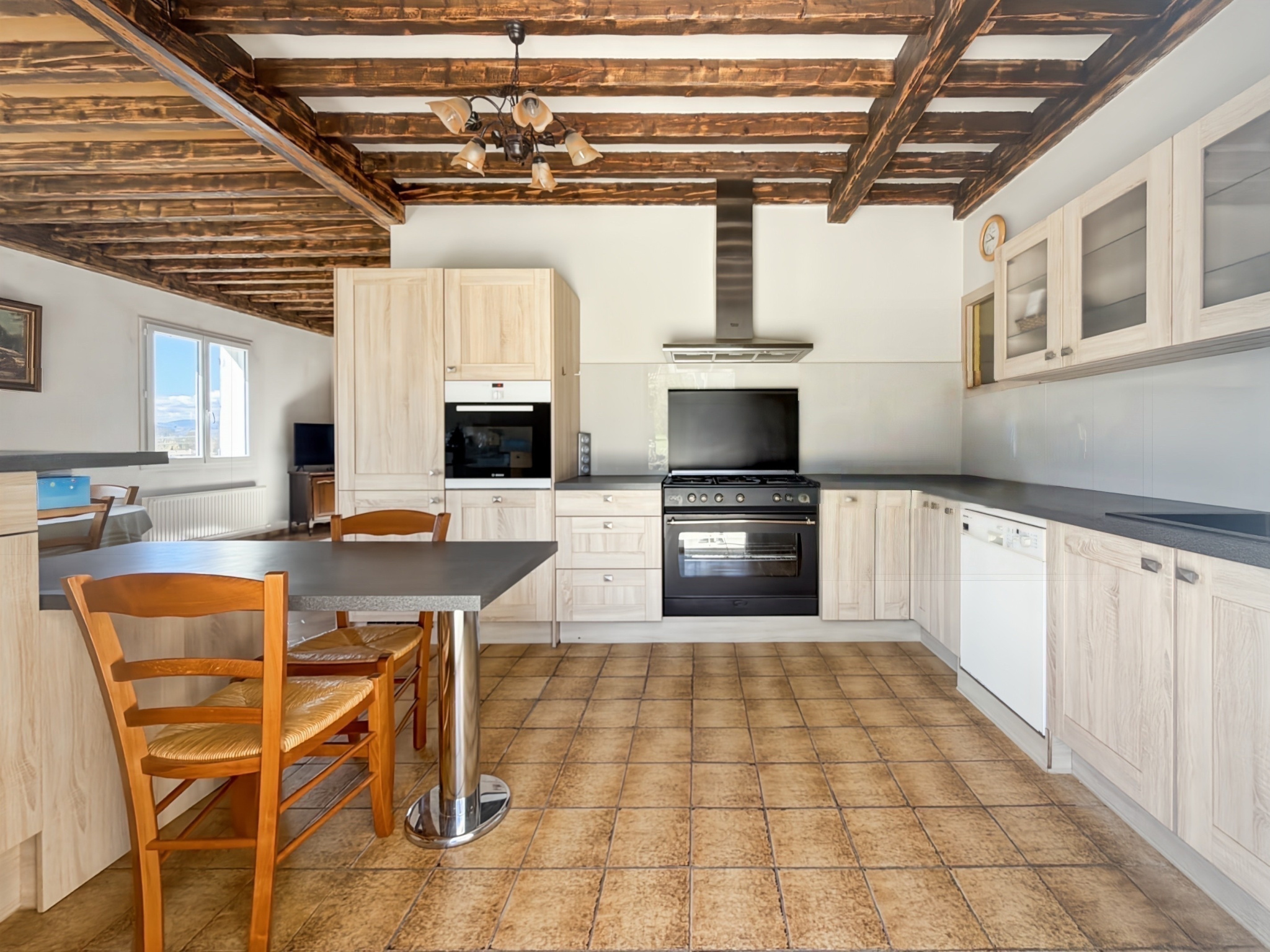 L'étage principal accueille un vaste espace de vie particulièrement lumineux, composé d'un salon, d'un séjour, d'une cuisine et d'une salle à manger, avec un coin nuit bien séparé comprenant quatre chambres confortables. L'ensemble séduit par sa fonctionnalité, ses beaux volumes et sa luminosité.
