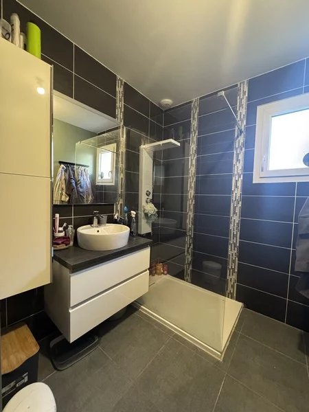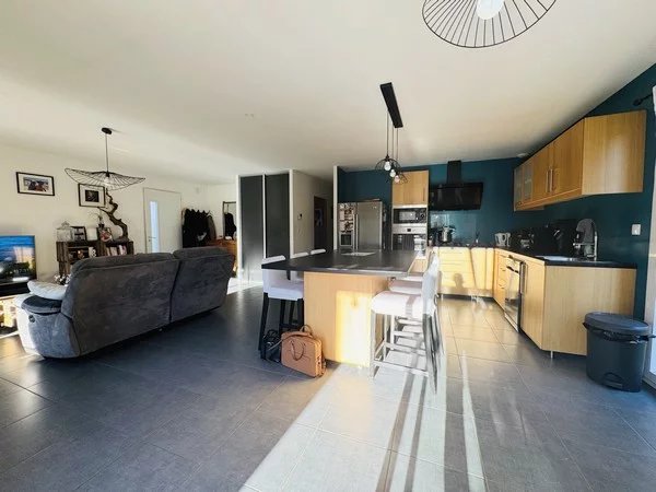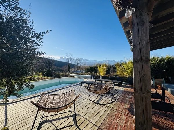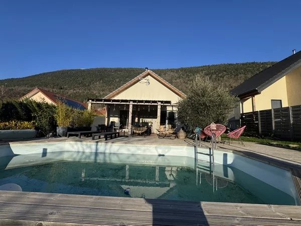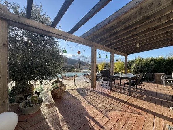 Maison rare dans ce secteur, de plain-pied, offrant une surface de 88 m² sur une parcelle de 1650m², complétée par une piscine chauffée et un garage. Profitez d'un système de chauffage performant combinant un plancher chauffant et un poêle à bois. De plus, des panneaux solaires sont installés, vous permettant non seulement de couvrir vos besoins en énergie, mais aussi de générer un revenu annuel d'environ 500 euros. Cette maison dispose d'une cuisine équipée ouverte sur un espace de vie lumineux, s'ouvrant directement sur une terrasse avec une vue imprenable sur le Vercors, trois chambres, une salle d'eau et des toilettes. A proximité : école primaire, bus. Agent Commerciale (RSAC) du Tribunal de Commerce de Grenoble sous le numéro 80377631900011 Mme Fiorani au O6 37 395 756 ou par mail jf.espaceimmo38@gmail.com