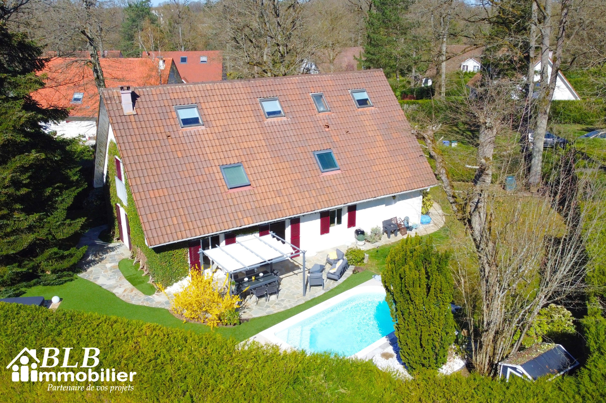 AU CALME, dans un CADRE D'EXCEPTION, proche Forêt et proche centre-ville, Kim et David, BLB Immobilier vous invitent à vivre votre rêve familial dans cette superbe propriété de 250 m2 habitable (270 m2 surface utile) nichée au coeur d'une résidence ultra-recherchée des Essarts-le-Roi (Yvelines 78690). Ici, le calme règne en maître : aucun vis-à-vis, un terrain clos et arboré de 1048 m2 paysager, de vastes terrasses baignées de soleil, une PISCINE chauffée privative et son coin JACCUZZI pour des soirées magiques en famille ou entre amis.