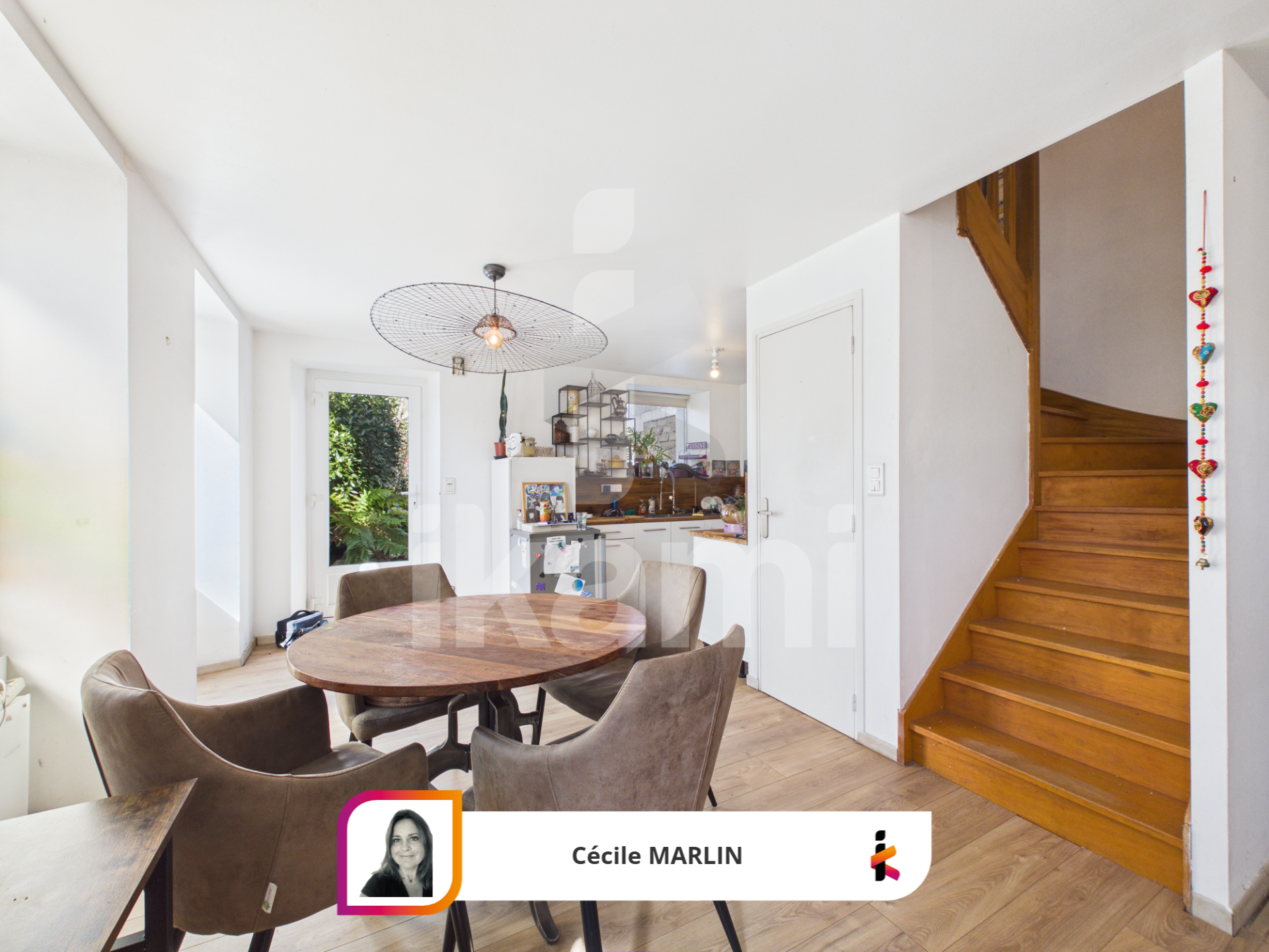 Le rez-de-chaussée propose un bel espace de vie d'environ 38 m2 avec salon, salle à manger et cuisine ouverte aménagée et équipée, baigné de lumière grâce à son exposition plein sud.
