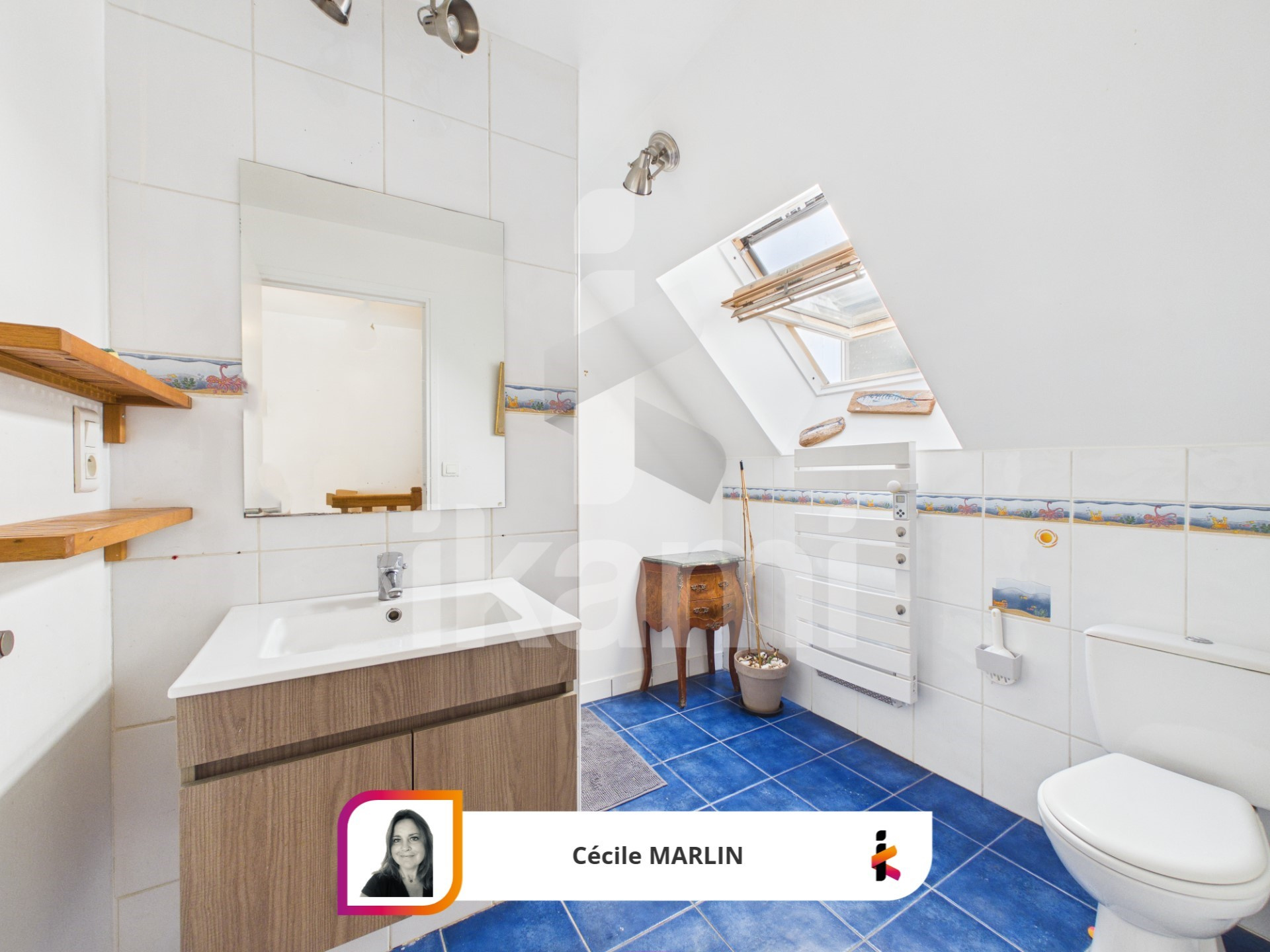 À l'étage, deux chambres de 17,46 m2 au sol (13.78 m2 Carrez) pour la plus grande, et de 9,81 m2 au sol (6,60 m2 Carrez) pour la seconde, et d'une salle d'eau avec WC.
