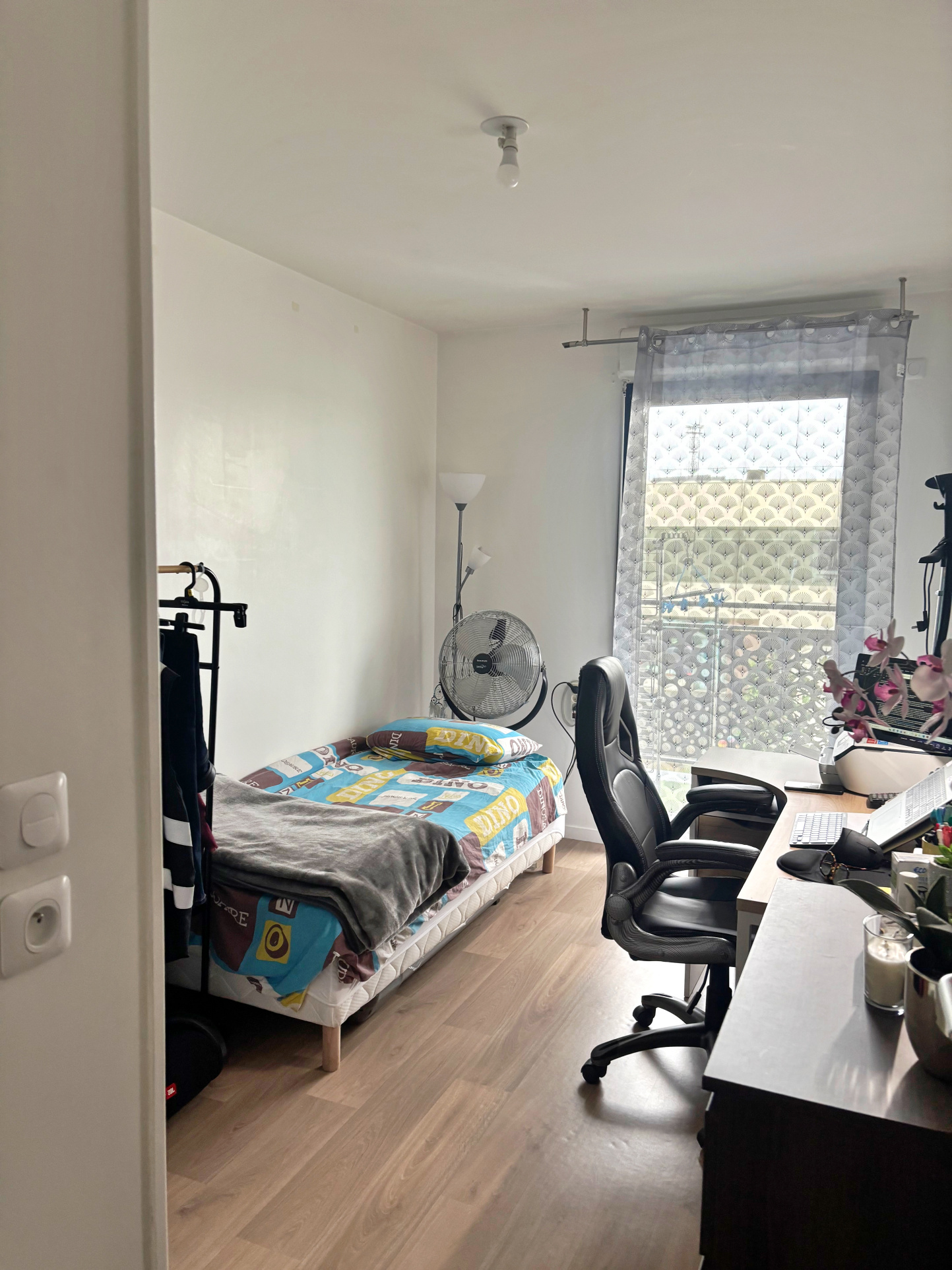 une belle entrée desservant un wc, une salle d'eau , 2 chambres (10.5 et 12 m2) dont une avec rangements, un beau sejour ouvert sur une cuisine equipée (25m2) donnant sur un balcon et 2 places de parking en sous sol.