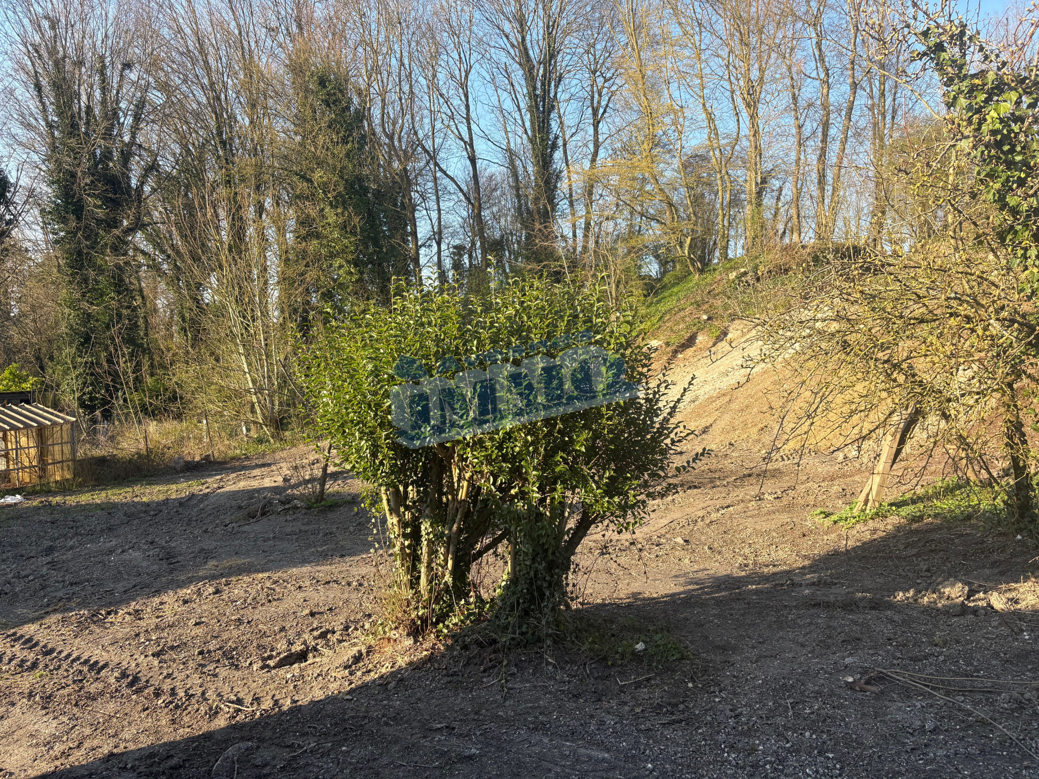 À l'étage, une chambre ainsi qu'un grenier aménageable offrent de belles perspectives d'agrandissement. À l'arrière de la maison, le terrain en pente permet d'accéder à une prairie ou à une zone boisée, idéale pour les amoureux de la nature ou pour développer un projet paysager.