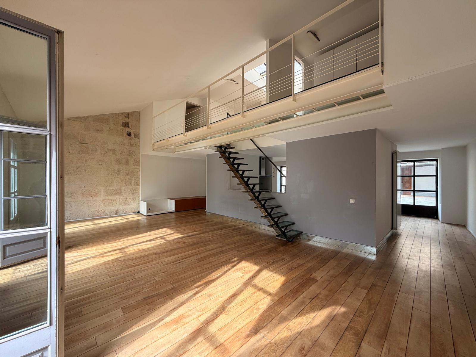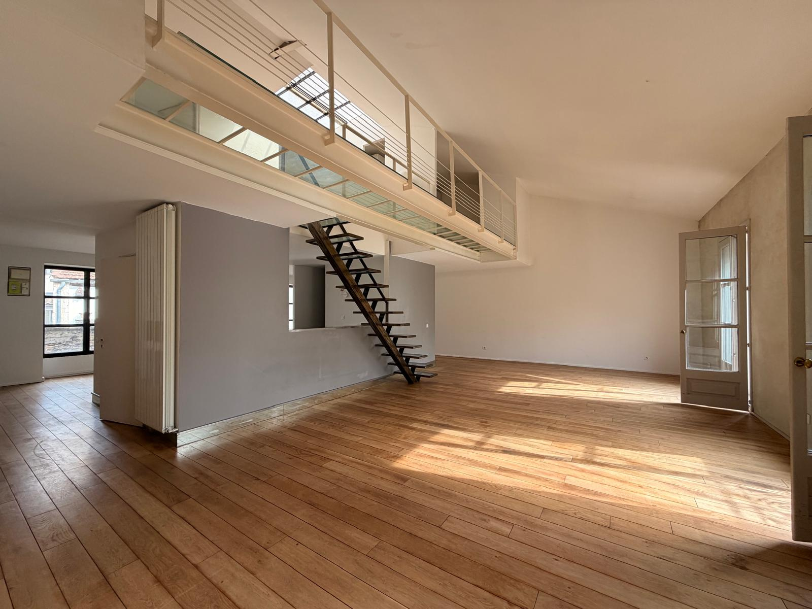 L'appartement s'ouvre ensuite sur un vaste espace de vie de 60 m2, baigné de lumière grâce à de grandes ouvertures et une belle hauteur sous plafond. Une cuisine accompagnée de son cellier, ainsi qu'un WC indépendant complètent ce niveau.