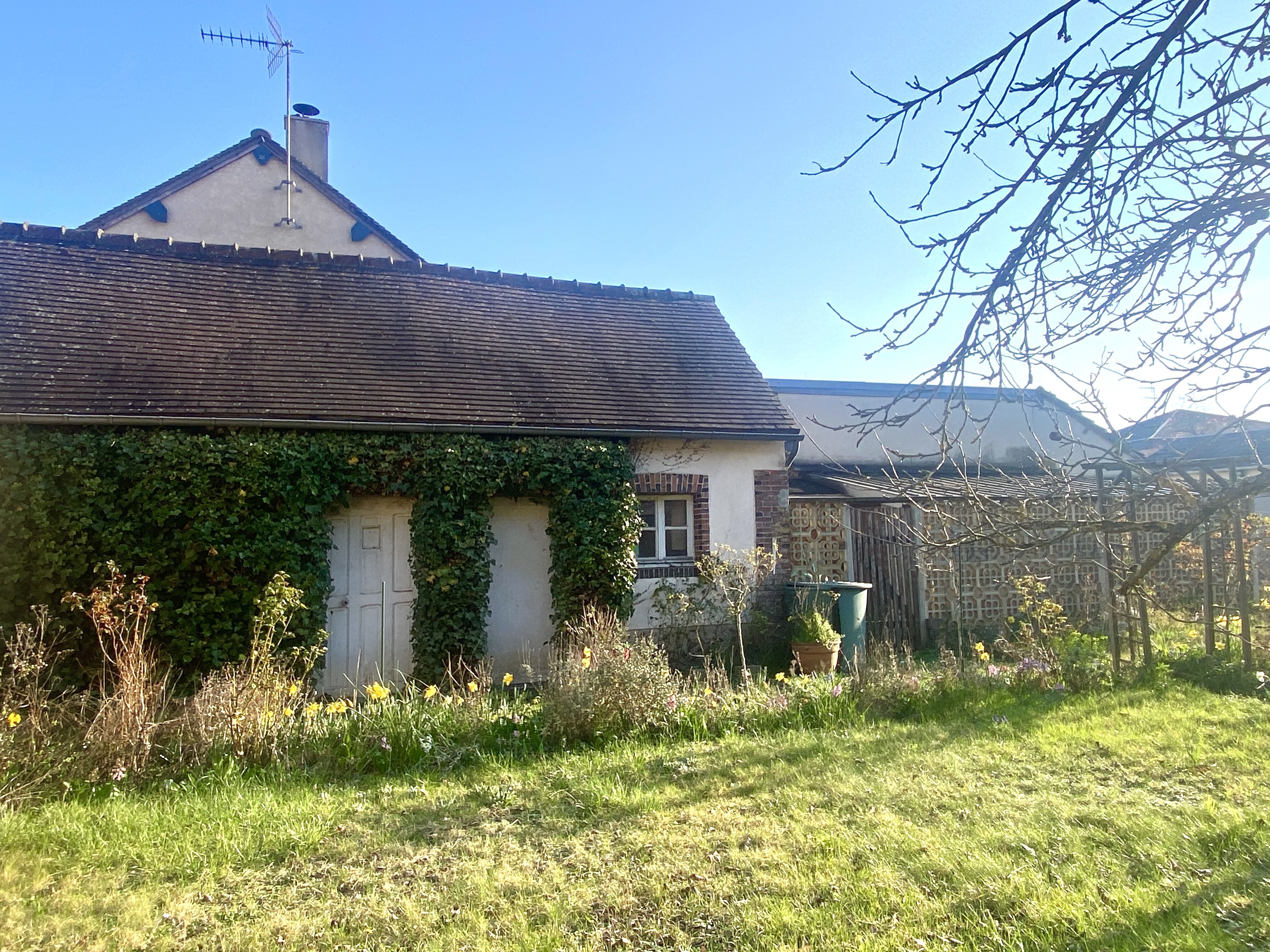 Ensemble immobilier clos de murs : une maison et deux dépendances édifiées sur 458 m² de terrain + un terrain constructible, pouvant être revendu séparément, de 420 m² avec un garage.