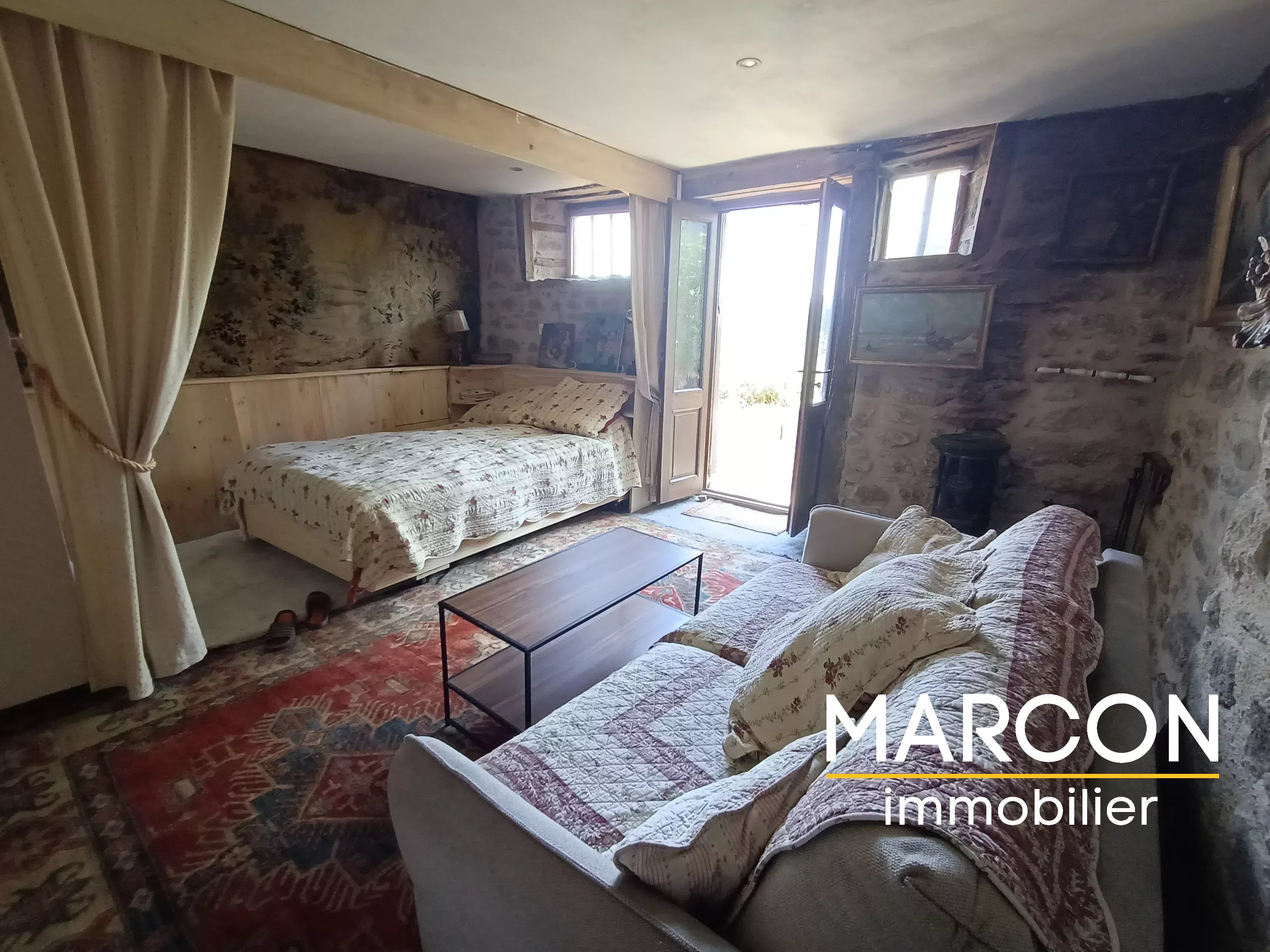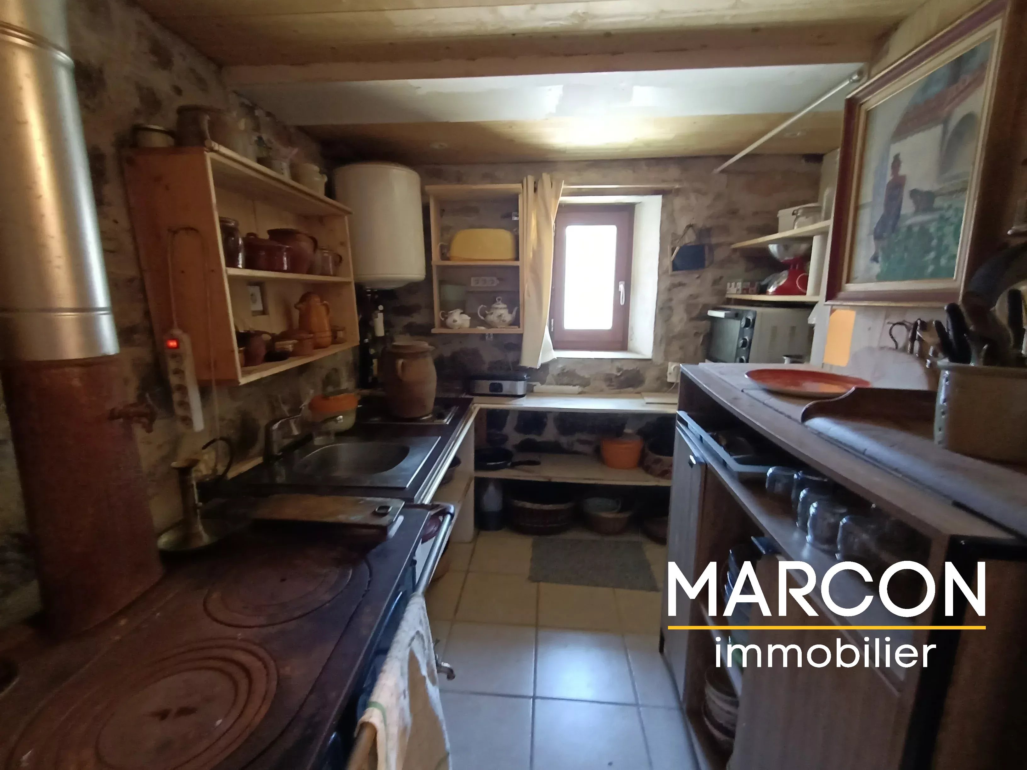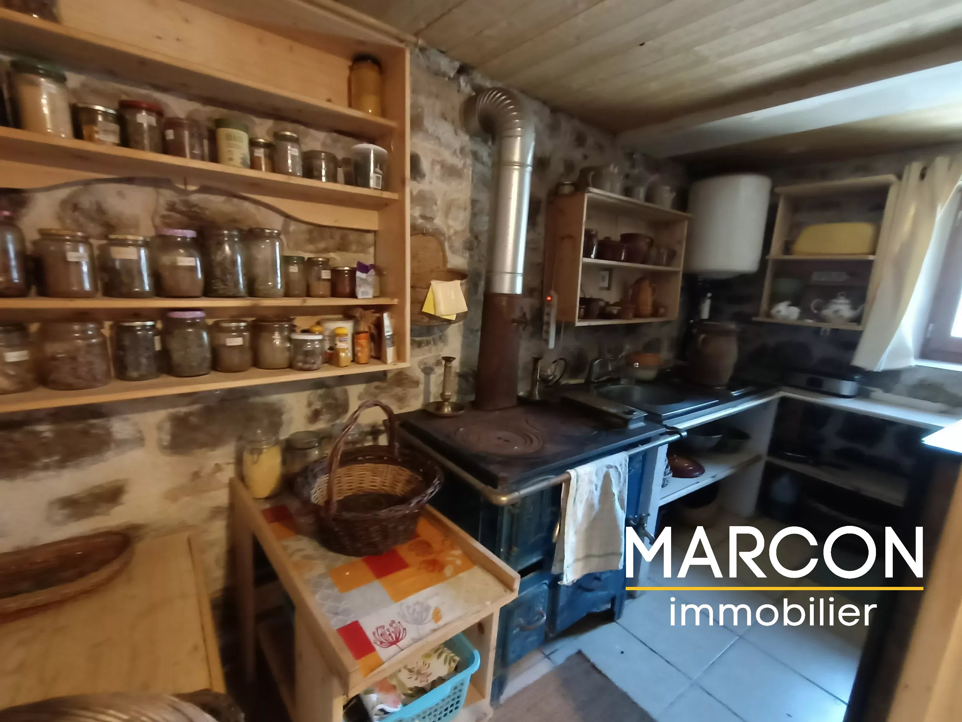 Dès l’entrée, vous serez immédiatement séduit par le charme authentique des lieux. Le rez-de-chaussée, partiellement édifié sur cave, s’ouvre sur une vaste pièce de vie, où se mêlent avec harmonie un salon chaleureux agrémenté d’un poêle à granulés et d’une cheminée ouverte. La spacieuse cuisine, également dotée d’une cheminée, constitue un véritable lieu de convivialité, il y a également une grande chambre, une salle d’eau avec WC, ainsi qu’une buanderie et un cellier.