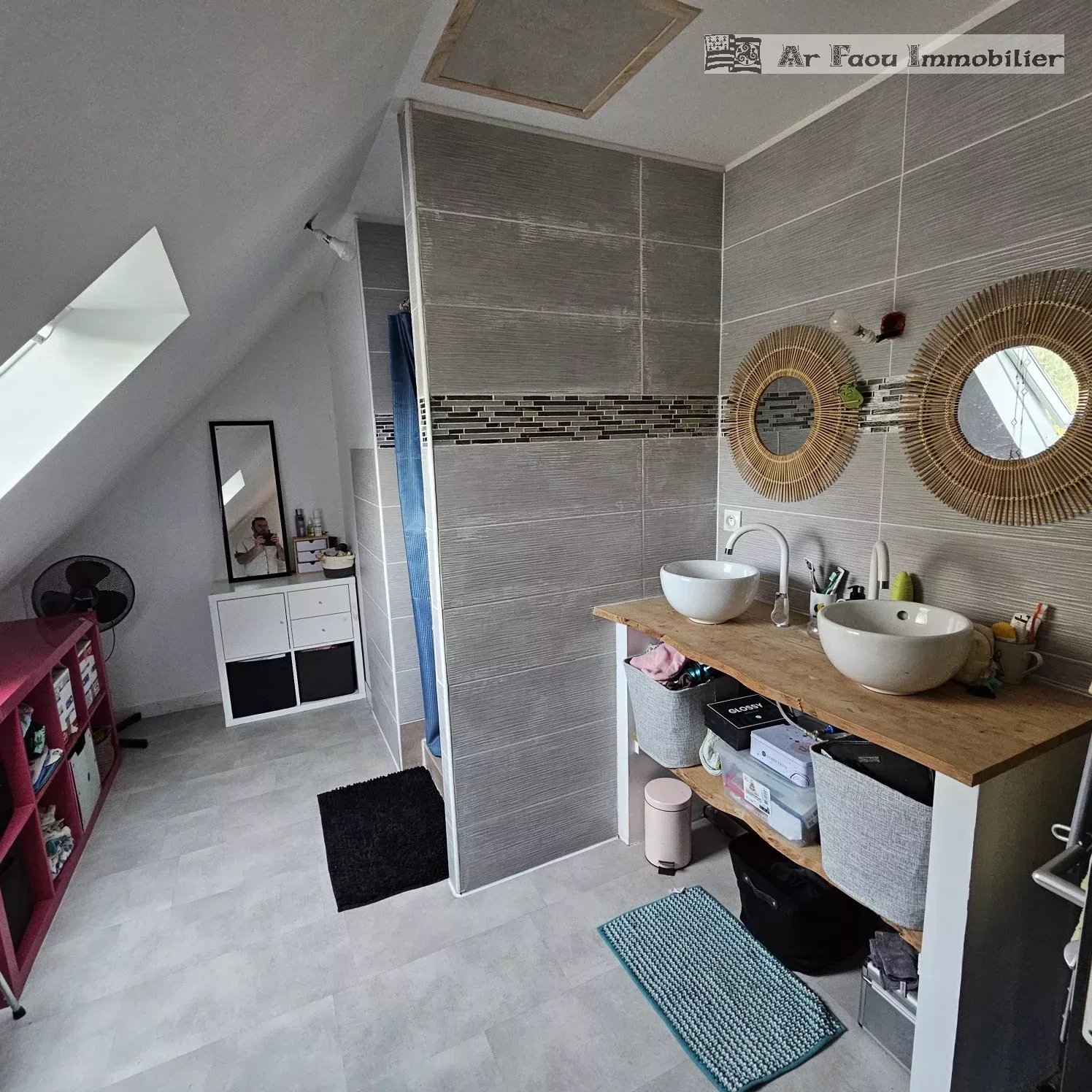 Le rez-de-chaussée dispose également d’une chambre avec sa salle de bains attenante, idéale pour plus de confort au quotidien ou pour accueillir famille et amis, ainsi que d’un garage transformé en buanderie, offrant un espace pratique et fonctionnel.