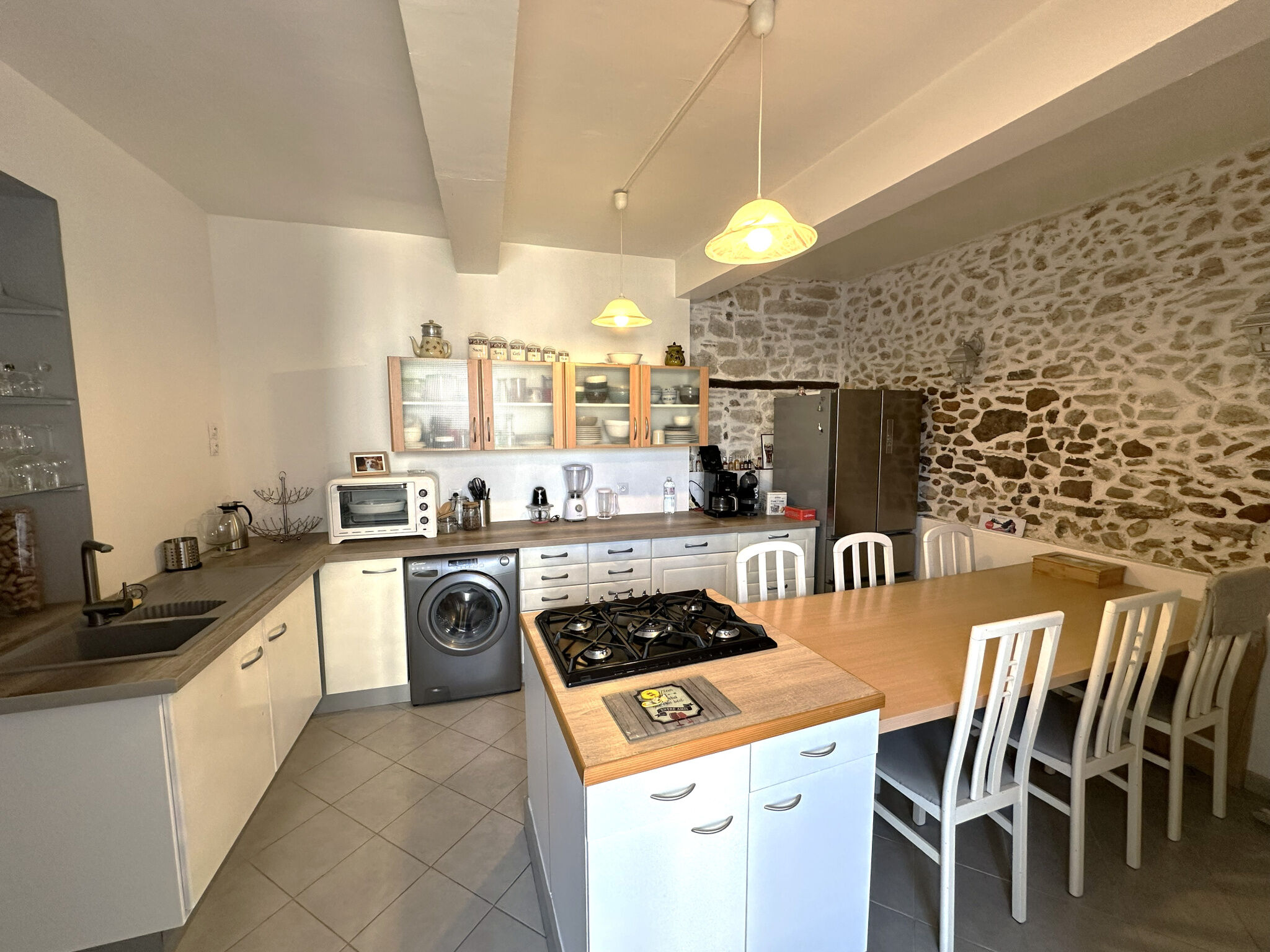 Maison de village d'environ 109 m² ayant bénéficiée d'une rénovation complète avec goût (Façade, menuiserie, isolation, electricité. ) Au rez de chaussée, vous trouverez une belle cuisine conviviale, aménagée et équipée. Elle est sublimée par un superbe mur en pierre apparente, apportant du charme à la pièce. Il y a également un salon d'environ 14 m² et un toilette pour le rdc. Au premier étage, 2 chambres spacieuses d'environ 11,30 m² et 16 m² ainsi qu'une salle d'eau de 2,70 m² avec toilette. Au dernier étage, vous découvrirez un grand espace de vie de 40 m² avec cuisine équipée, idéal pour partager des moments conviviaux ou bien créer un espace de vie indépendant, pour un adolescent par exemple. Au même niveau il y a également un grenier d'environ 20 m² (possibilité de terrasse tropézienne) et un atelier aménagé de 12,83 m². Secteur calme et recherché dans un village dynamique proche du Canal du Midi. Possibilité de se garer devant la maison. N'hésitez plus ! Vous n'avez plus qu'a poser vos valises ! Contactez Lisa au O7 59 62 22 52 pour plus de renseignements. Atouts : - Belle rénovation - Beaux volumes - Possibilité de se garer devant la maison. (gedeon_57149_32907494)