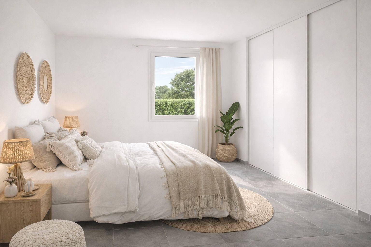 Puis, il dispose de 2 chambres avec placard, situées de chaque côté du séjour et l'une d'elle donne également sur le jardin.