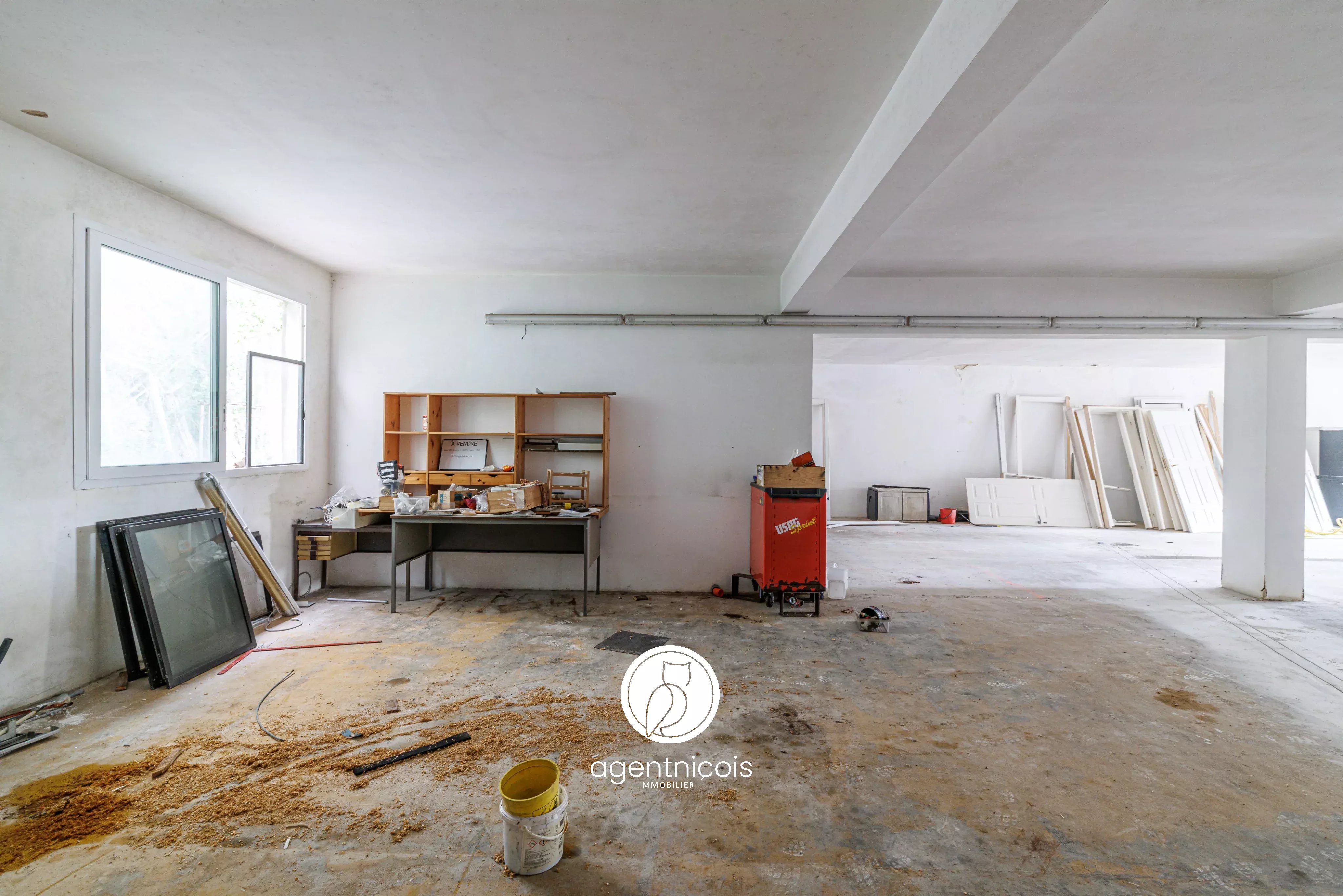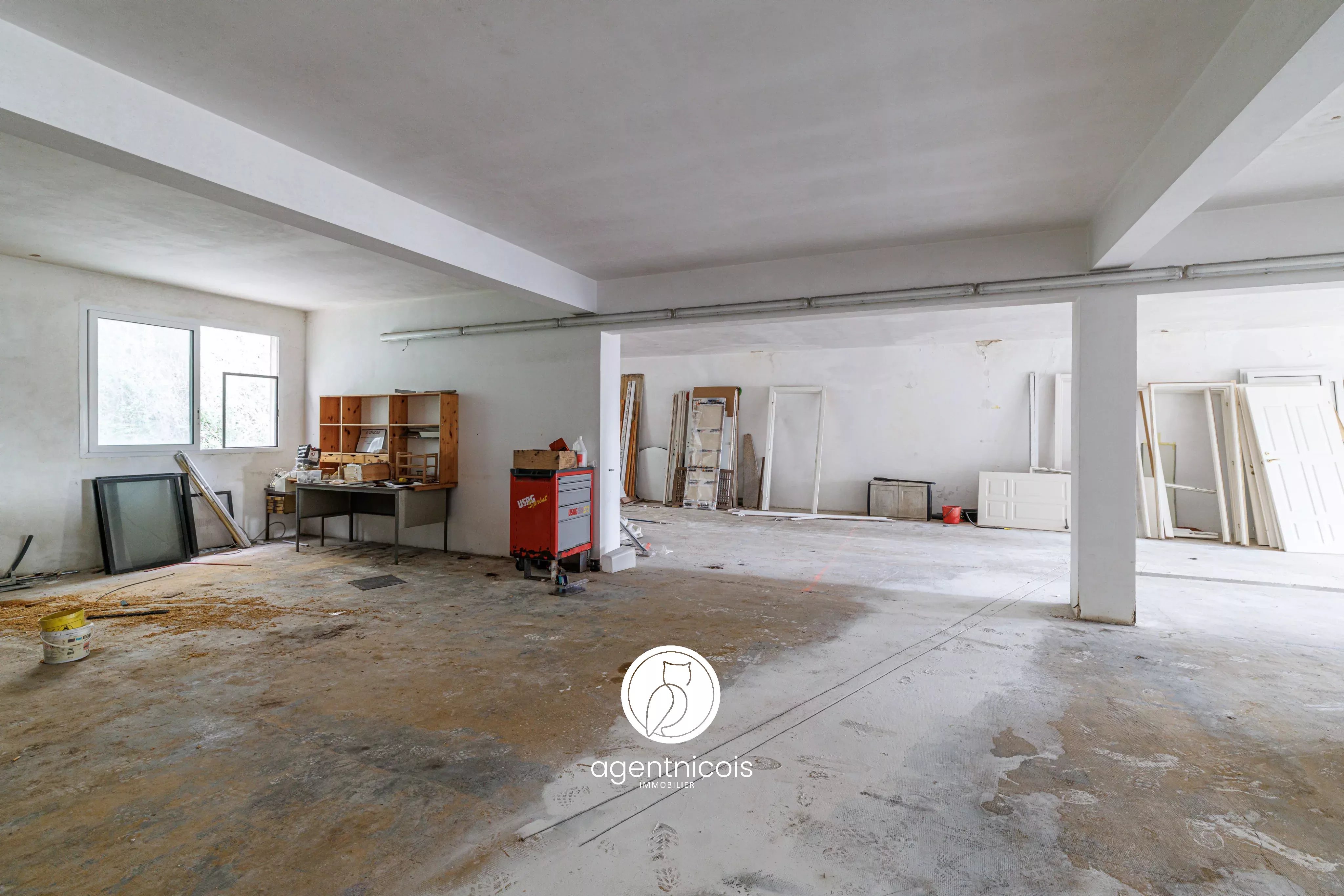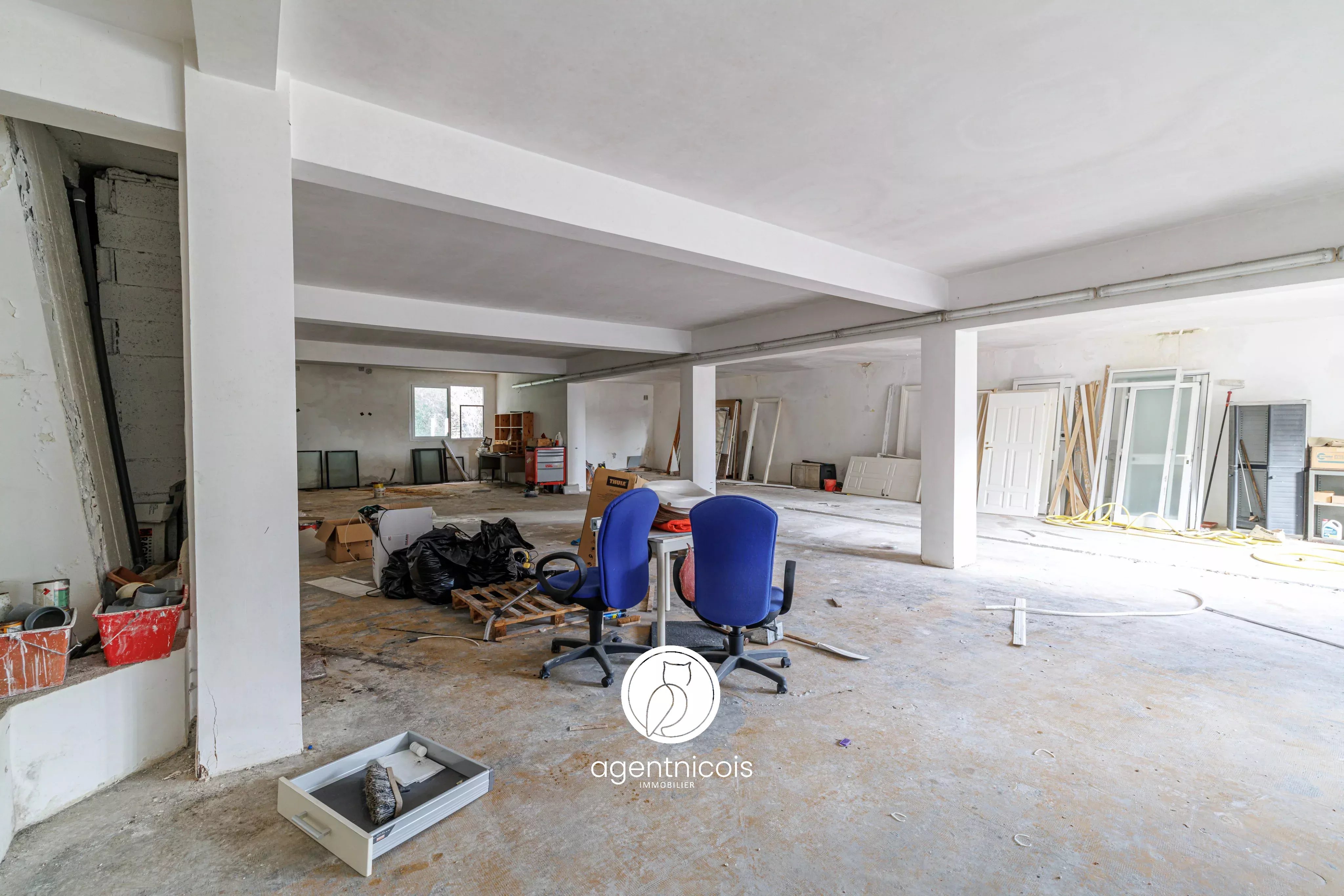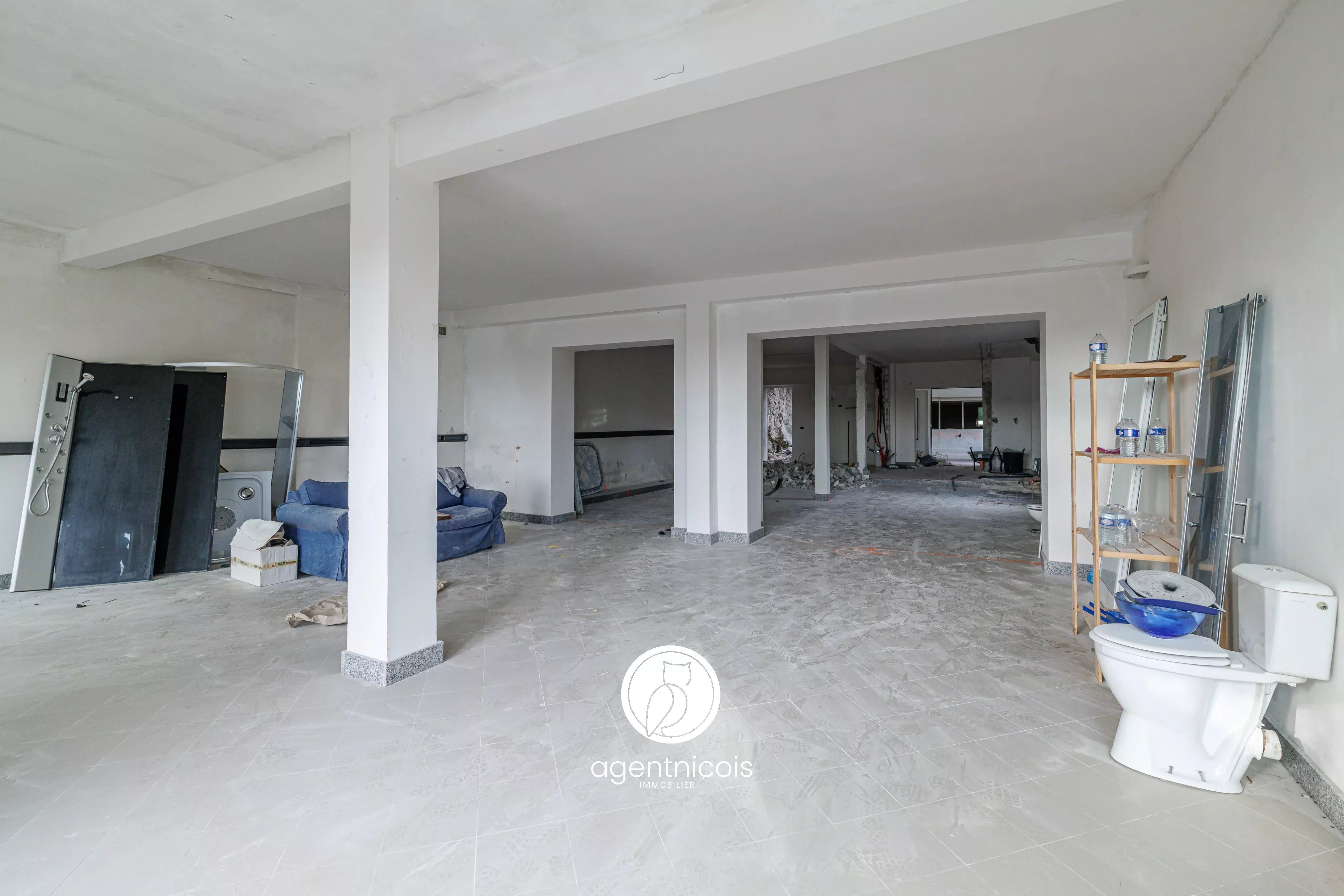 Élevé sur deux niveaux, cet ensemble immobilier développe 430,66 m² de plain-pied au rez-de-chaussée, offrant de vastes espaces ouverts aux volumes généreux, propices à de nombreux aménagements, ainsi qu’une salle d’eau avec WC.