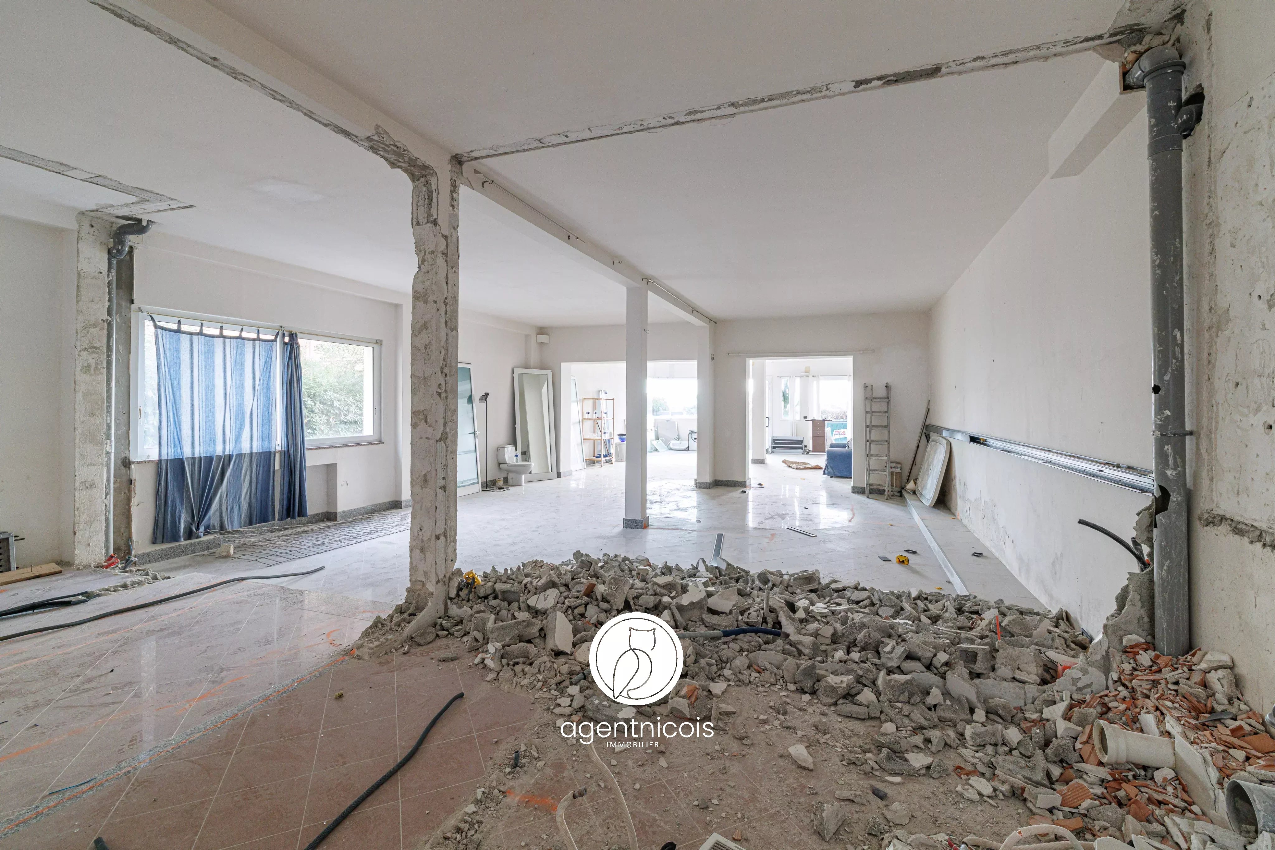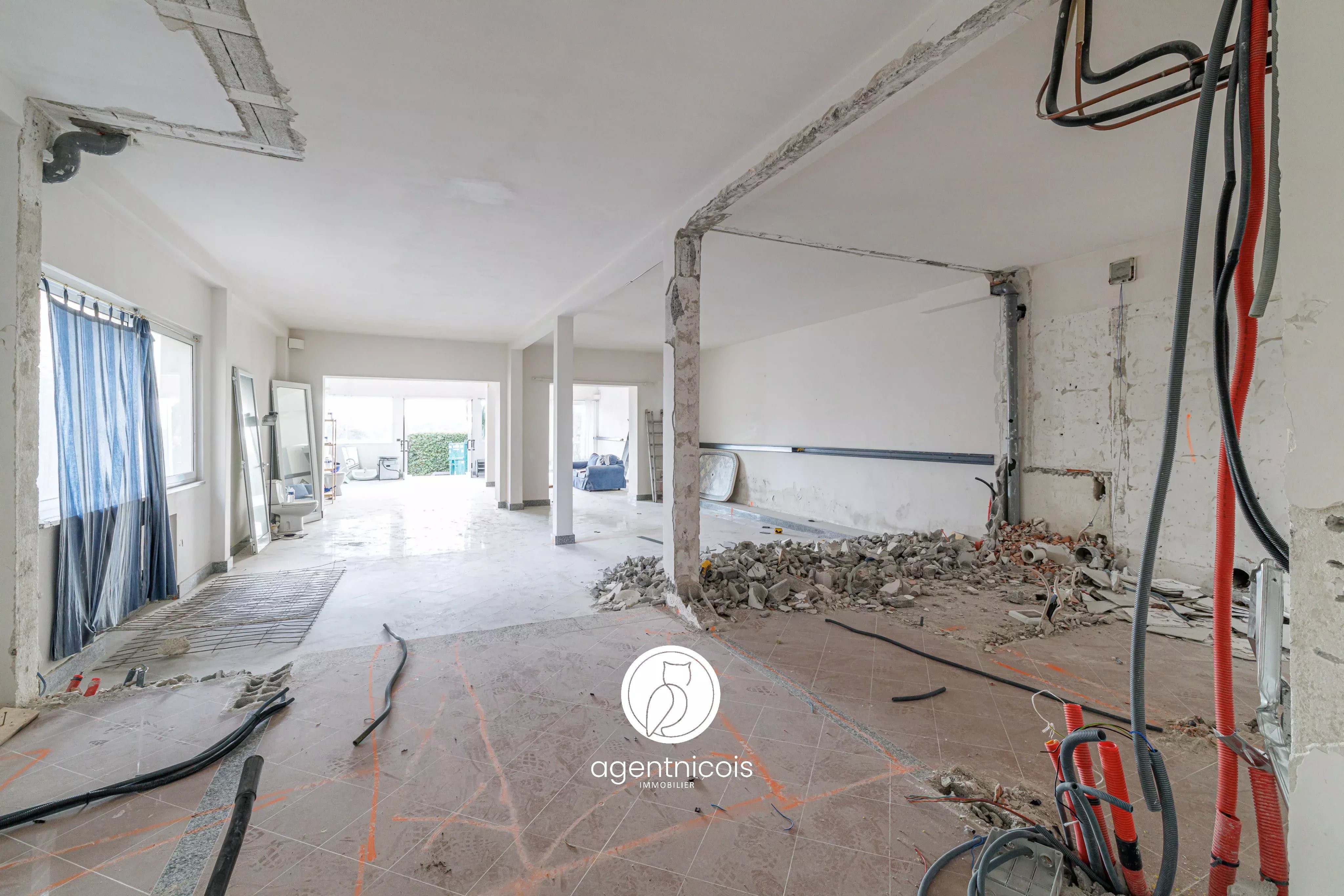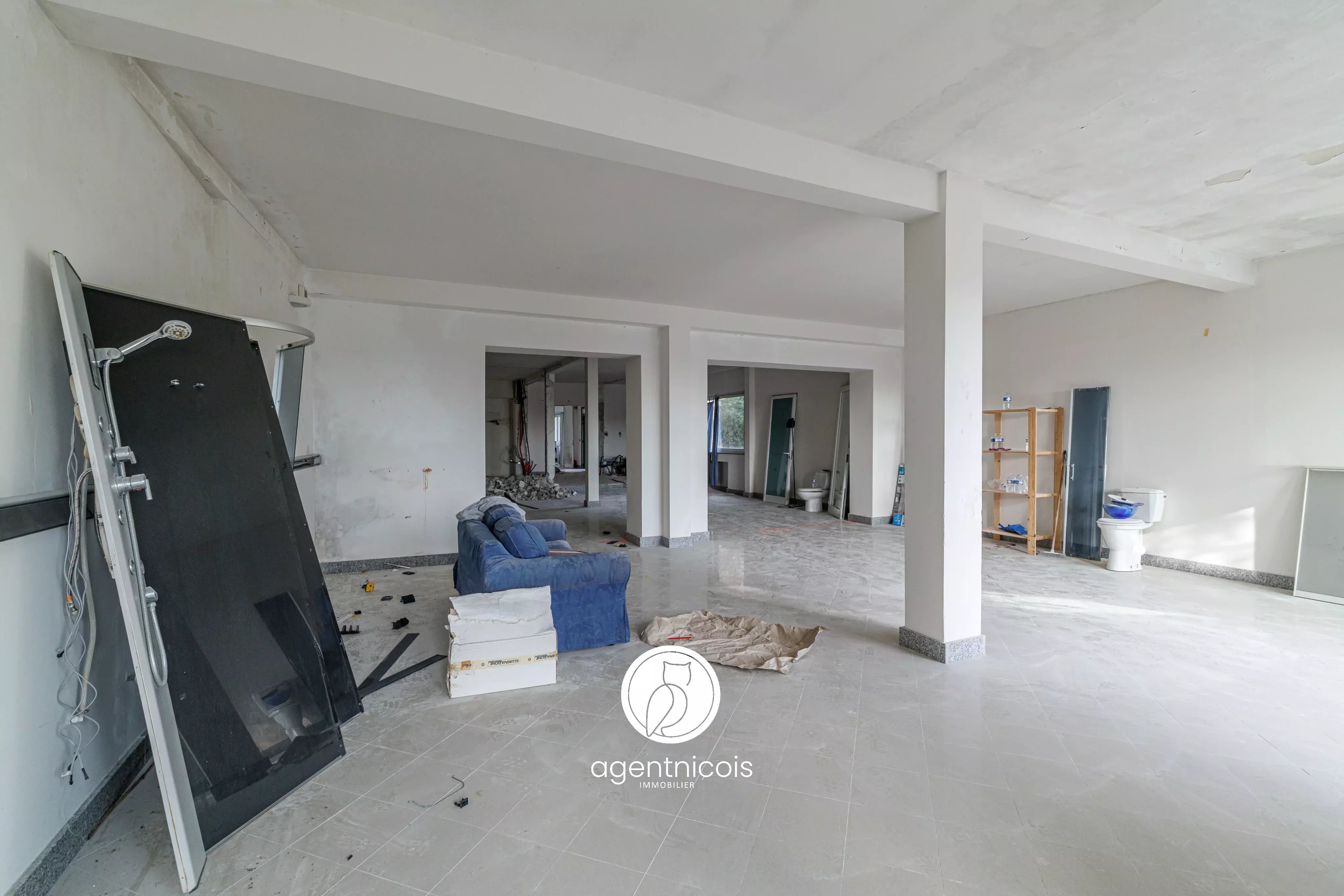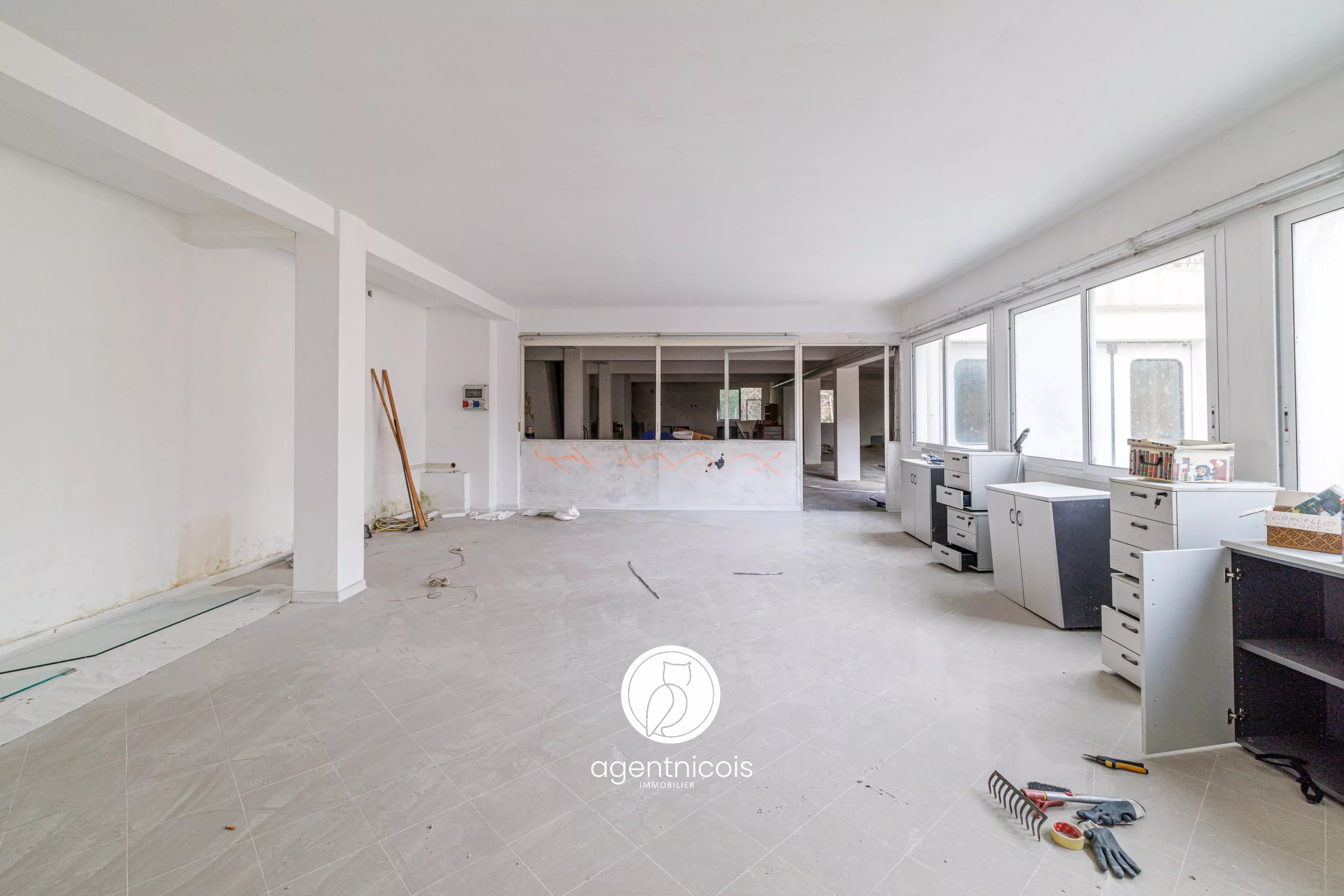 Élevé sur deux niveaux, cet ensemble immobilier développe 430,66 m² de plain-pied au rez-de-chaussée, offrant de vastes espaces ouverts aux volumes généreux, propices à de nombreux aménagements, ainsi qu’une salle d’eau avec WC.
