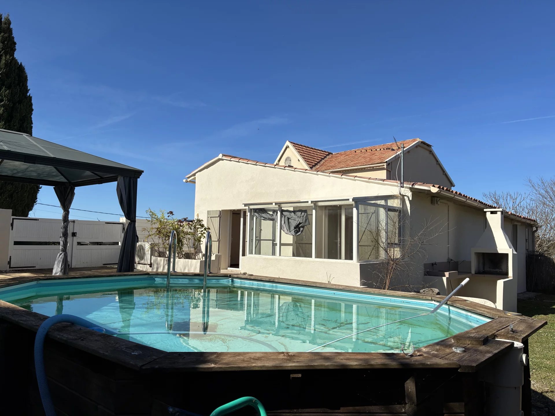 VENELLES AU CALME MAISON DE PLAIN PIED D'ENVIRON 80M2 + VERANDA SUR UNE PARCELLE DE 340M2 AVEC TERRASSE ET PISCINE HORS SOL. COMPRENANT 3 CHAMBRES SEJOUR/CHEMINEE CUISINE BAIN BUANDERIE. BELLE VUE DEGAGEE. 2 PARKINGS PRIVES. Honoraires charge acquéreur. Prix net vendeur : 382000€ Mandat n°1829 Les informations sur les risques auxquels ce bien est exposé sont disponibles sur le site Géorisques : www.georisques.gouv.fr