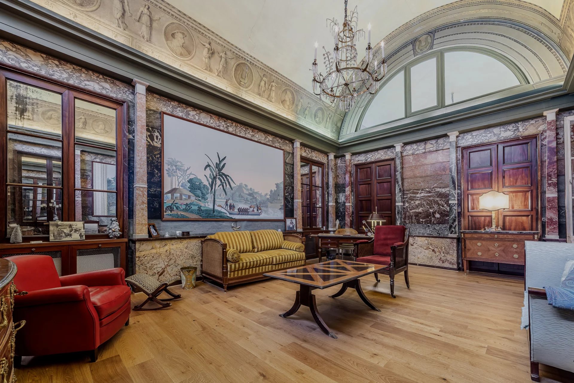 Mais l'âme de ce bien réside dans son séjour unique : l’oratoire, avec sa voûte en berceau du XVIIᵉ siècle, et ses fresques d’origine, classées au titre du patrimoine. Cet espace unique a bénéficié d’une restauration d’exception, sublimée par des marbres rares et des pierres nobles, œuvre du maître-marbrier François Selle.