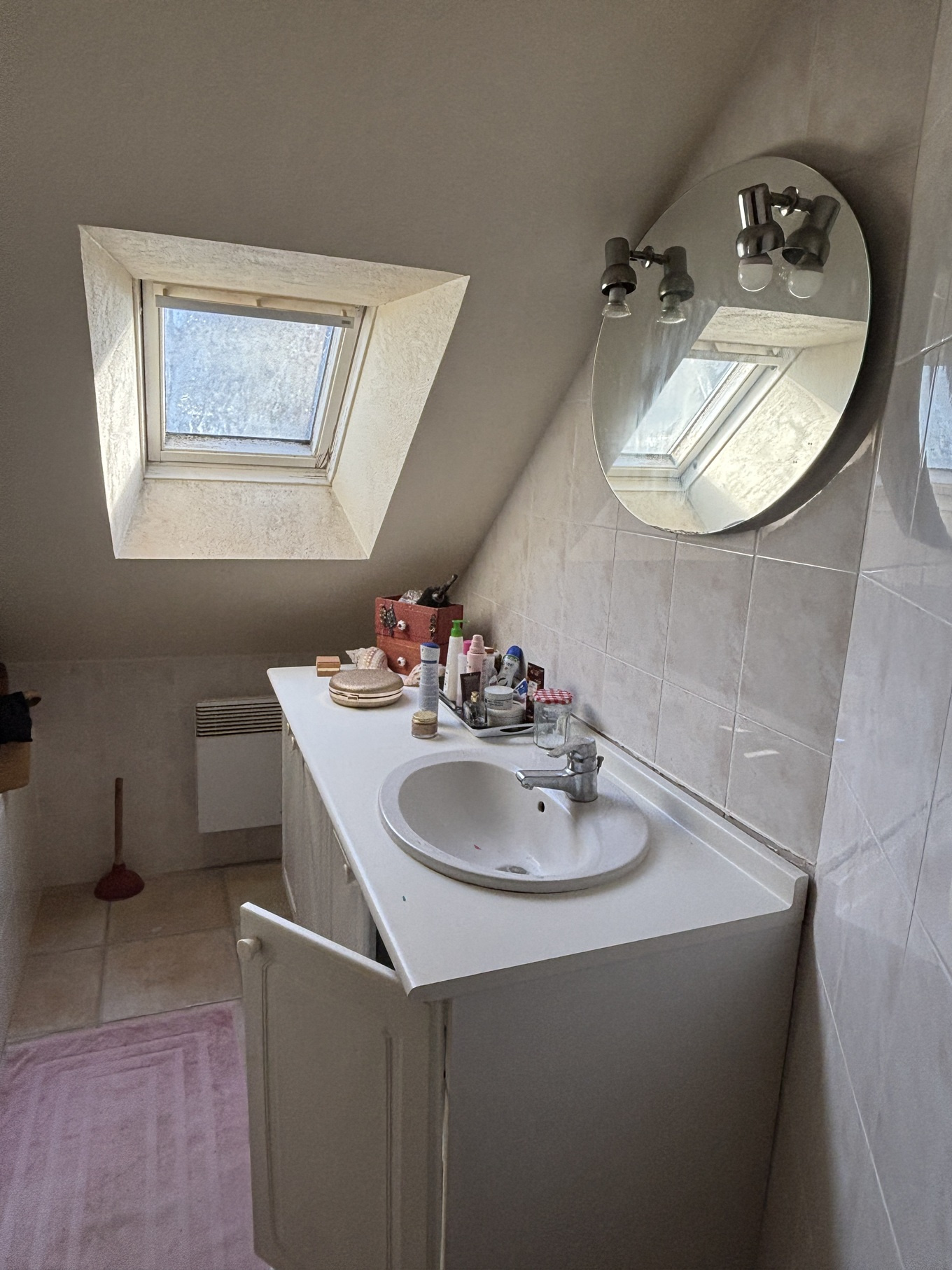 A l'étage : un palier avec placard, 2 chambres, une salle de bains, un wc.