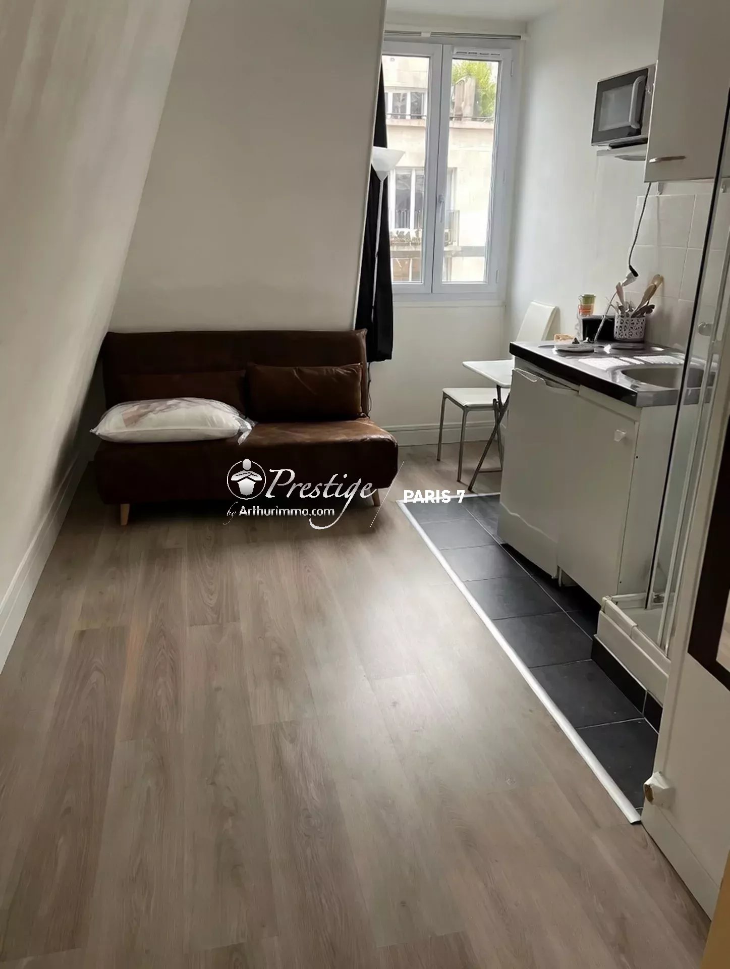 Dans un immeuble entièrement rénové, studette de 9,77 m² au sol (21,44 m³) au 7ème étage avec ascenseur. Kitchenette, douche. Wc sur le palier. Actuellement louée 600 €. Locataire très sérieux en place depuis 2022. A 100 mètres du Métro et du RER Javel. Rentabilité 5,60 %