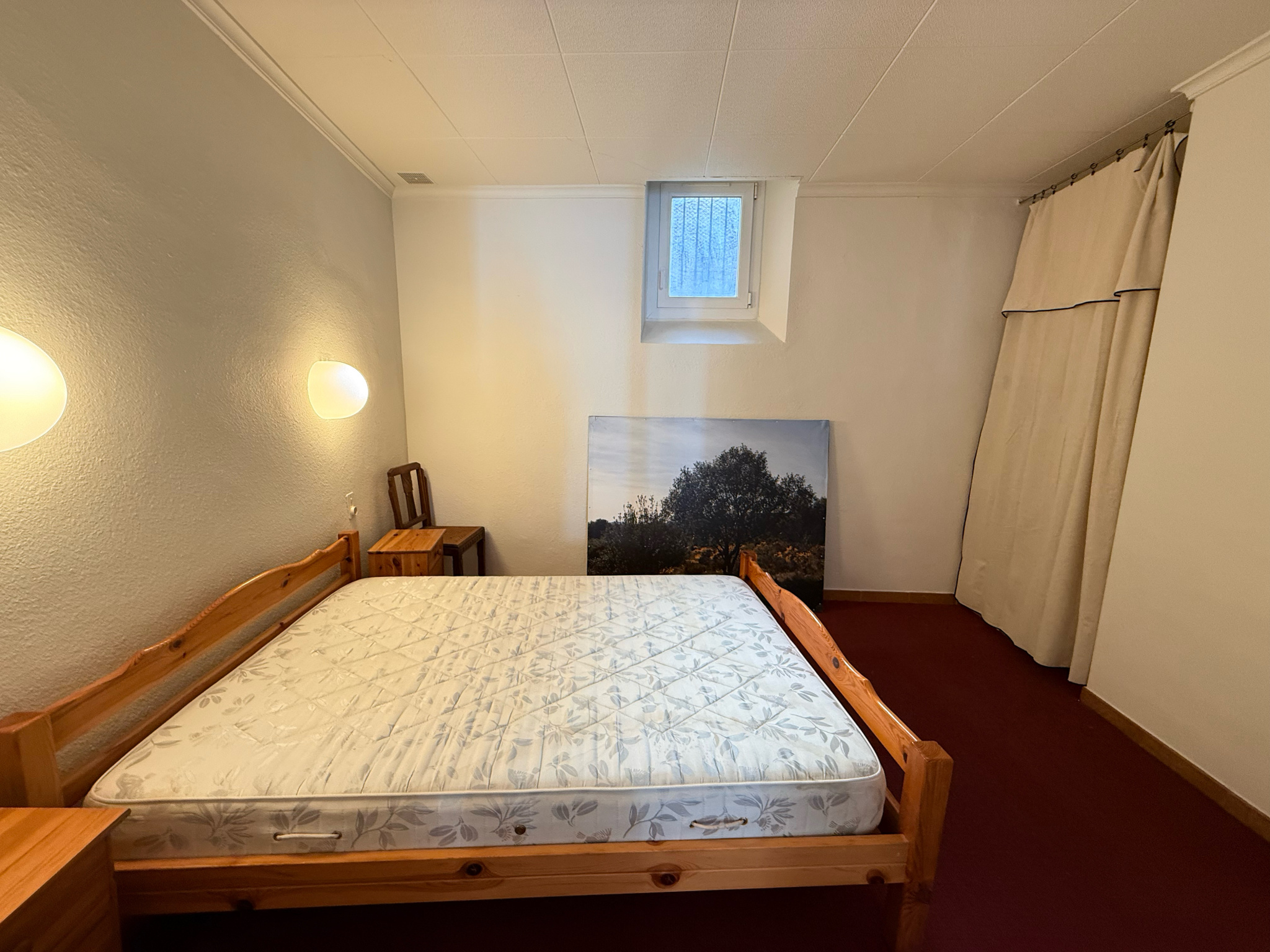 Coin nuit : une chambre avec placard, ainsi qu'une pièce supplémentaire pouvait faire office de bureau ou dressing avec rangement, une salle de bain avec wc et machine à laver.