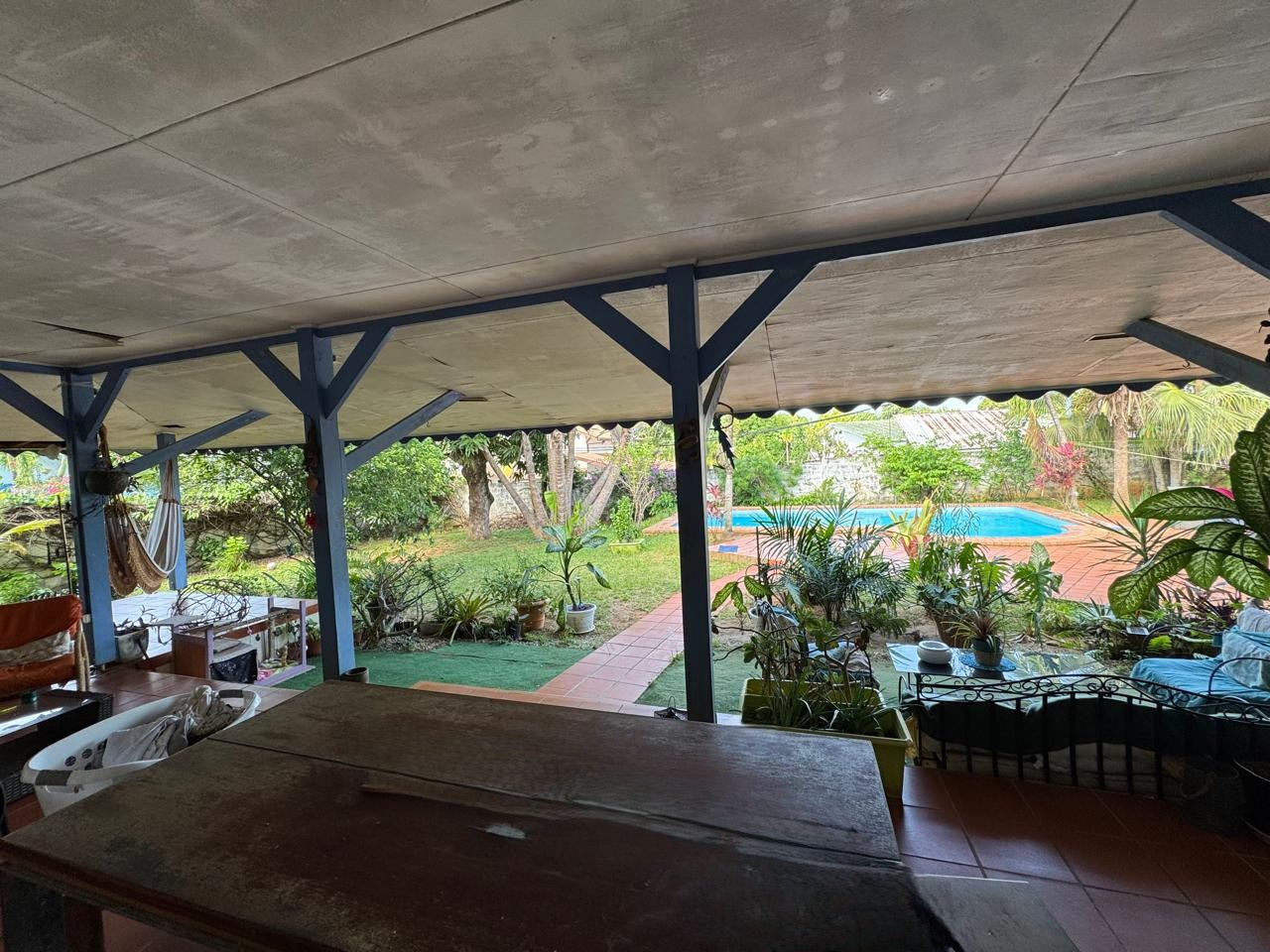 A l'extérieux , profitez d'une grande terasse , une piscine enterrée et d'un carbet de 25 m2, idéal pour vos moments de détente. Garage fermé et terrain agréable complètent ce bien.