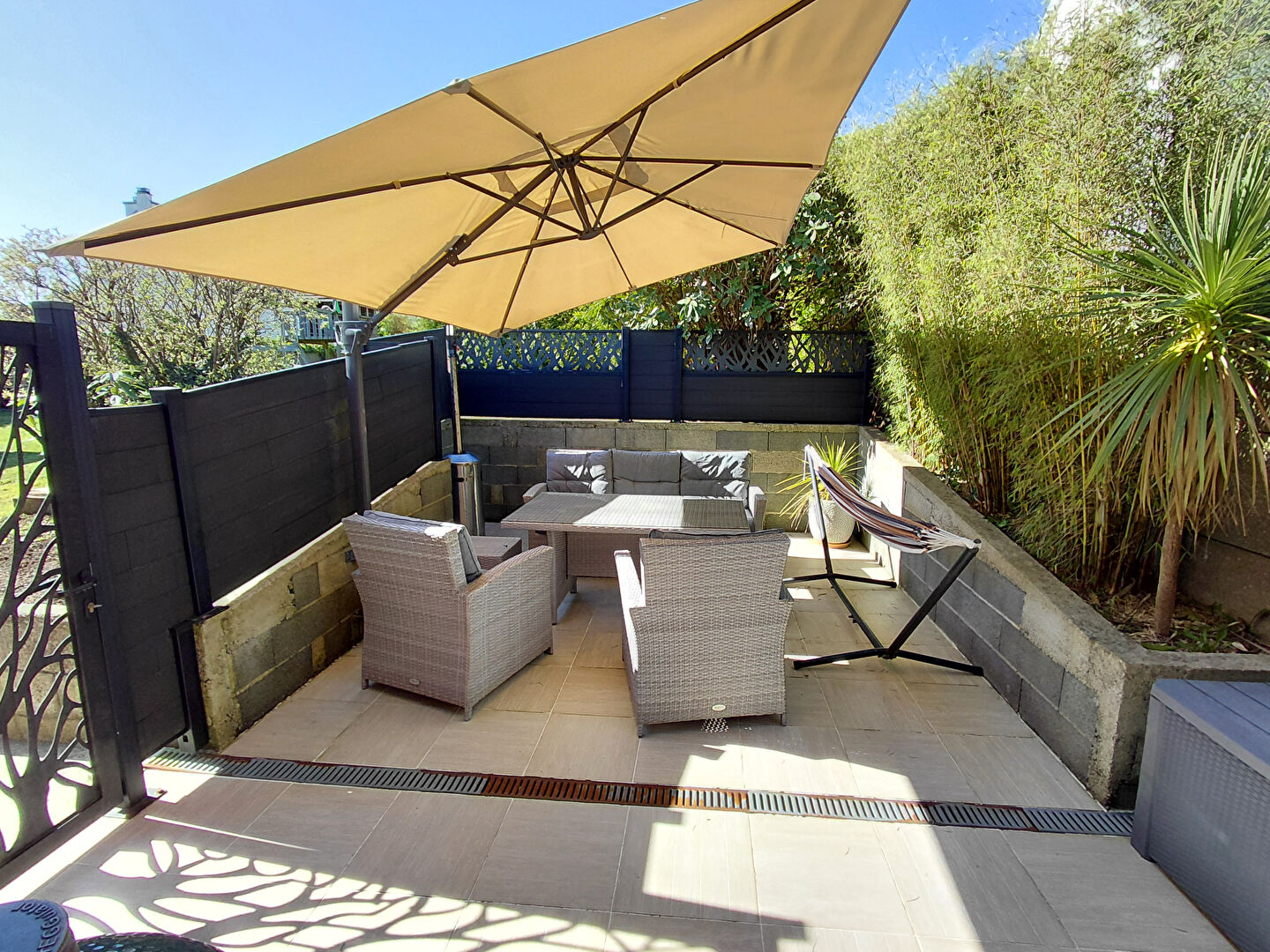 A VENDRE - SAINT MARTIN DES CHAMPS : en impasse, maison rénovée avec beaucoup de goût et des matériaux de qualité. Au rez-de-chaussée : entrée, pièce de vie donnant sur une terrasse exposée ouest, cuisine aménagée équipée ouverte très fonctionnelle, WC. A l'étage : 3 chambres dont 1 avec dressing spacieux, bureau (ou quatrième chambre), lingerie, salle de bains (douche et baignoire), WC et espaces de rangement. Vaste garage comprenant une pièce fermée avec point d'eau. Grenier. Jardin clos avec cabanon. Panneaux solaires permettant une revente d'électricité d'environ 800 euros par an. Pas de travaux à prévoir. . (6.00 % honoraires TTC à la charge de l'acquéreur.)