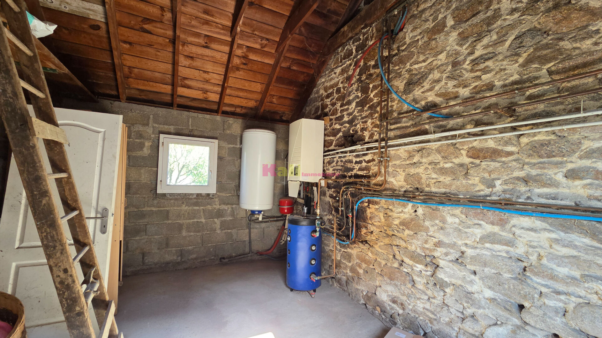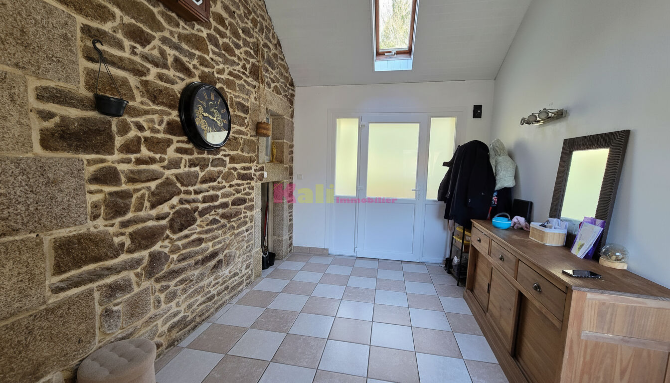 EXCLUSIVITE KALI IMMOBILIER Aux portes de Brest dans un cadre bucolique, nous vous proposons à la vente une maison en pierres atypique, construite sur une belle parcelle . Ce bien rare sur le marché comprend au RDC une vaste entrée, un séjour exposé ouest avec un joli mur en pierres apparentes et un poêle à bois, une mezzanine qui sera idéale en chambre d'amis ou en bureau pour télétravailler. De l'autre côté de l'entrée, on retrouve une cuisine ouverte avec accès sur une cour, un cellier, la chambre parentale avec dressing et une salle de bain spacieuse. L'étage se compose de 2 chambres et d'une une salle d'eau. Au niveau supérieur, sous les combles, une 3ème chambre vient compléter la visite. Les extérieurs se composent d'un cabanon en dur, une cour abritée, un grand garage avec porte automatique, une terrasse exposée ouest et un jardin clos avec portail automatique. Les plus : toiture ardoises récente, fenêtres PVC, pompe à chaleur L'assainissement est raccordable au tout à l'égout. (devis effectué) Beaucoup de cachet et une vie de plain pied pour cette maison. Ref 2633 Plus d'infos sur notre site. Le prix indiqué comprend les honoraires à la charge de l'acquéreur : 5% TTC du prix du bien hors honoraires. Les informations sur les risques auxquels ce bien est exposé sont disponibles sur le site Géorisques : www.georisques.gouv.fr Plus d'infos : Kristell DURAND QUERE 06.71.34.27.60 ou au 02.98.02.60.00 Kali Immobilier, votre agence de proximité à Guipavas Située au coeur de Guipavas, Kali Immobilier vous accompagne dans tous vos projets immobiliers : achat, vente, location, estimation. Grâce à notre parfaite connaissance du marché local et à notre approche personnalisée, nous vous aidons à concrétiser votre projet immobilier en toute sérénité. Que vous cherchiez un appartement à vendre à Guipavas, un appartement à louer ou souhaitiez faire estimer votre bien, notre équipe réactive et à l'écoute met son expertise à votre service. Kali Immobilier Guipavas, c'est l'agence de confiance pour réussir votre projet immobilier dans le Finistère Nord. N° SIREN : 753000405 Carte Pro n° 29012015000002391 délivrée par la CCI de Brest (5.00 % honoraires TTC à la charge de l'acquéreur.)