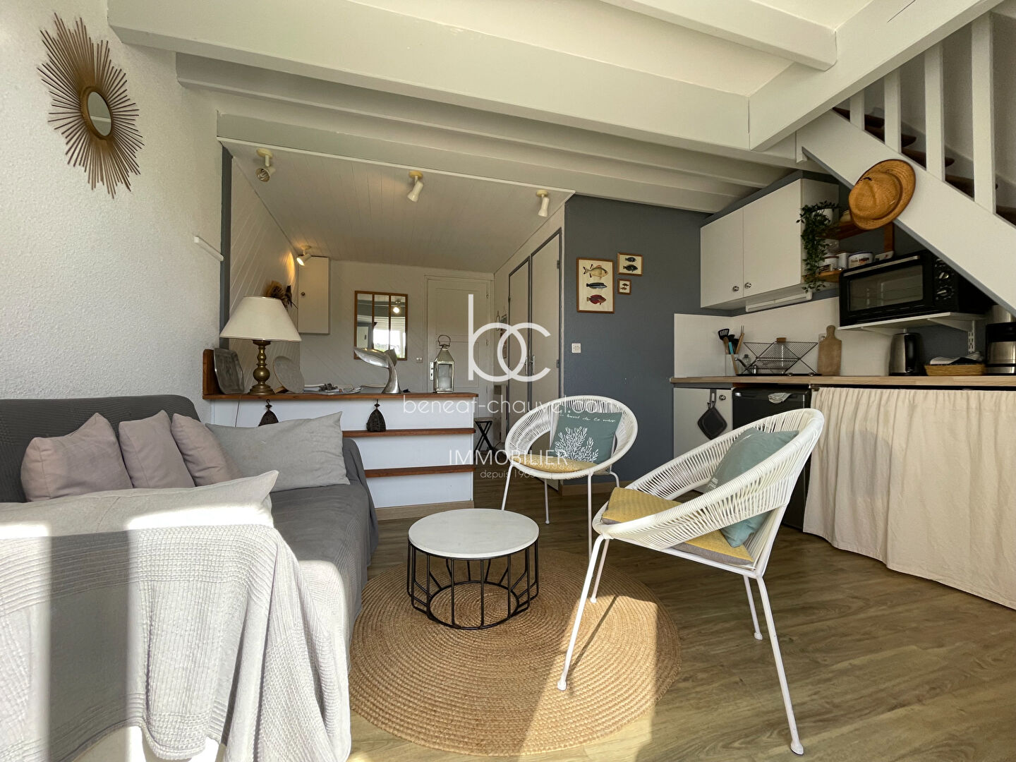 Située au calme dans une résidence sécurisée avec piscine, cette charmante maison de vacances à SARZEAU (56370) bénéficie d'un emplacement exceptionnel à seulement 400 mètres à pied de la plage du Roaliguen. Offrant une ambiance cosy et particulièrement chaleureuse, ce bien est le refuge idéal pour partager des moments privilégiés en famille ou entre amis, tout en profitant des plaisirs de la mer et de la Presqu'île de Rhuys sans contrainte de voiture. Le rez-de-chaussée s'articule autour d'un séjour lumineux avec une kitchenette entièrement aménagée et équipée, le tout s'ouvrant directement sur une agréable terrasse propice à la détente. Ce niveau est complété par une salle de bains, un WC indépendant et un cellier pratique pour le stockage de vos équipements de plage. A l'étage, l'espace nuit se compose de deux chambres confortables. L'atout majeur de cette propriété reste son jardin privatif clos exposé plein sud, garantissant un ensoleillement optimal tout au long de la journée pour vos déjeuners et moments de repos au grand air. Le plaisir d'une piscine chauffée et le sable fin à moins de 5 minutes à pied : succombez au charme de cette maison cosy idéalement située au Roaliguen à SARZEAU ! Très bon rendement locatif saisonnier ! Prix FAI : 233 200 euros dont 6.00 % honoraires TTC à la charge de l'acquéreur.