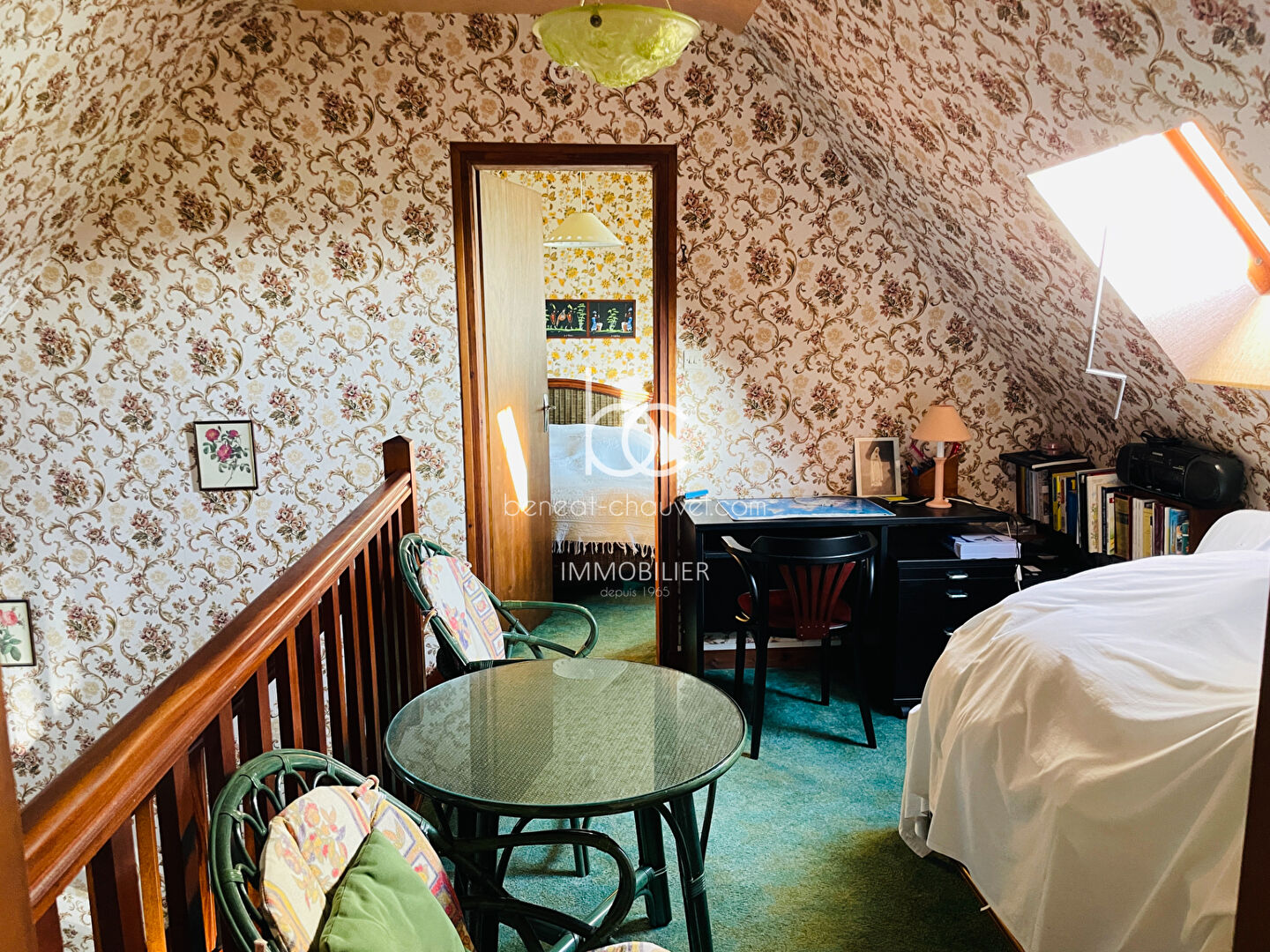 Le Cabinet Bénéat-Chauvel vous invite à découvrir cette grande maison d'habitation nichée dans un environnement calme et verdoyant, à seulement 1800 mètres de la plage. Édifiée sur un vaste terrain arboré de 1400 m², cette propriété se distingue par ses volumes généreux et sa configuration atypique, offrant de multiples possibilités d'aménagement pour une grande famille ou pour recevoir des proches en toute indépendance. L'habitation principale s'ouvre sur une entrée desservant un salon-séjour chaleureux, une cuisine fonctionnelle. Véritable trait d'union entre les espaces, une magnifique véranda vitrée exposée plein SUD baigne la maison de lumière et donne accès à une vaste extension. Cette dernière propose un second salon surélevé, un coin cuisine, trois chambres et une salle d'eau privative avec wc. A l'étage de la partie initiale, une mezzanine surplombe l'ensemble, ainsi que deux chambres avec placards. De l'espace, de la lumière et un jardin d'exception : laissez-vous séduire par cette propriété aux volumes rares, située dans un écrin de verdure à SARZEAU ! Prix FAI : 399 000 euros dont 5.00 % honoraires TTC à la charge de l'acquéreur.