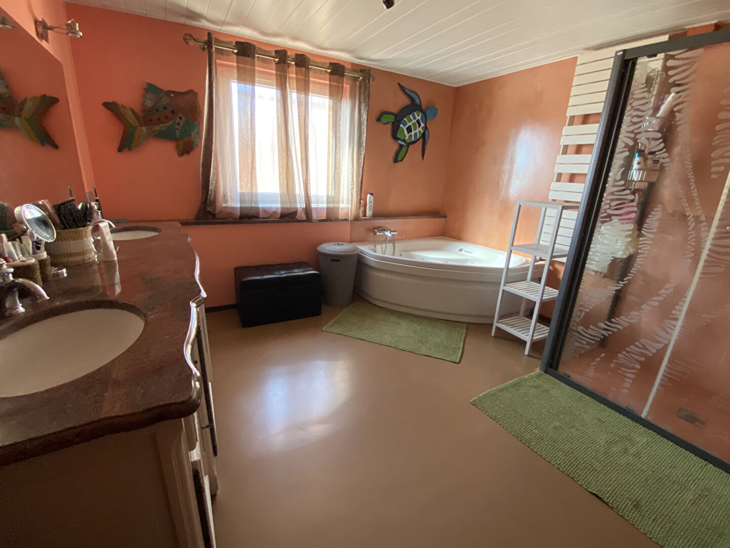 Laissez vous séduire par cette somptueuse ferme bressane de 1780, entièrement rénovée avec goût et offrant des prestations irréprochables. Dès l'entrée, vous découvrirez un salon chaleureux, agrémenté d'une cheminée, un séjour sublimé par un magnifique plafond cathédrale (accès direct à l'extérieur) tandis que la cuisine spacieuse et entièrement équipée ravira les amateurs de convivialité. La propriété dispose de quatre chambres dont une en RDC ainsi qu'un étage distribuant trois belles chambres. A l'extérieur, sur un terrain d'environ 3 000 m², profitez d'un cadre exceptionnel avec piscine couverte d'un dôme et terrain de pétanque pour des moments inoubliables entre amis. Garage chauffé de 47 m². Un bien rare , en état impeccable, où charme de l'ancien et confort moderne s'unissent à la perfection. AGENCE IMOGROUP : 03 85 32 18 19