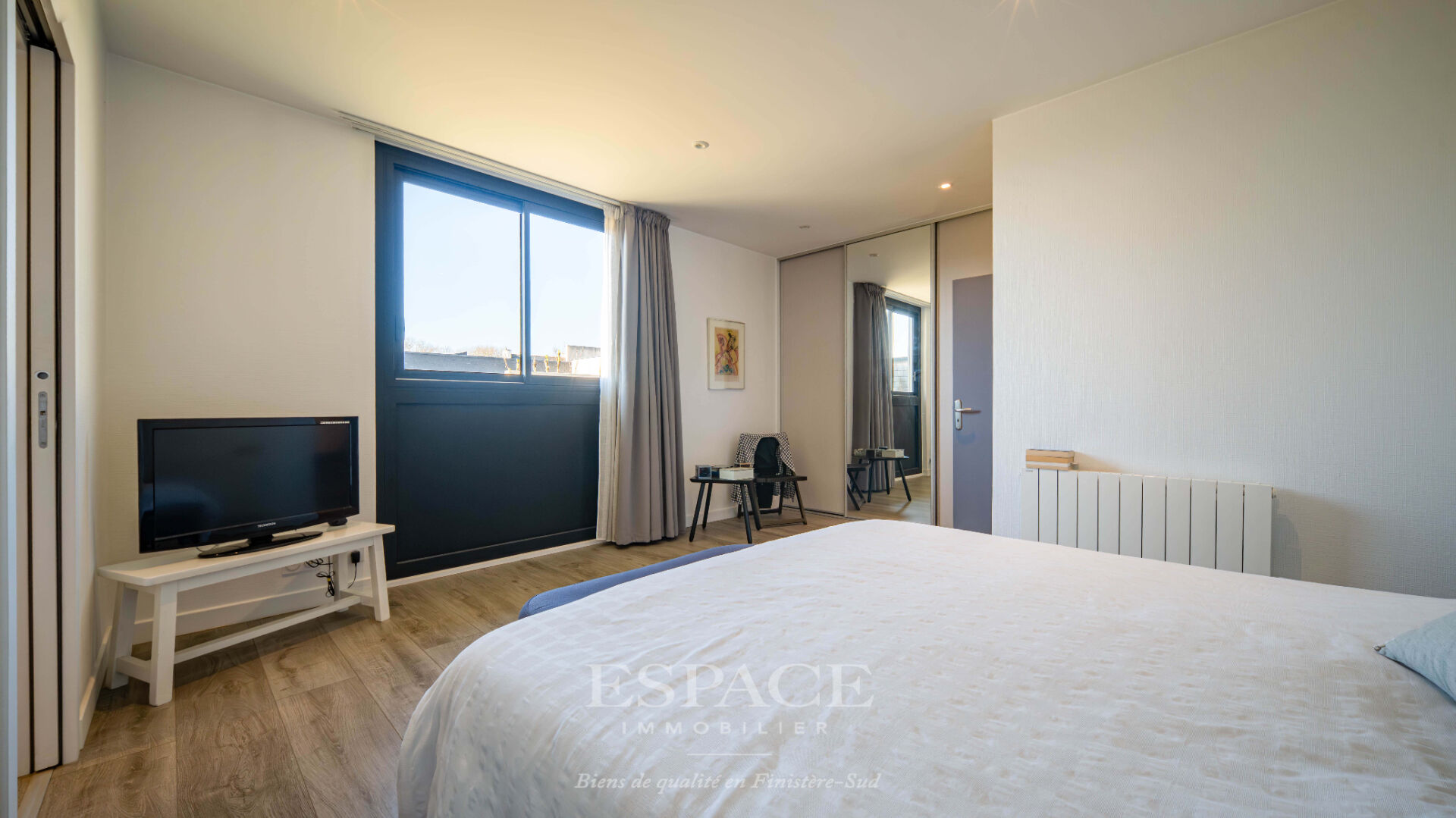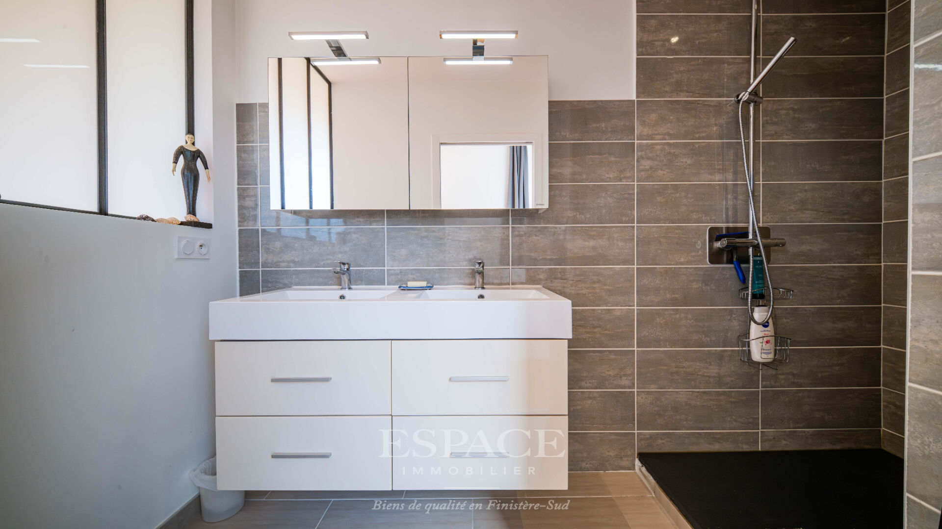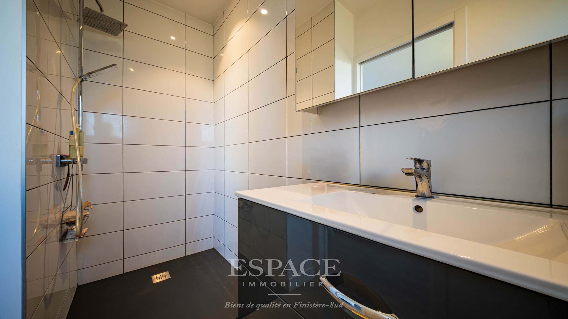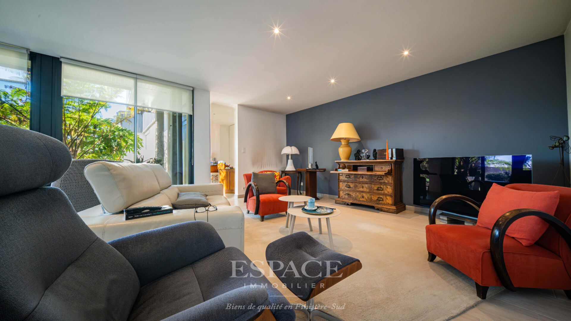 Située à pied du centre-ville de Concarneau et à l'abri des regards, cette maison entièrement de plain-pied développe une surface habitable de 156 m². Elle s'organise autour d'une pièce de vie de 71 m², ouverte sur un jardin ensoleillé et préservé de tout vis-à-vis, grâce à de larges baies vitrées qui prolongent naturellement les espaces de vie vers l'extérieur. La cuisine ouverte et entièrement équipée s'inscrit dans une atmosphère conviviale et contemporaine. La partie nuit se compose de deux chambres confortables, chacune disposant de sa salle de douche privative, garantissant confort et indépendance. Un espace bureau ainsi qu'un cellier viennent compléter l'ensemble. Ce bien se distingue enfin par un garage / atelier exceptionnel de 160 m², bénéficiant d'une belle hauteur sous plafond et offrant un potentiel rare pour une activité artisanale, du stockage, une collection de véhicules ou encore des projets professionnels. Par sa situation recherchée, ses volumes généreux et la singularité de son garage / atelier, ce bien constitue une opportunité rare sur le marché concarnois, à découvrir en exclusivité avec l'agence ESPACE IMMOBILIER, spécialiste des belles maisons et des beaux appartements en Finistère Sud. Les diagnostics immobiliers sont en cours de réalisation. Les informations sur les risques auxquels ce bien est exposé sont disponibles sur le site Géorisques : www.georisques.gouv.fr. (3.87 % honoraires TTC à la charge de l'acquéreur.)