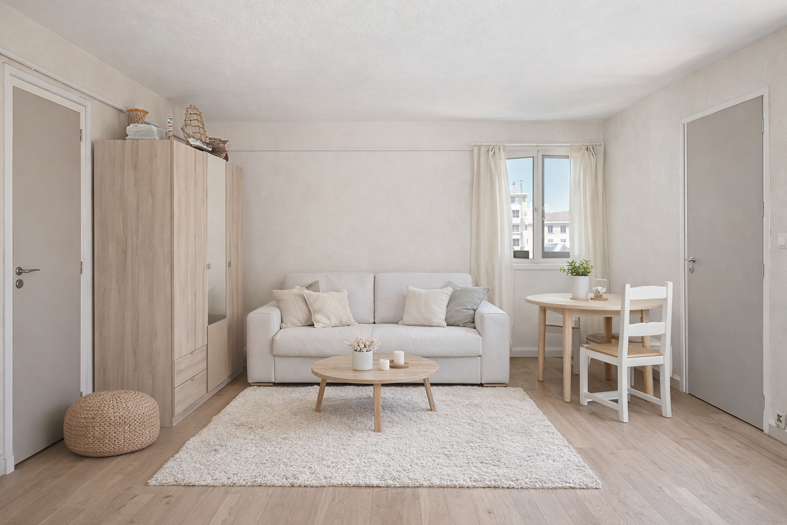En exclusivité Aixty Marseille vous propose: Primo-accédants ou investisseurs -> Studio au 5eme étage sur 6, avec balcon Marseille 5e, de l'église Saint pierre. Vue dégagée et appartement très lumineux. à proximité de la Timone également. A 10 mins de la Blancarde et à 1mim du tramway, venez découvrir ce studio de 29.5 m² d'une résidence semi récente, avec ascenseur. Immeuble des année 60' Parfait pour un étudiant, environnement calme et familiale. Profitez de nos propositions d'aménagement virtuelles. L'appartement, exposé plein est, est très lumineux et fonctionnel: cuisine séparé du salon qui donne tous les deux sur la place Pol Lapeyre, avec un balcon filant de 7 m2, vue complètement dégagée. L'espace douche est séparé du WC et de la pièce principal A retenir sur ce bien: Oui, il est lumineux et loué pour le moment mais un congés pour vente pourra être donné. Oui, il est exposé Est. Non, il n'y a pas de stationnement, Oui il y a une ascenseur. Oui , il est loué actuellement, sortie du locataire possible 09/2027 Loyer actuel: 535 euros CC. Sont compris dans les charges : eau froide / ménage partie communes/ ascenseur Charges mensuelles: environ 125 euros Informations techniques : Pas de DPE Estimation des dépenses d'énergie : xxx Taxe foncière : 972 euros Copropriété : petite copropriété, prochaine AG 30/03/2026. Prix de vente : 100 000 euros Honoraires à la charge du vendeur RCS : 982 785 834 Marseille Les informations sur les risques auxquels ce bien est exposé sont disponibles sur le site Géorisques : www.georisques.gouv.fr Retrouvez toutes les photos, le descriptif détaillé et les infos quartier sur www.aixty.com Copropriété de 12 lots.