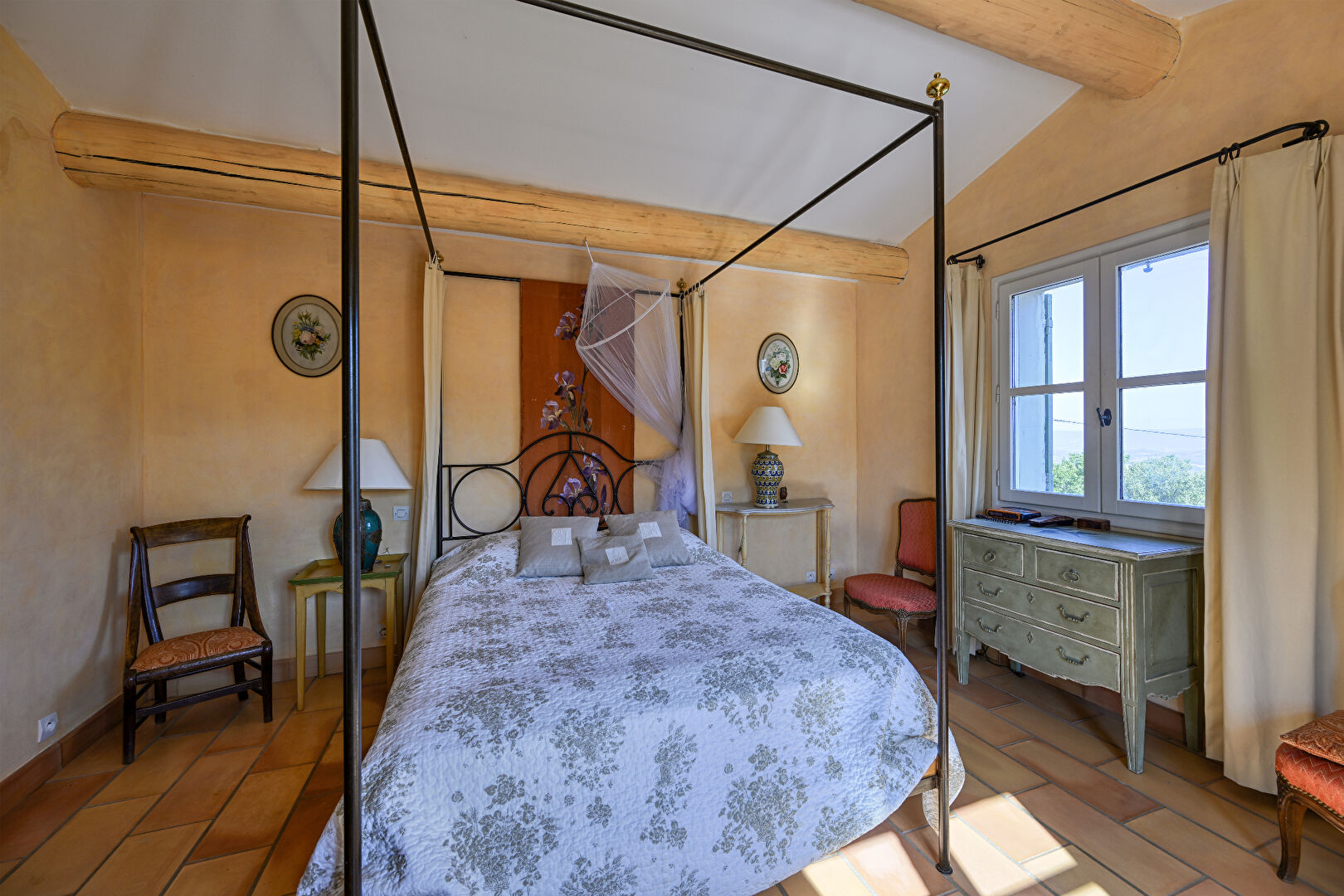 A cinq minutes seulement du village de Bonnieux, au coeur du quartier prisé du plateau des Claparèdes, cette demeure rare s'élève sur les hauteurs, offrant un panorama exceptionnel et une atmosphère paisible. Le terrain arboré, ponctué de restanques et murets typiques du Luberon, enveloppe la maison d'un écrin de charme et d'authenticité. La maison s'ouvre sur une pièce de vie baignée de lumière, où la cuisine ouverte invite à la convivialité. Autour, les terrasses se déploient quasiment tout autour de la maison, créant autant de petits refuges intimes pour le petit-déjeuner au soleil, le déjeuner à l'ombre ou la simple contemplation. Une superbe terrasse en travertin sous auvent s'ouvre sur la piscine à débordement, véritable invitation à la douceur de vivre, face à un horizon d'exception. Le salon, avec sa cheminée et ses hauteurs sous plafond majestueuses, s'ouvre sur une terrasse dominant la chênaie, un lieu propice à la lecture ou à la méditation. Le bureau, délicatement décoré dans un style marocain, offre la possibilité d'une chambre supplémentaire pleine de caractère. Un espace aujourd'hui dédié à la buanderie et arrière-cuisine, qui fut autrefois un petit studio, peut aisément retrouver sa vocation d'origine et se transformer en une suite indépendante avec terrasse privée, offrant une perspective d'aménagement séduisante. A l'étage, trois chambres élégantes dévoilent chacune une vue différente et magnifique, accompagnées d'une salle de bain et d'une salle d'eau. L'une d'elles bénéficie d'une terrasse privative avec vue panoramique sur le Mont Ventoux et la plaine de Sylla. A l'entrée de la propriété, une ancienne petite écurie et un local technique, bâtis en dur et cadastrés, offrent une belle opportunité d'aménagement complémentaire, propice à vos envies. Un auvent abrite deux véhicules, tandis qu'un portail sécurise avec discrétion ce lieu d'exception. Proche du village et des commodités, cette maison conjugue avec élégance calme, convivialité et raffinement, offrant un cadre de vie unique pour une famille en quête d'authenticité. CLASSE ÉNERGIE : D CLASSE CLIMAT : D Montant moyen estimé des dépenses annuelles d'énergie pour un usage standard, établi à partir des prix de l'énergie de l'année 2021, 2022, 2023 entre 3940 et 5390 euros. Les informations sur les risques auxquels ce bien est exposé sont disponibles sur le site Géorisques: www.georisques.gouv.fr Noémie VERGNAS (EI) Agent Commercial - Numéro RSAC : 432 750 552 - Avignon.