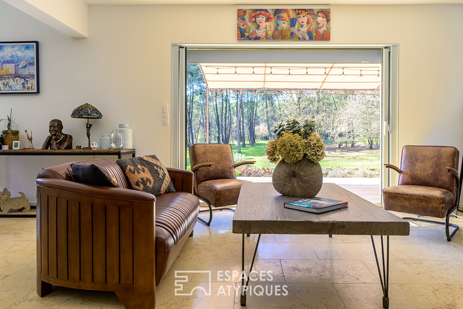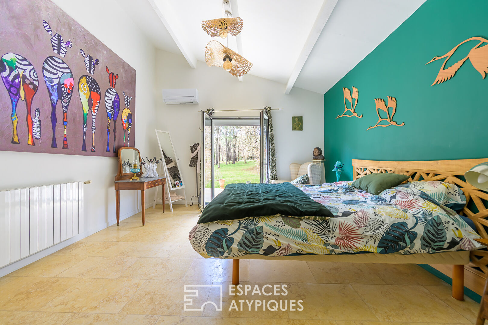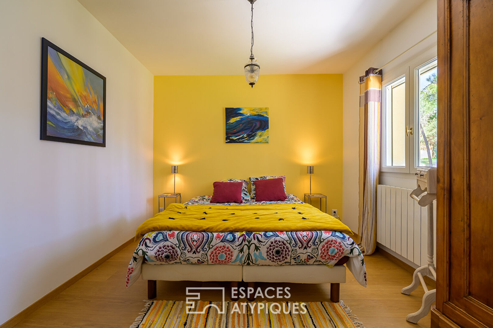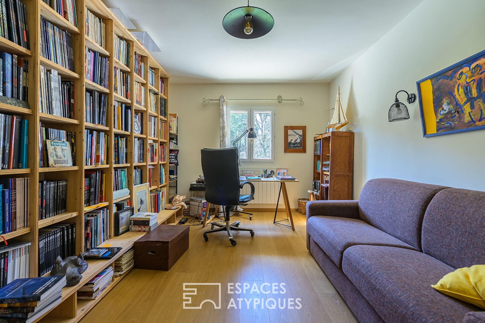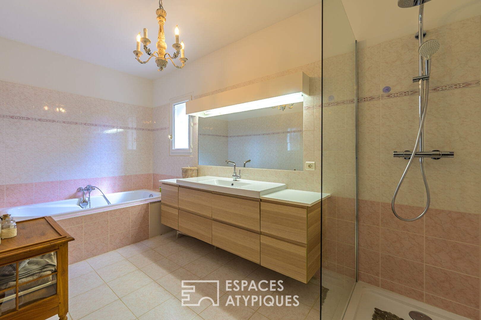 Située à Roussillon, dans le cadre privilégié d'une zone naturelle protégée, cette propriété de 222m² s'érige sur un terrain arboré de près de 7 500 m². Alliant confort moderne et environnement naturel préservé, ce bien dispose d'une piscine généreuse de 11x5 m et d'une vue dégagée sur un bois invitant à la détente. Passé l'entrée, le volume du séjour de 50 m² impressionne par sa luminosité. Ce coeur de vie, doté d'une cheminée et d'un chauffage au sol, communique avec une cuisine ouverte. Le rez-de-chaussée propose une organisation fluide : une vaste suite parentale avec dressing fermé et salle d'eau, une seconde chambre avec accès direct à l'extérieur ainsi qu'une salle d'eau. L'étage complète l'espace nuit avec trois chambres confortables, une salle de bain et un toilette indépendant. La transition intérieur-extérieur est assurée par une terrasse de 45 m², prolongée par un auvent permettant de profiter du jardin en toute saison. Côté technique, la villa affiche un excellent DPE grâce à une pompe à chaleur et une climatisation réversible. Un garage, un atelier, un carport et une buanderie viennent parfaire les prestations. Entre les sentiers des Ocres et le calme absolu de la pinède, ce lieu de vie offre une expérience résidentielle singulière au sein du Luberon. CLASSE ÉNERGIE : B / CLASSE CLIMAT : A Prix moyens des énergies indexés sur les années 2021, 2022, 2023 (abonnements compris) : entre 1670 euros et 2260 euros. Les informations sur les risques auxquels ce bien est exposé sont disponibles sur le site Géorisques : www.georisques.gouv.fr Laëtitia VALERO (EI) Agent Commercial - Numéro RSAC : 994 627 941 - AVIGNON.
